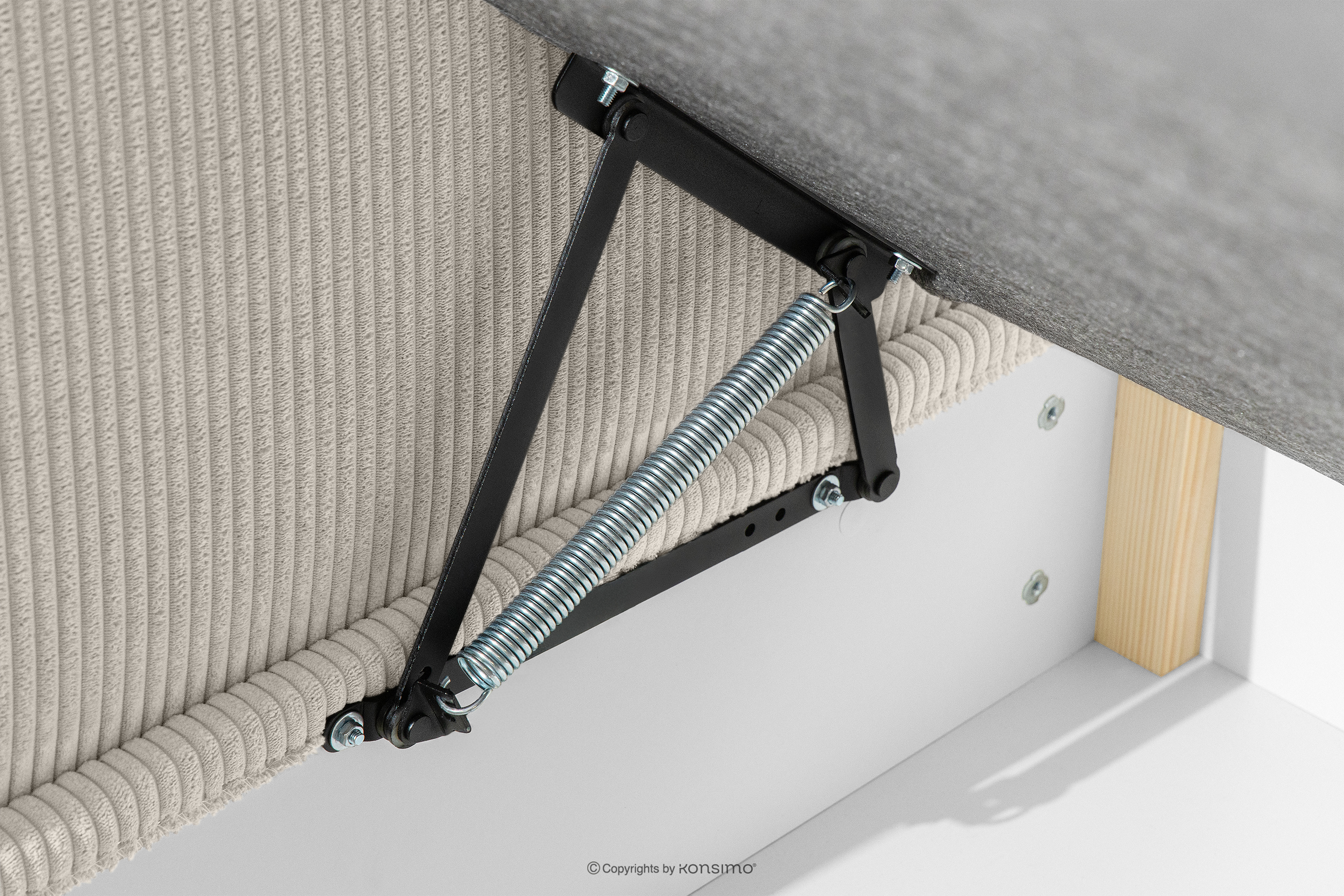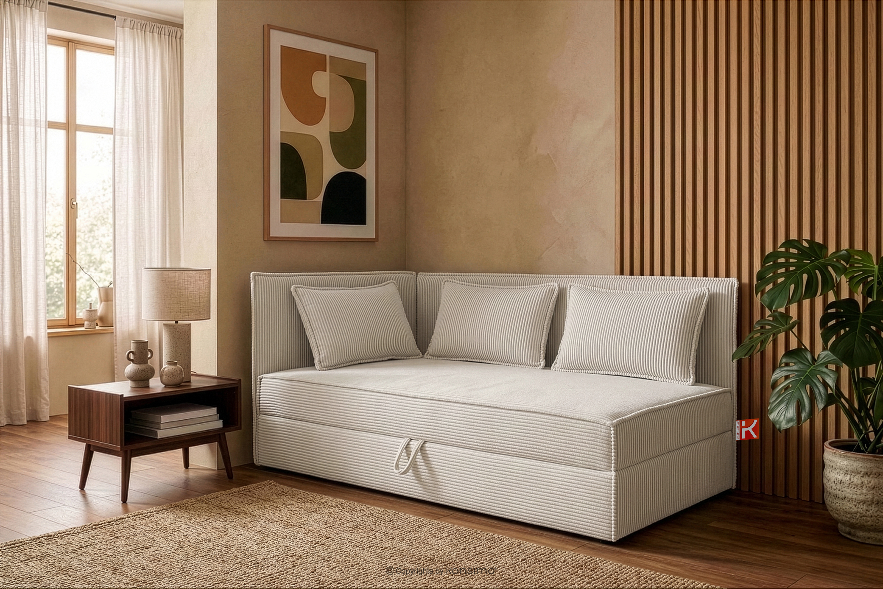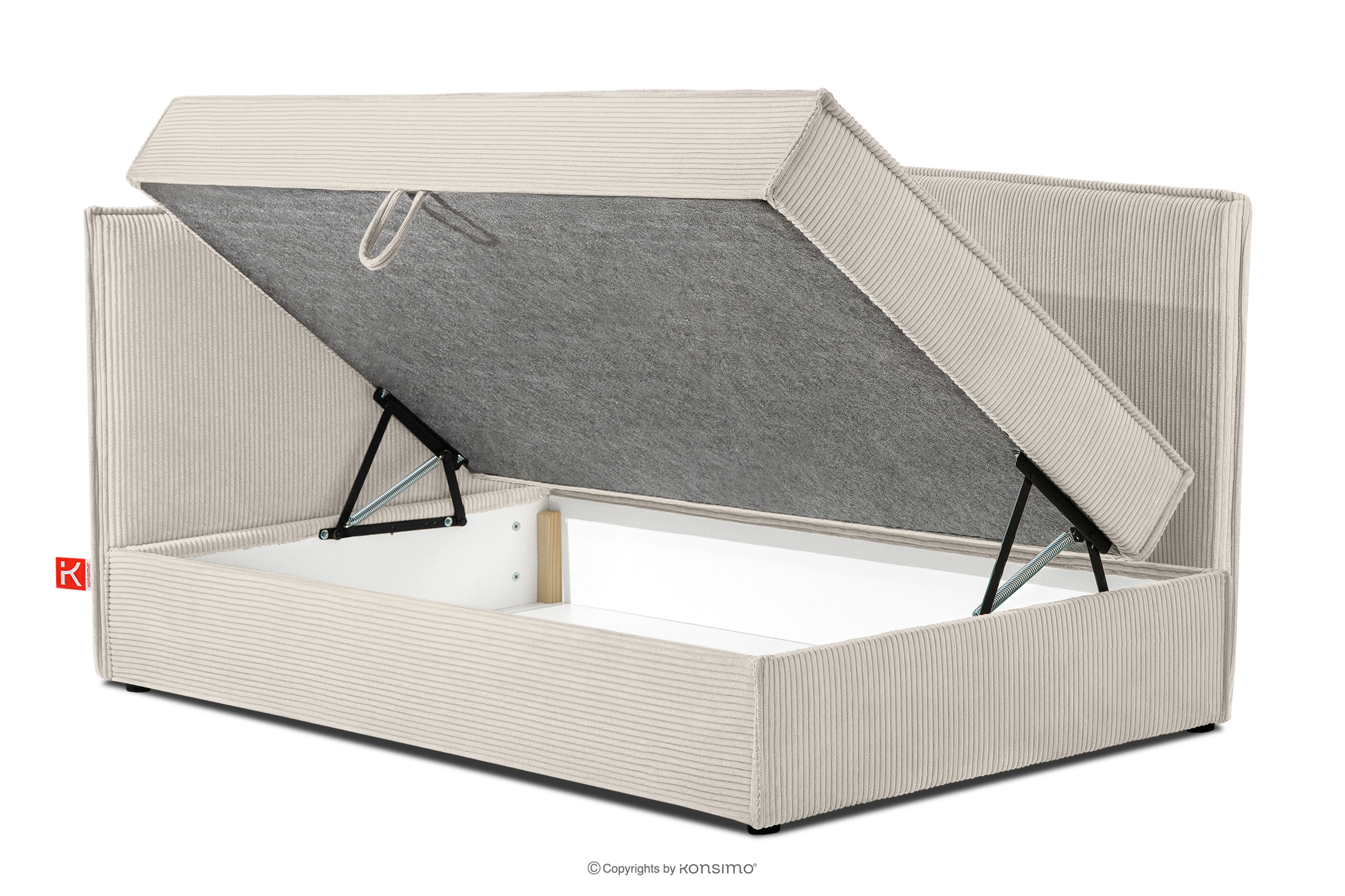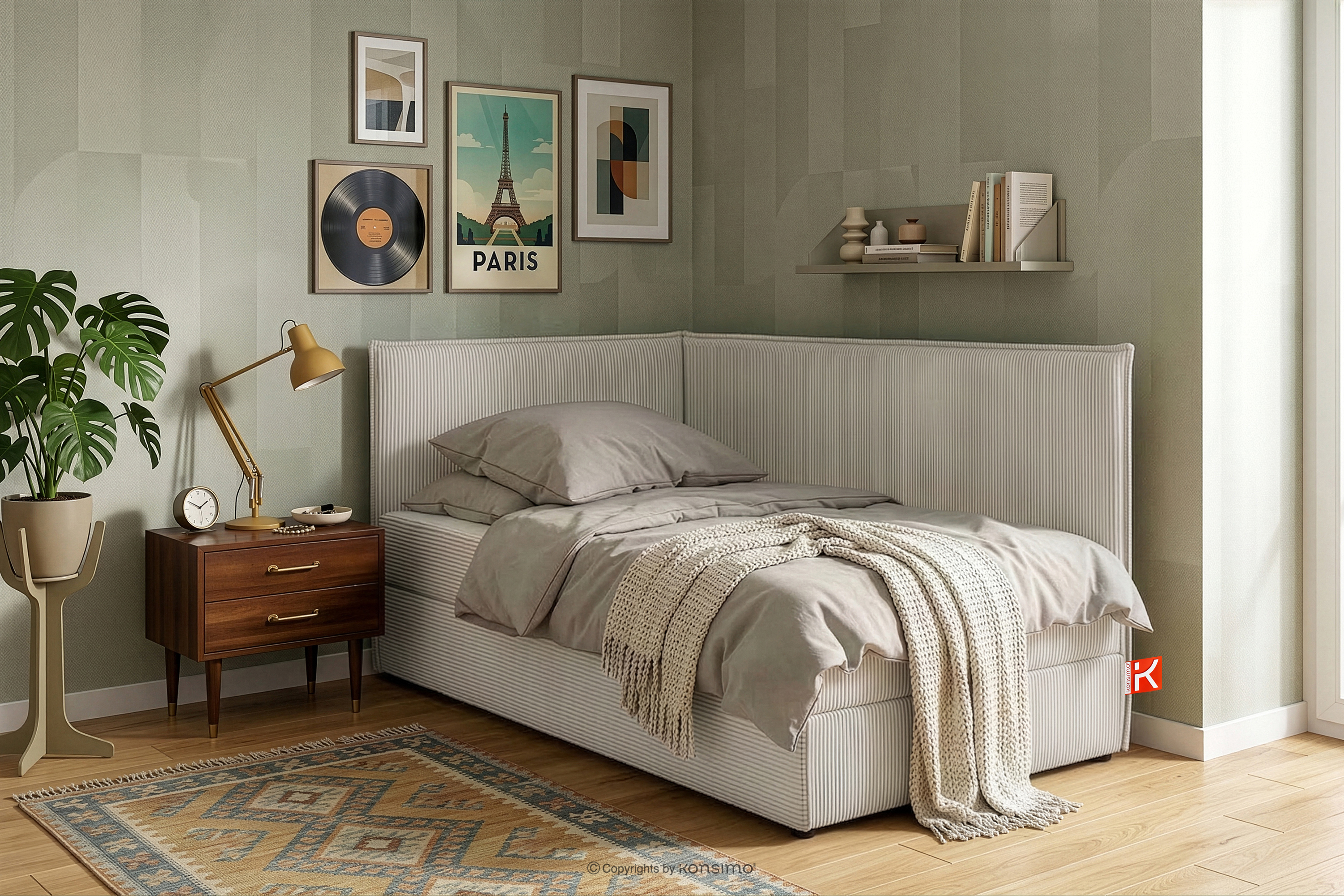 ROTI zobacz całą kolekcję Łóżko 90 cm dla nastolatka z oparciem w tkaninie sztruks kremowy- kolor kremowy