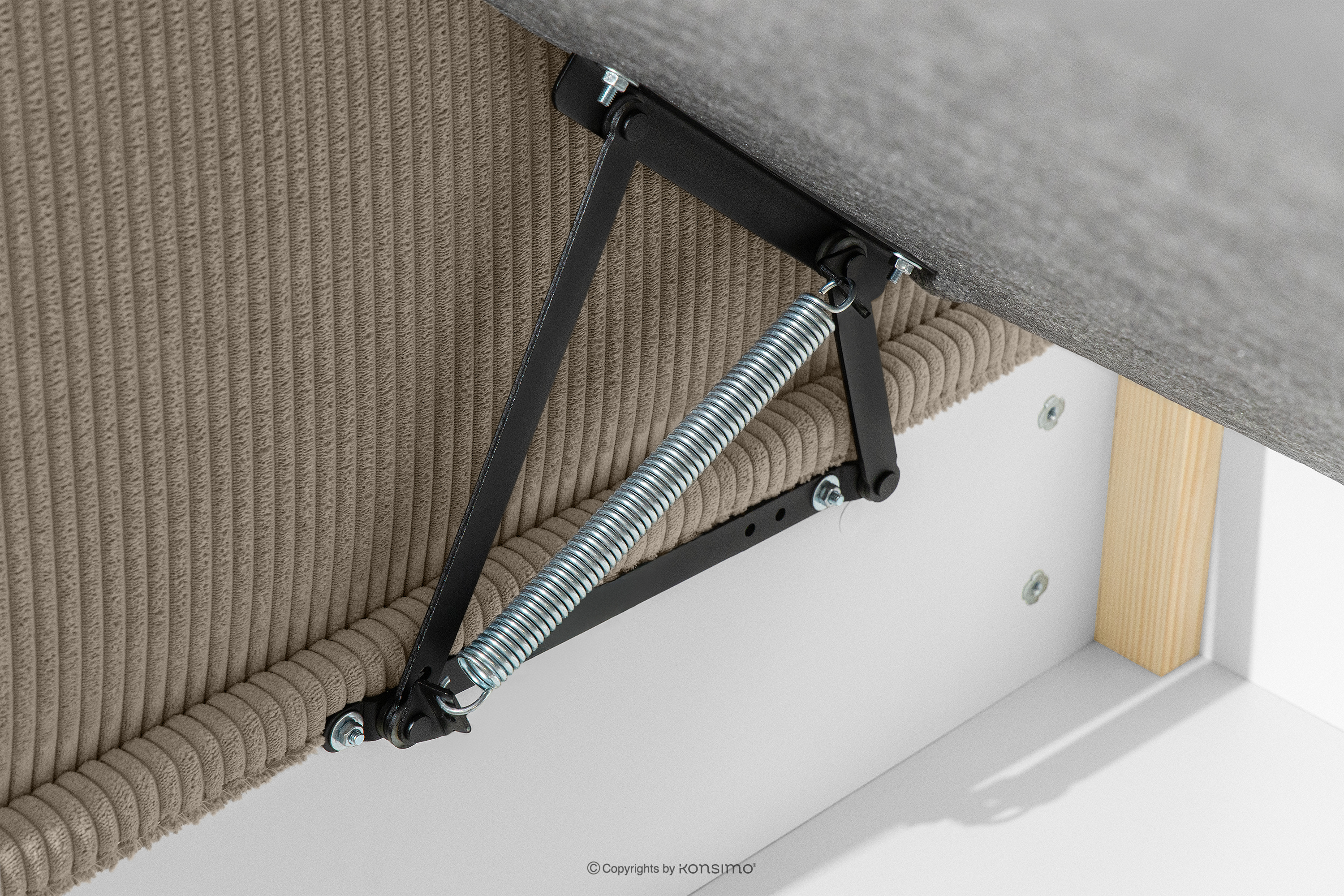 ROTI zobacz całą kolekcję Łóżko 90 cm dla nastolatka z oparciem w tkaninie sztruks beżowy- kolor beżowy