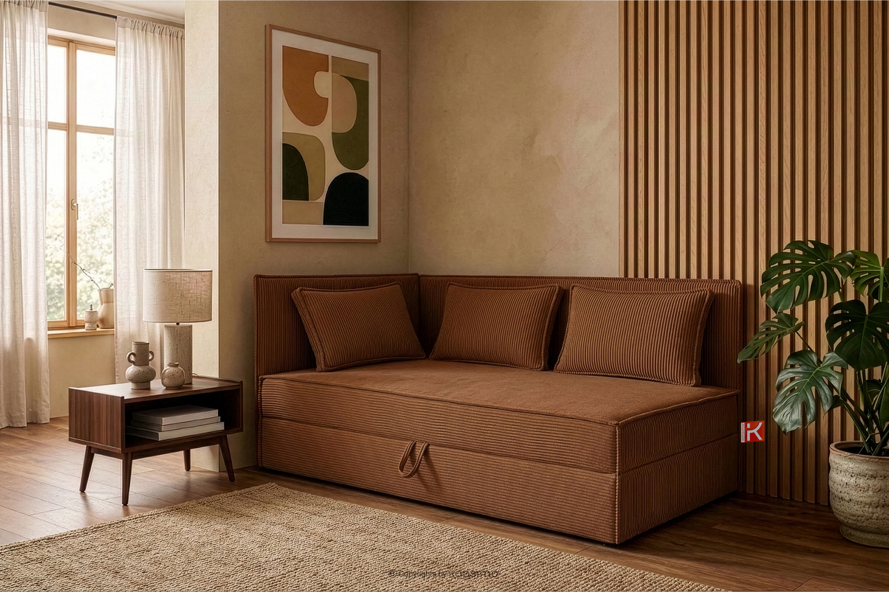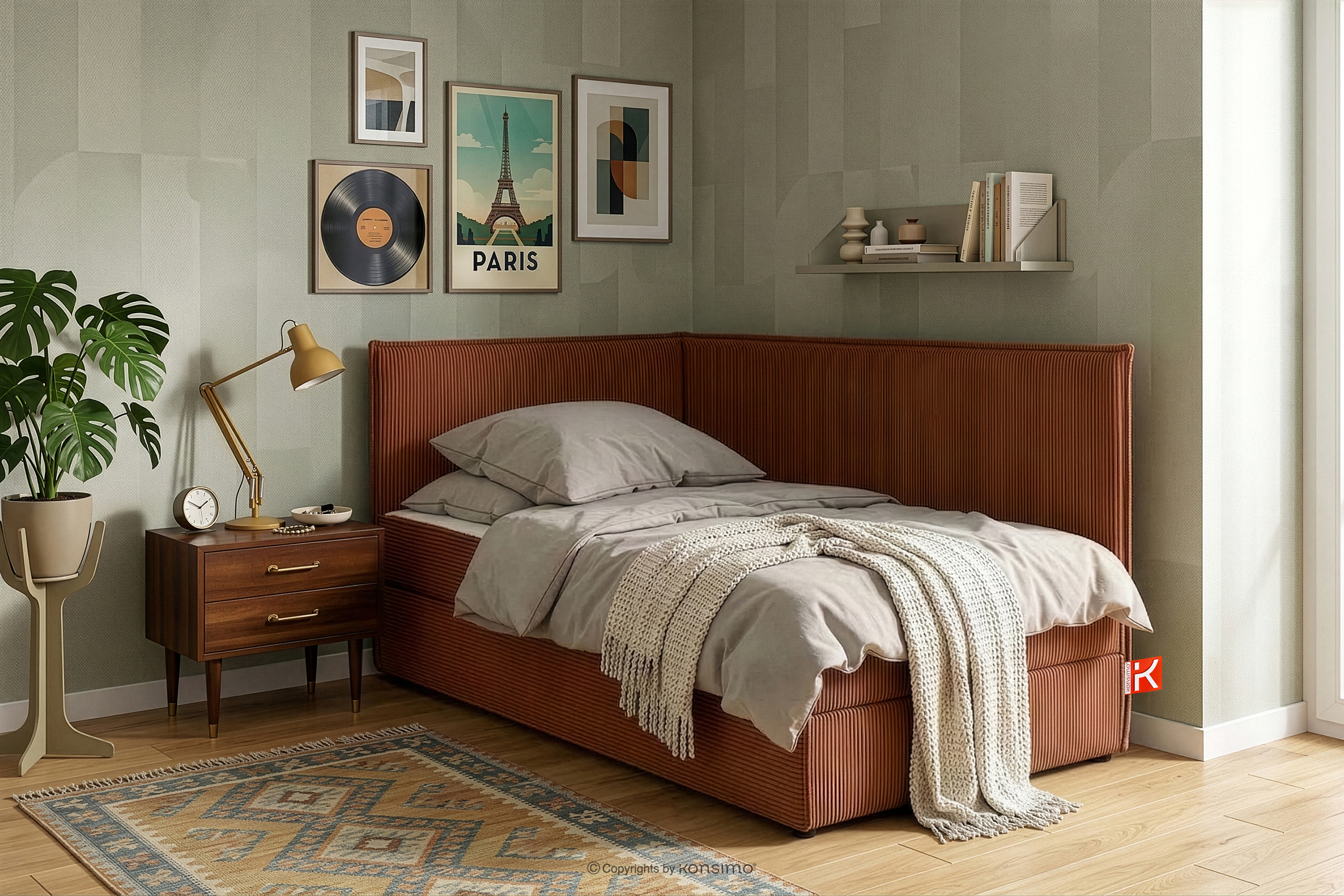 ROTI zobacz całą kolekcję Łóżko 90 cm z oparciem w tkaninie sztruks rudy- kolor rudy