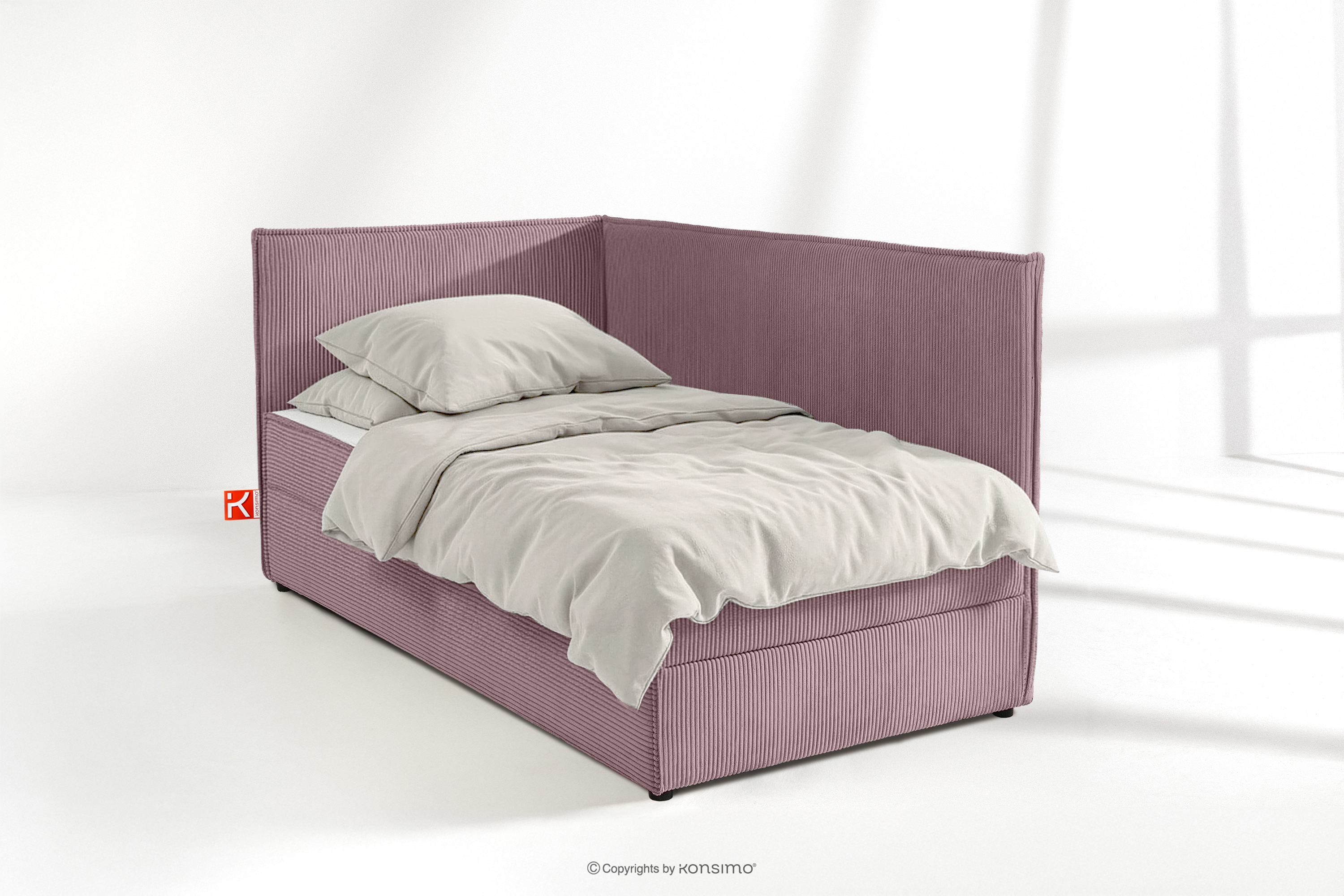 ROTI zobacz całą kolekcję Łóżko 90 cm z oparciem w tkaninie sztruks jasny fioletowy- kolor jasny fioletowy