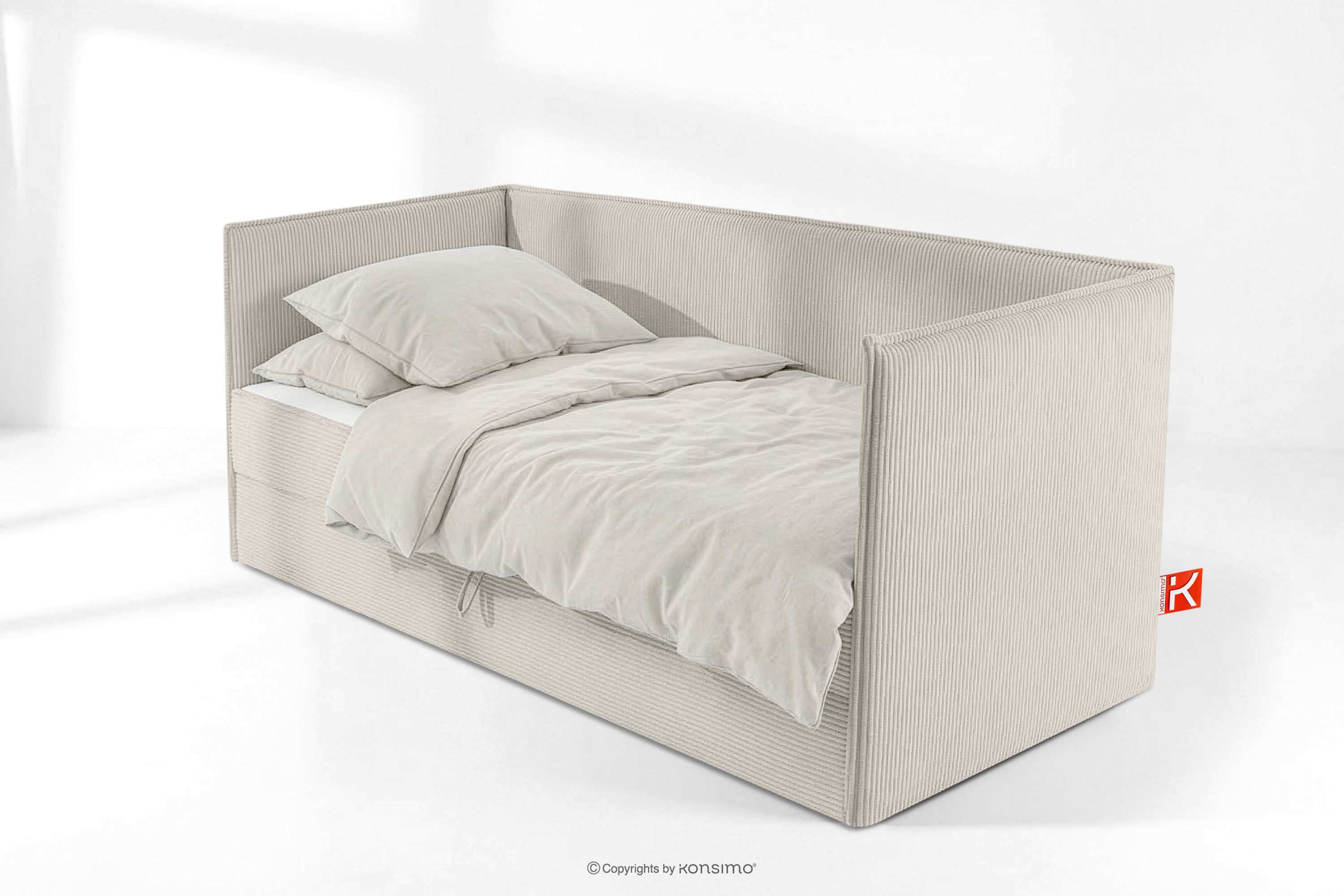dla produktu Łóżko dla nastolatka typu sofa w tkaninie sztruks 90 cm kremowy