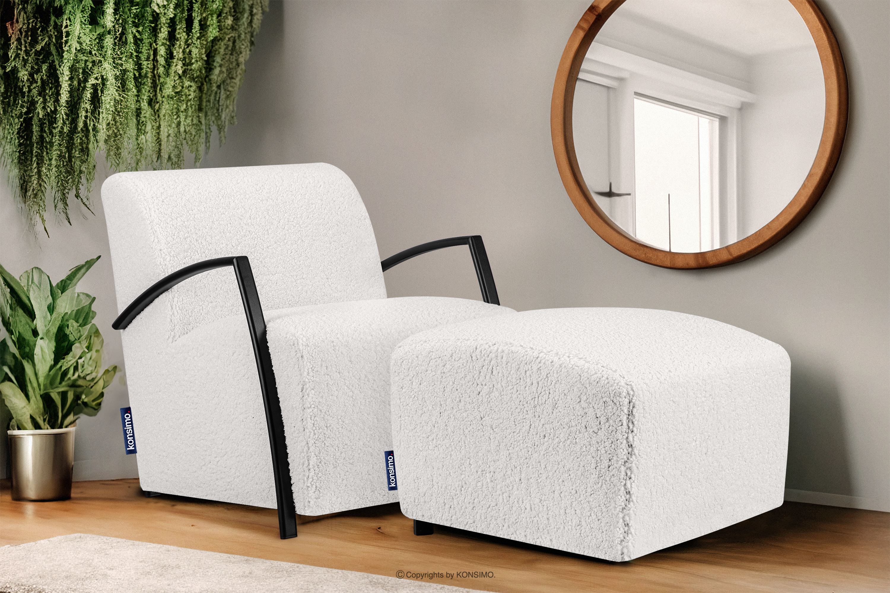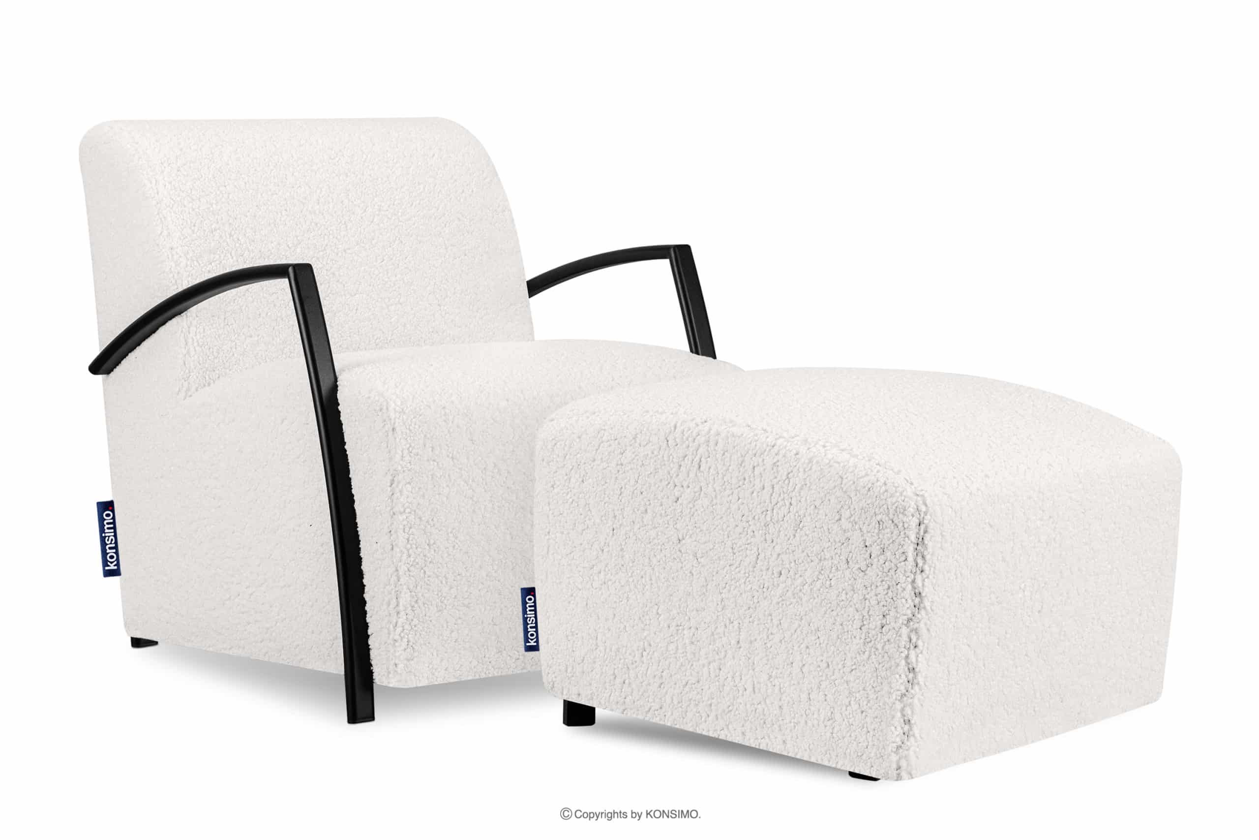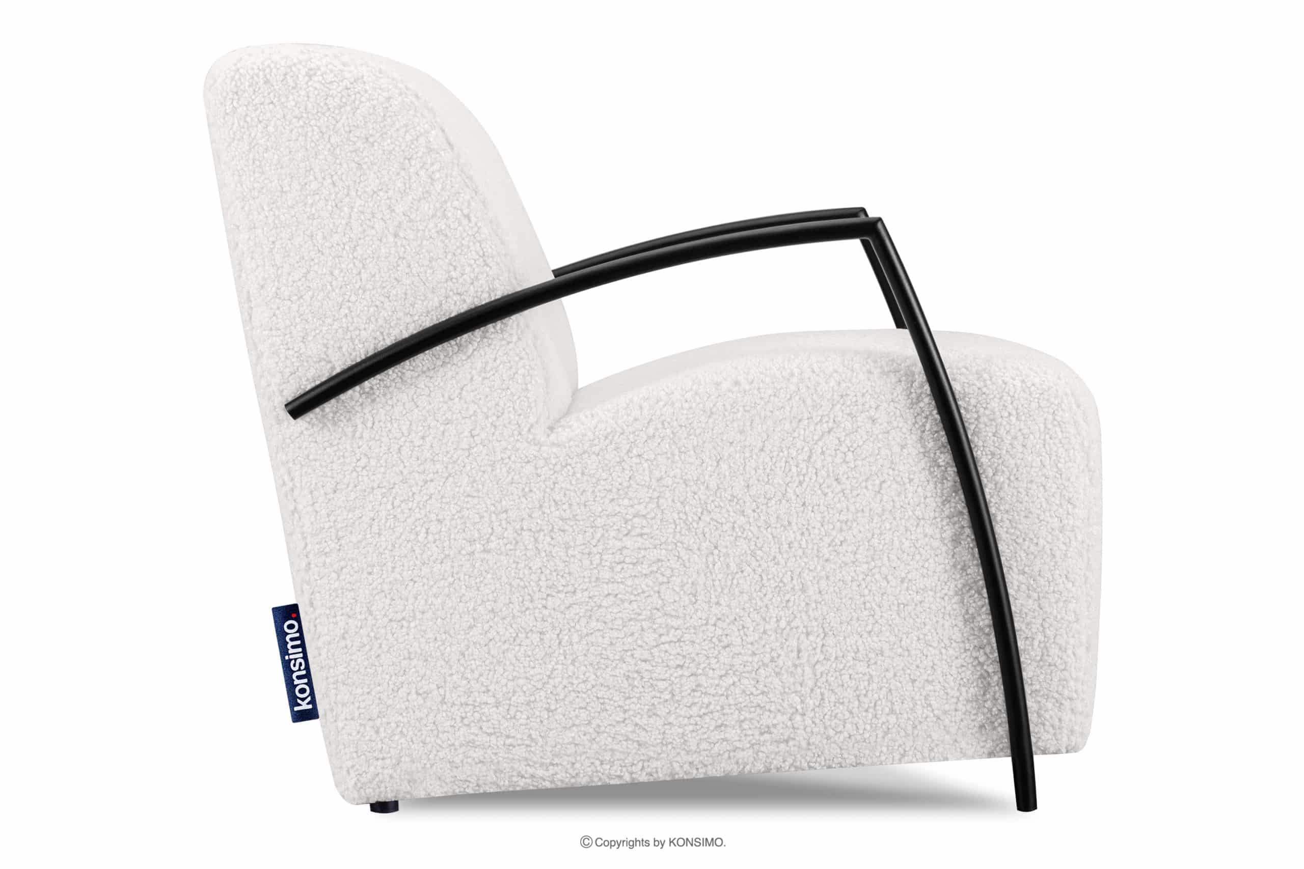 CARO zobacz całą kolekcję Fotel biały w tkaninie baranek z podłokietnikiem- kolor biały