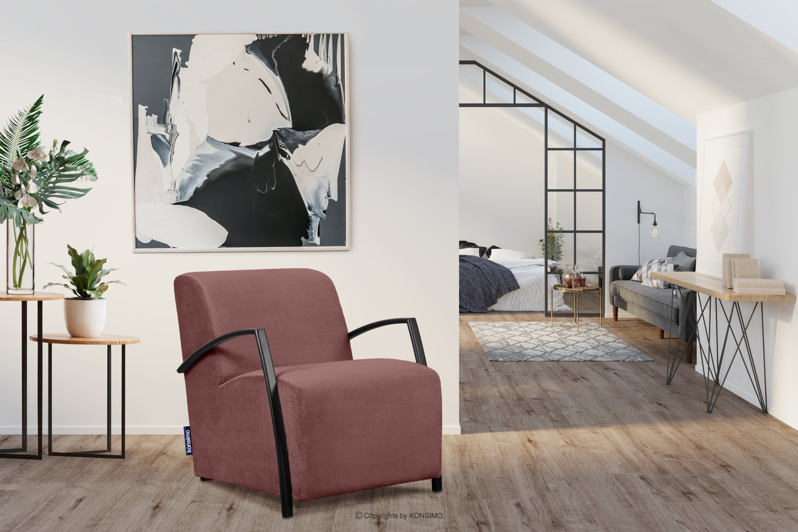CARO zobacz całą kolekcję Różowy wygodny fotel z podłokietnikiem- kolor różowy
