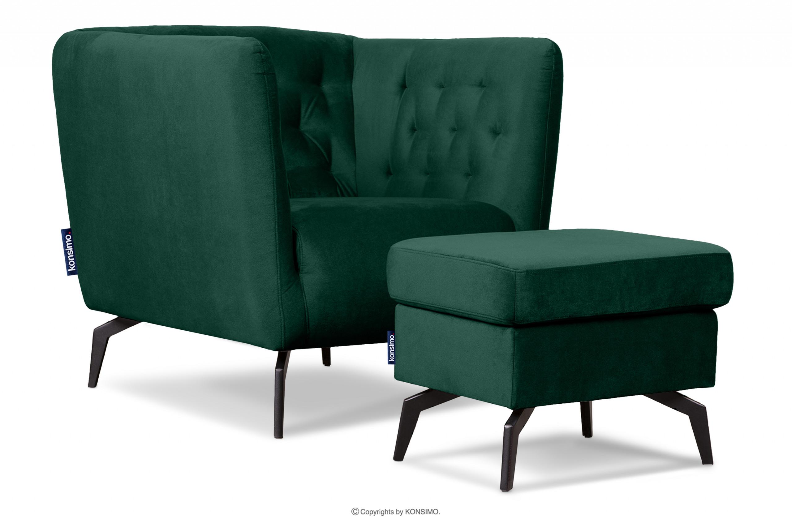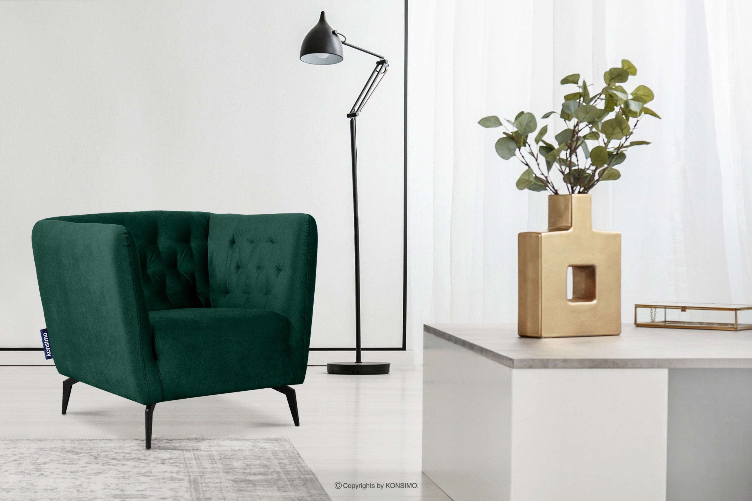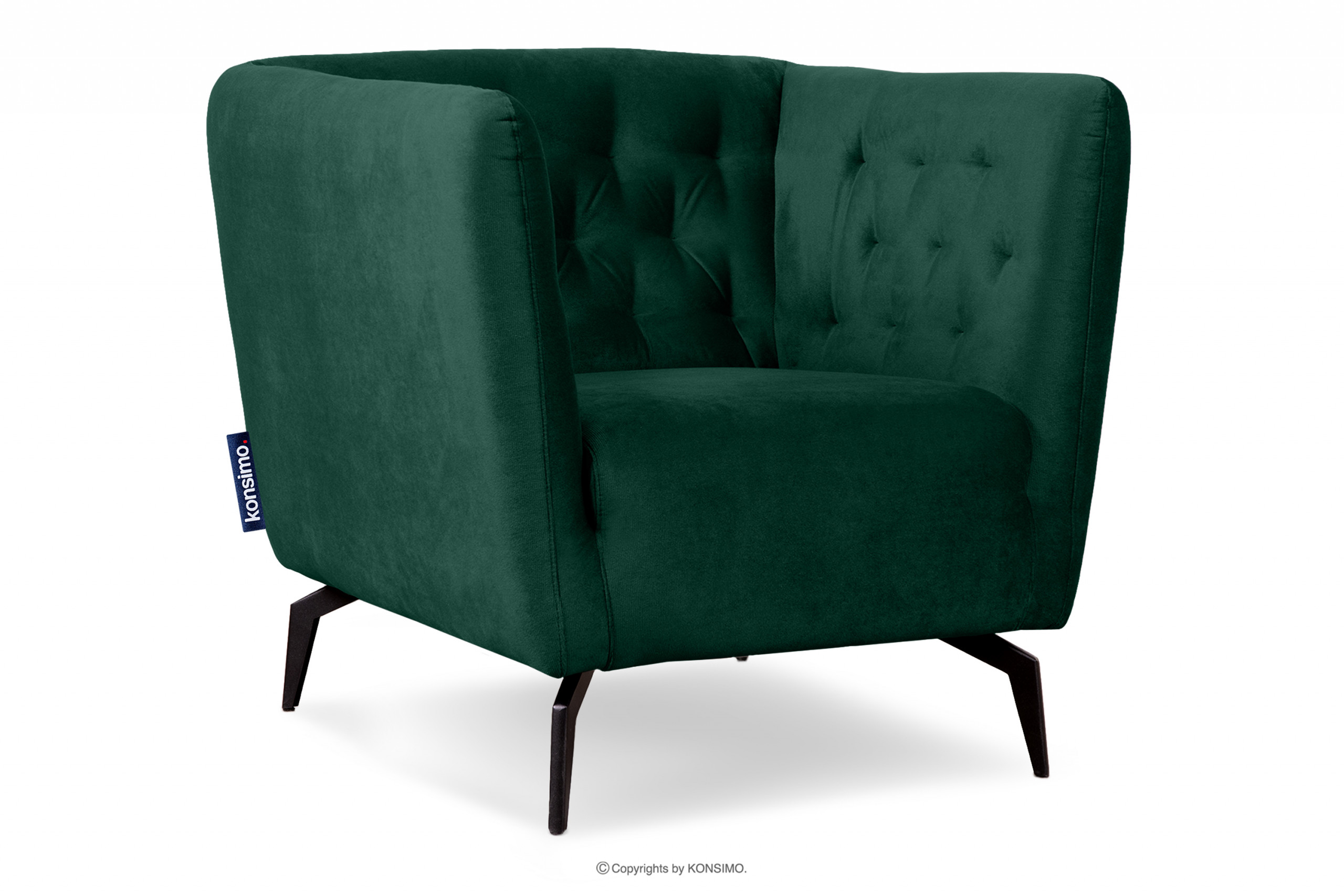 CORDI zobacz całą kolekcję Fotel pikowany na nóżkach ciemnozielony- kolor ciemny zielony