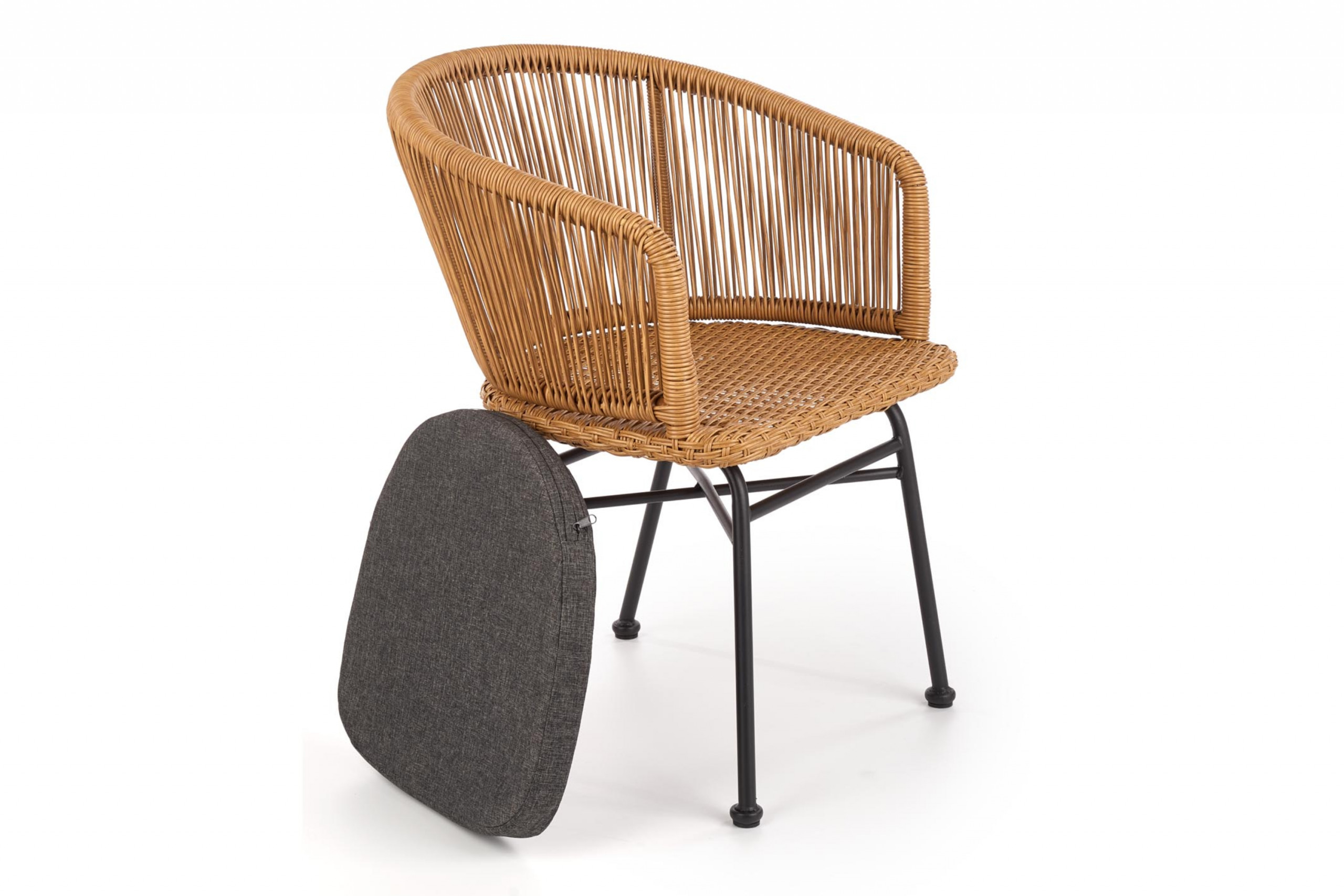 Fotel rattanowy z poduszką RIGI - kolor naturalny/popielaty