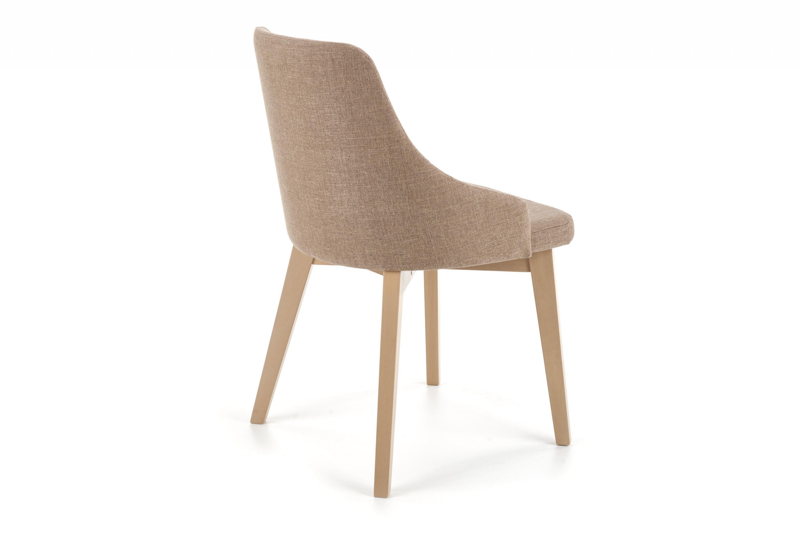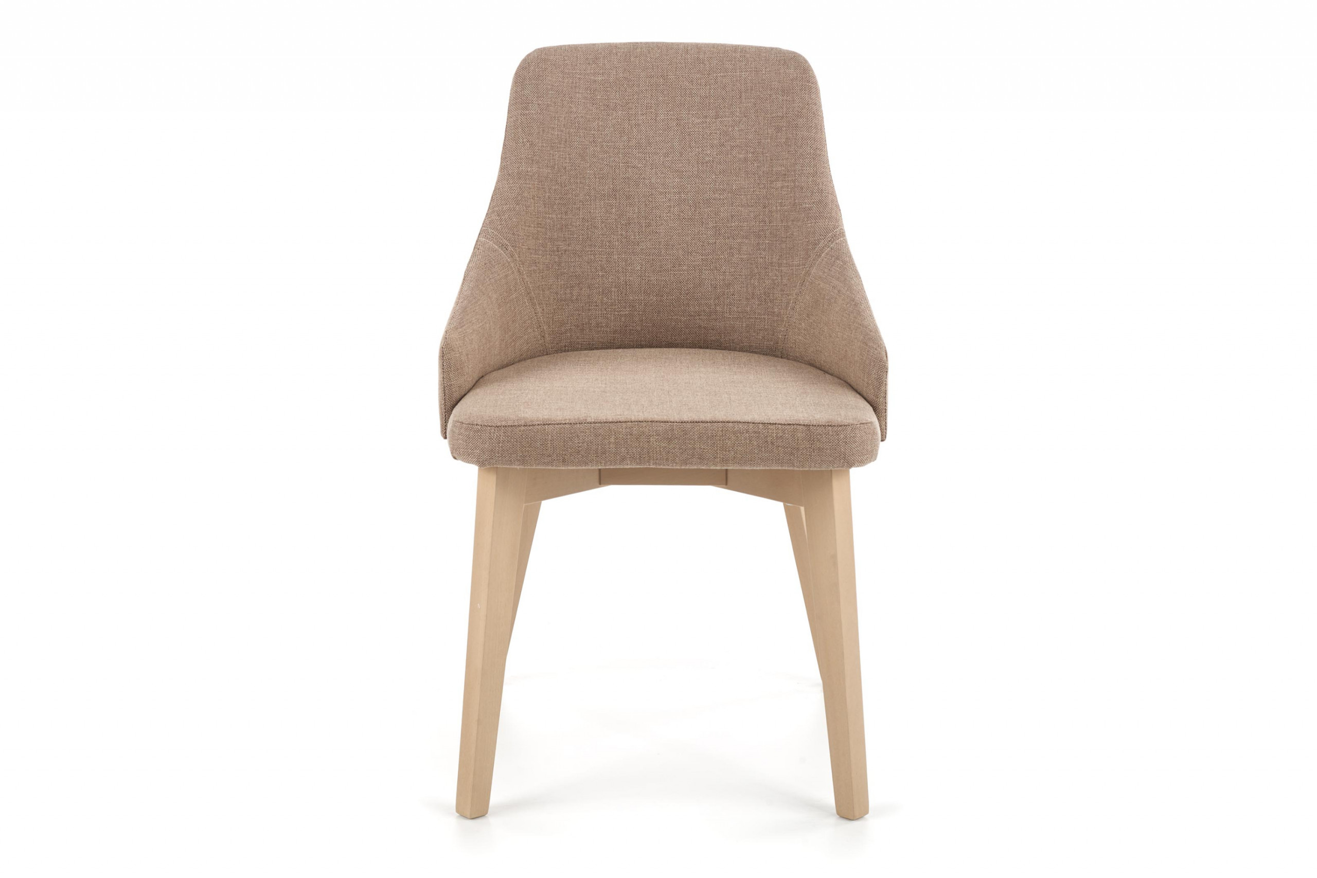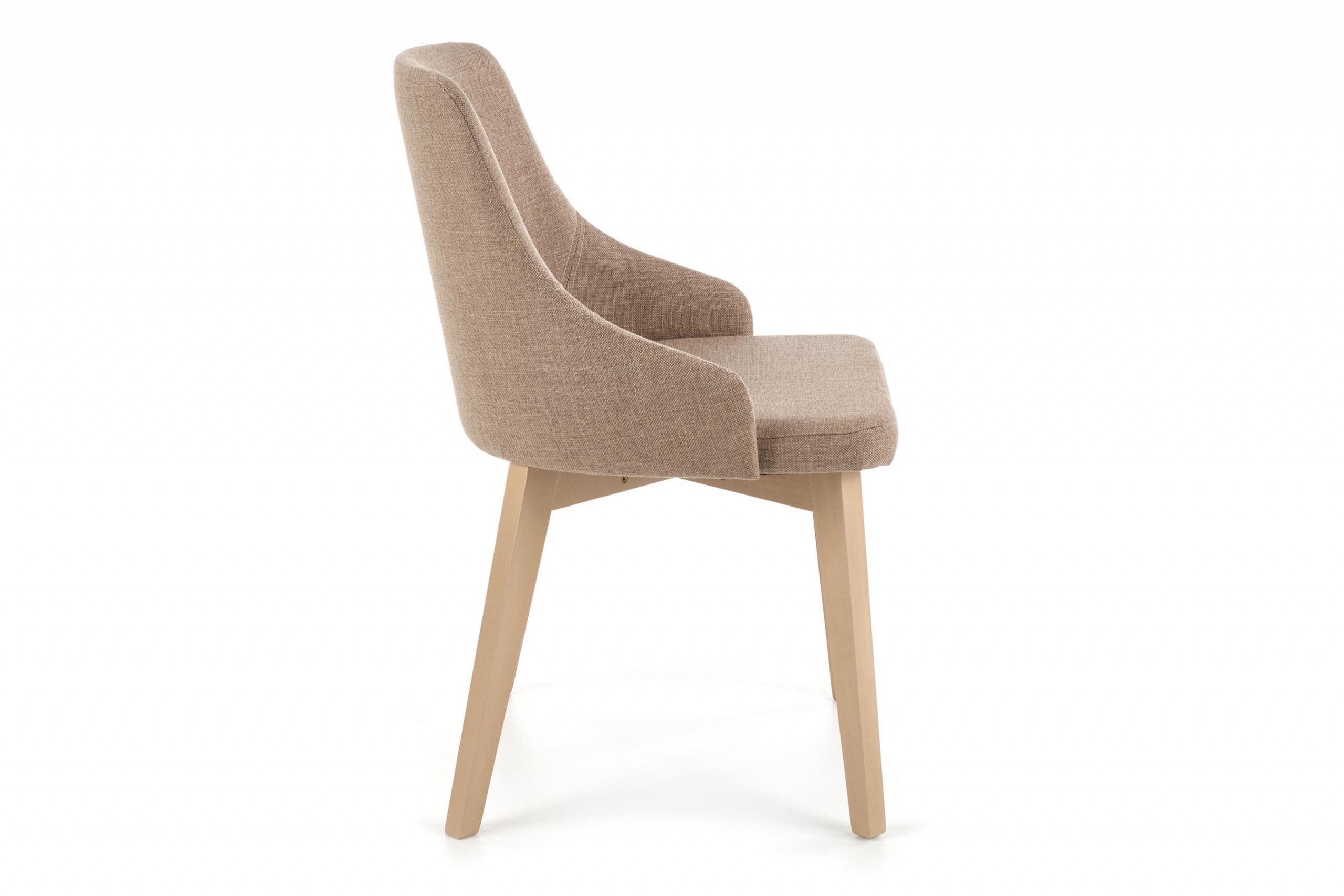 Skandynawskie krzesło kubełek z podłokietnikami brązowe na naturalnych drewnianych nogach GRAPO - kolor ciemny beżowy/dąb sonoma