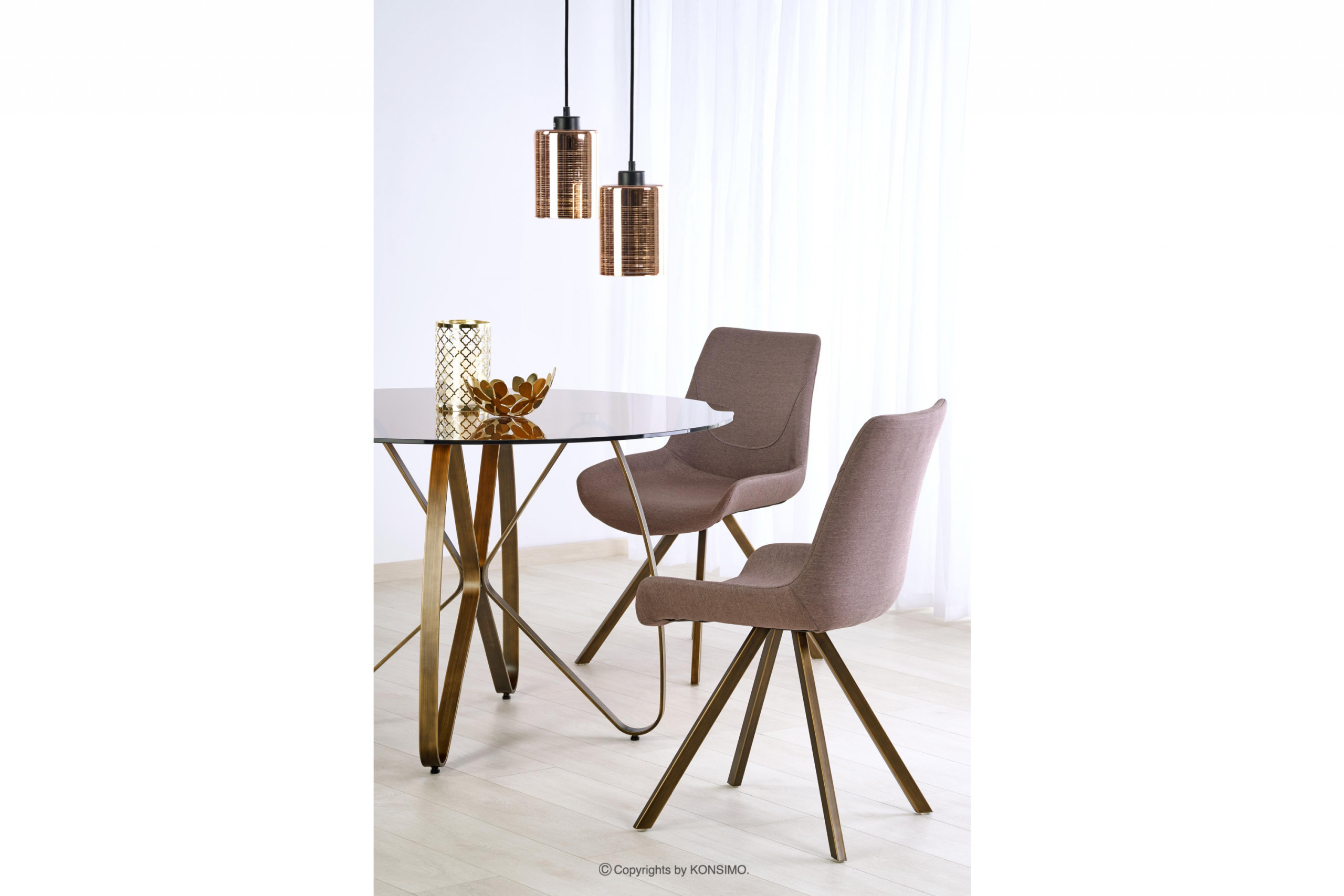 LIVI zobacz całą kolekcję Elegancki okrągły stół do pokoju- kolor brązowy/złoty