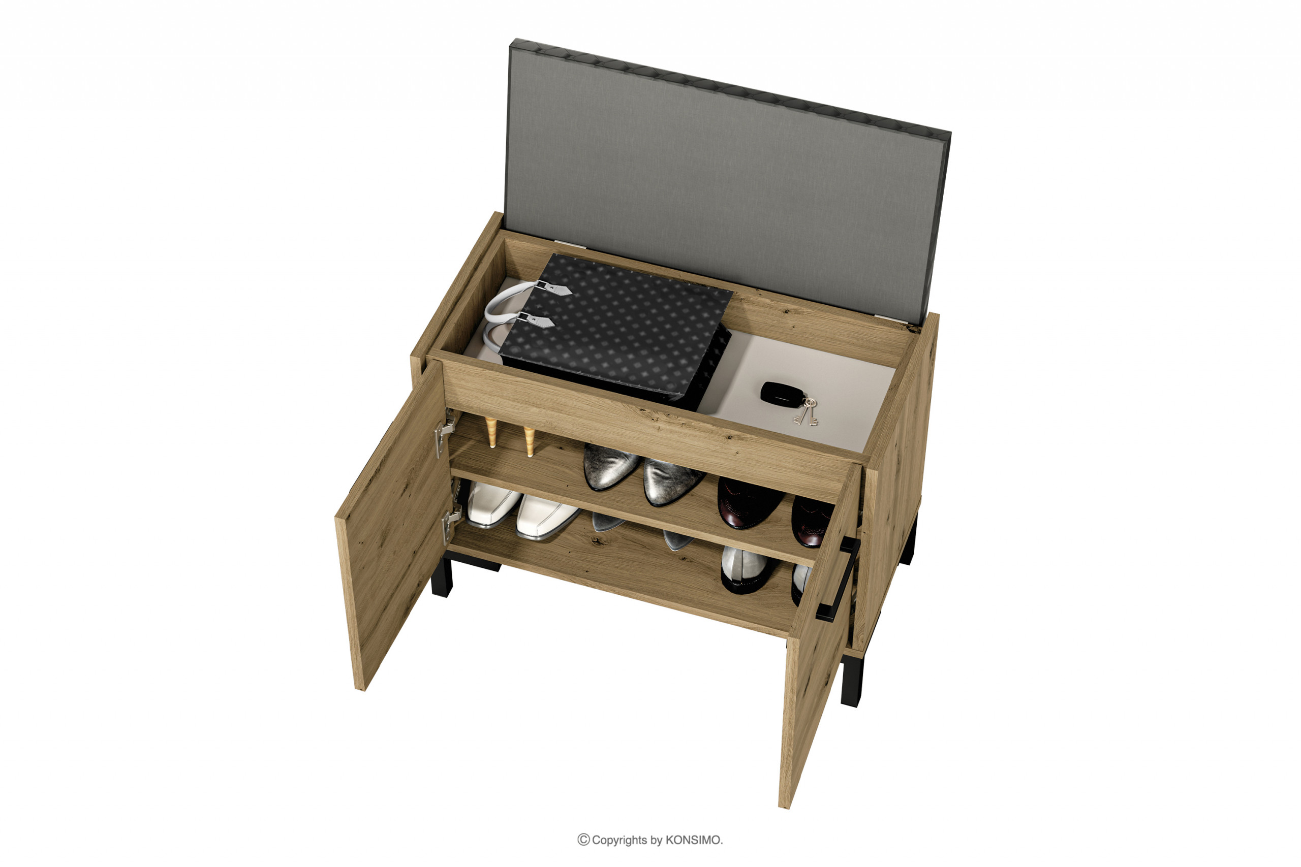 CORICA zobacz całą kolekcję Szafka na buty z siedziskiem dąb artisan- kolor dąb artisan/czarny