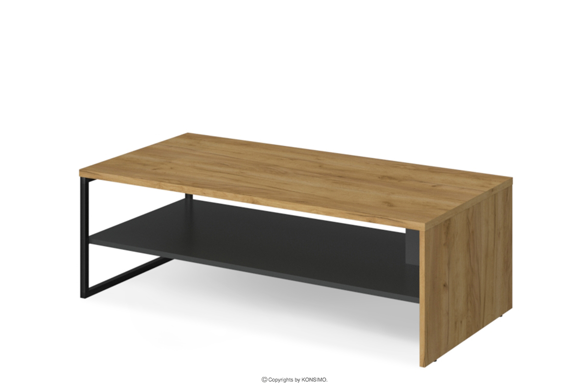 LACERTA, https://konsimo.pl/kolekcja/lacerta/ Loftowy stolik kawowy z pólką dąb craft złoty/antracyt - zdjęcie