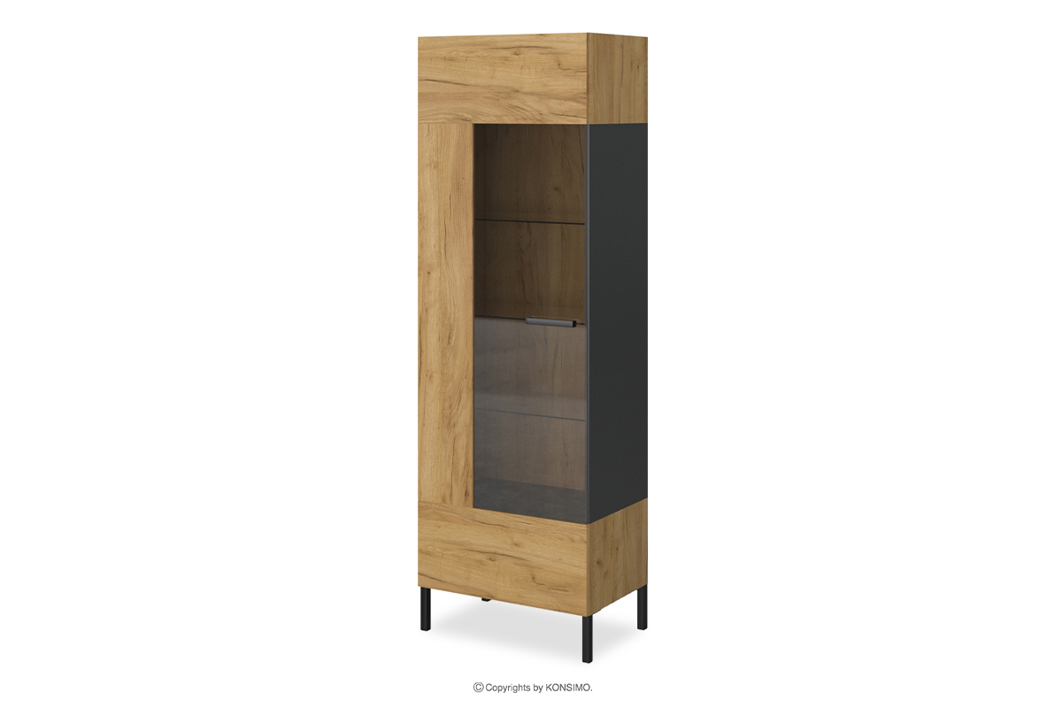 LACERTA zobacz całą kolekcję Witryna z półkami do salonu loft- kolor dąb craft złoty/antracyt
