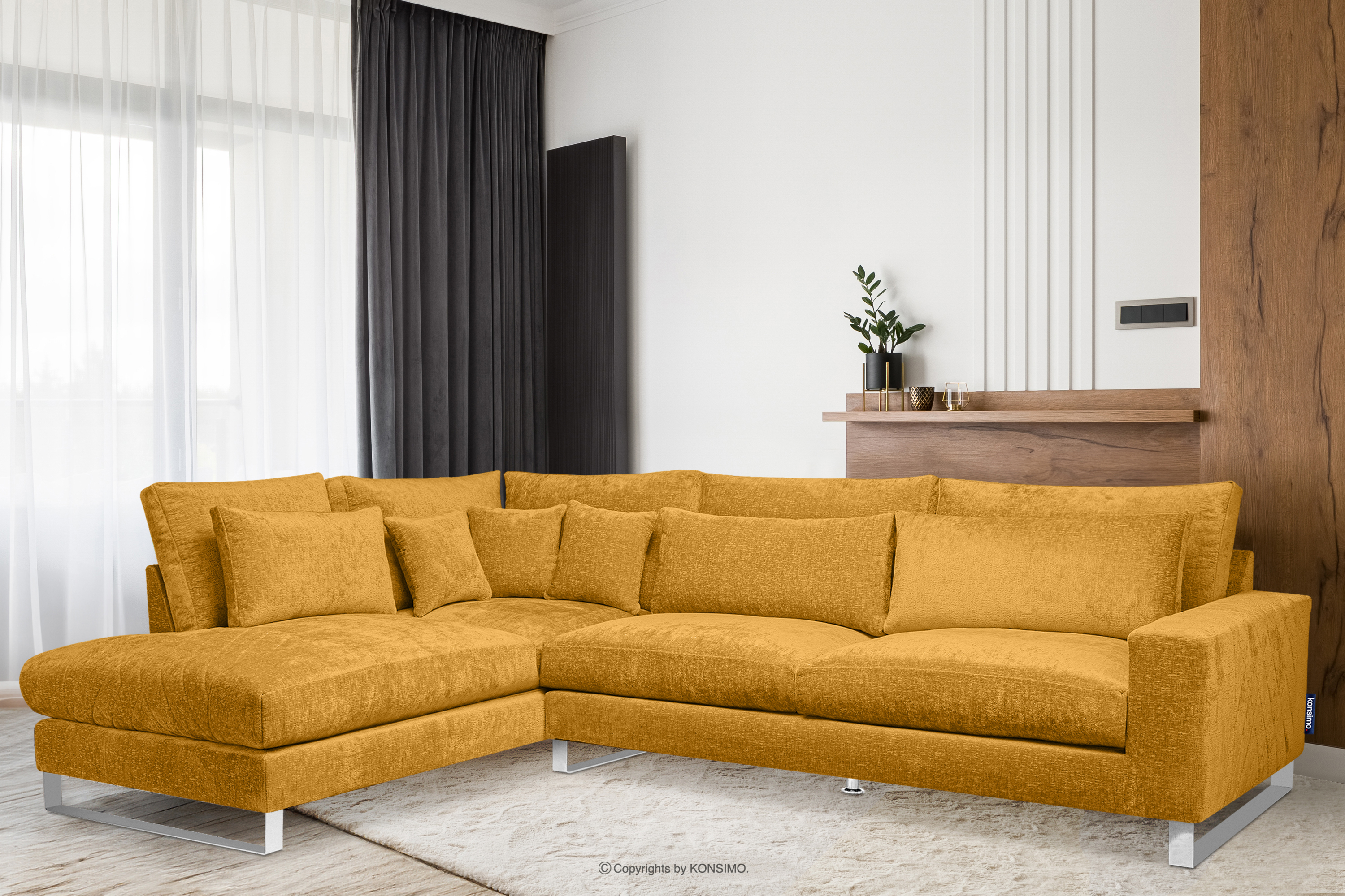 BRENTIS zobacz całą kolekcję Duży narożnik tkanina szenil żółty lewy- kolor żółty