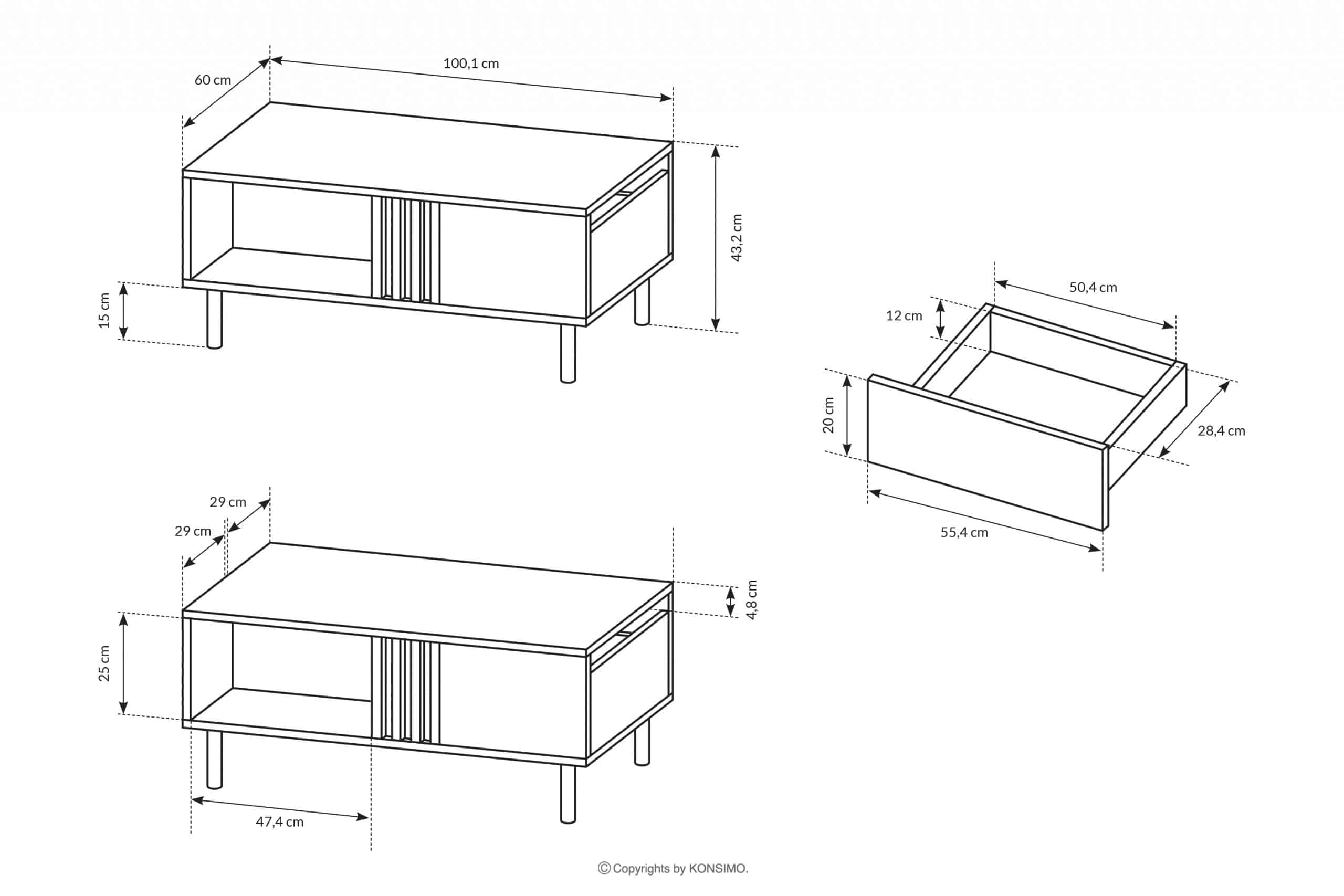 GERO zobacz całą kolekcję Stolik kawowy z ciemnymi lamelami na nóżkach- kolor dąb artisan/antracytowy