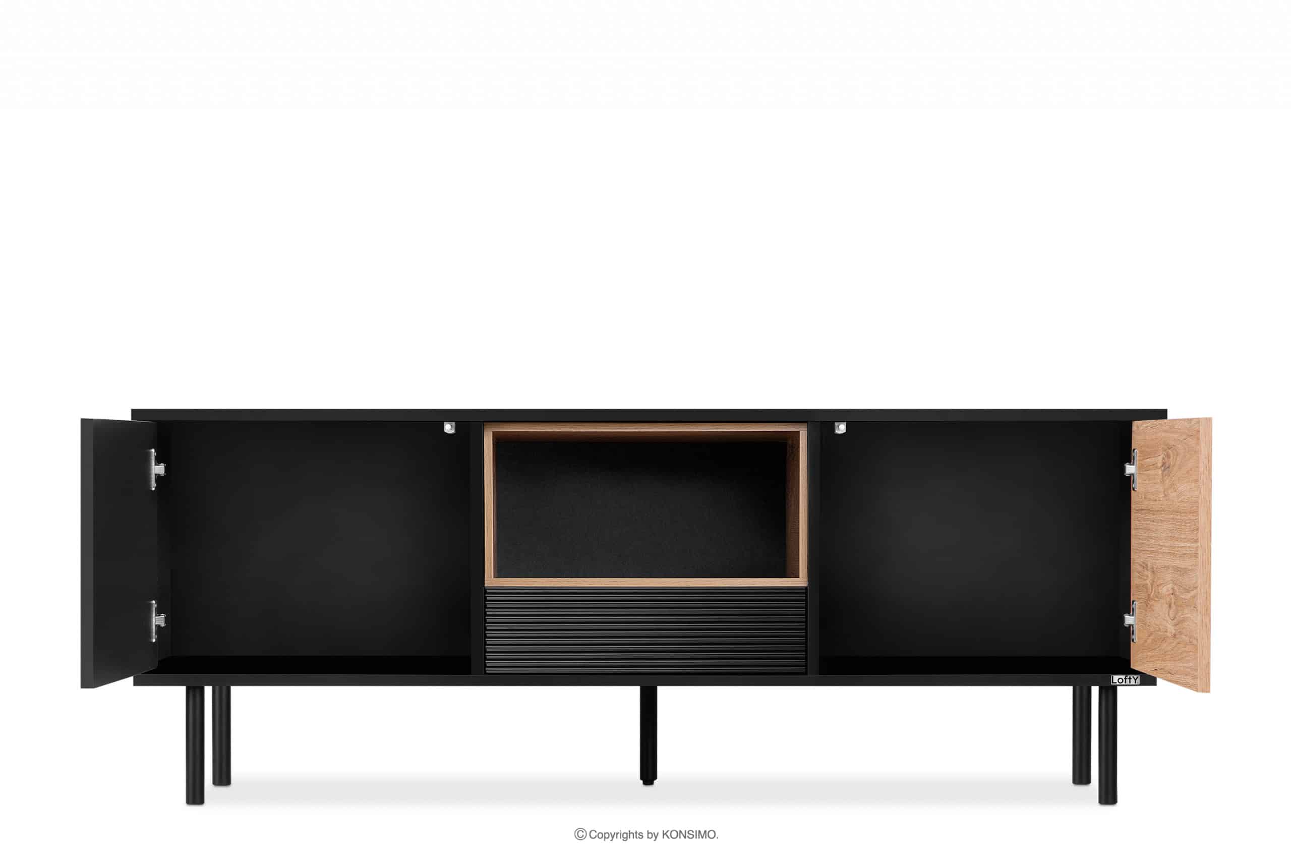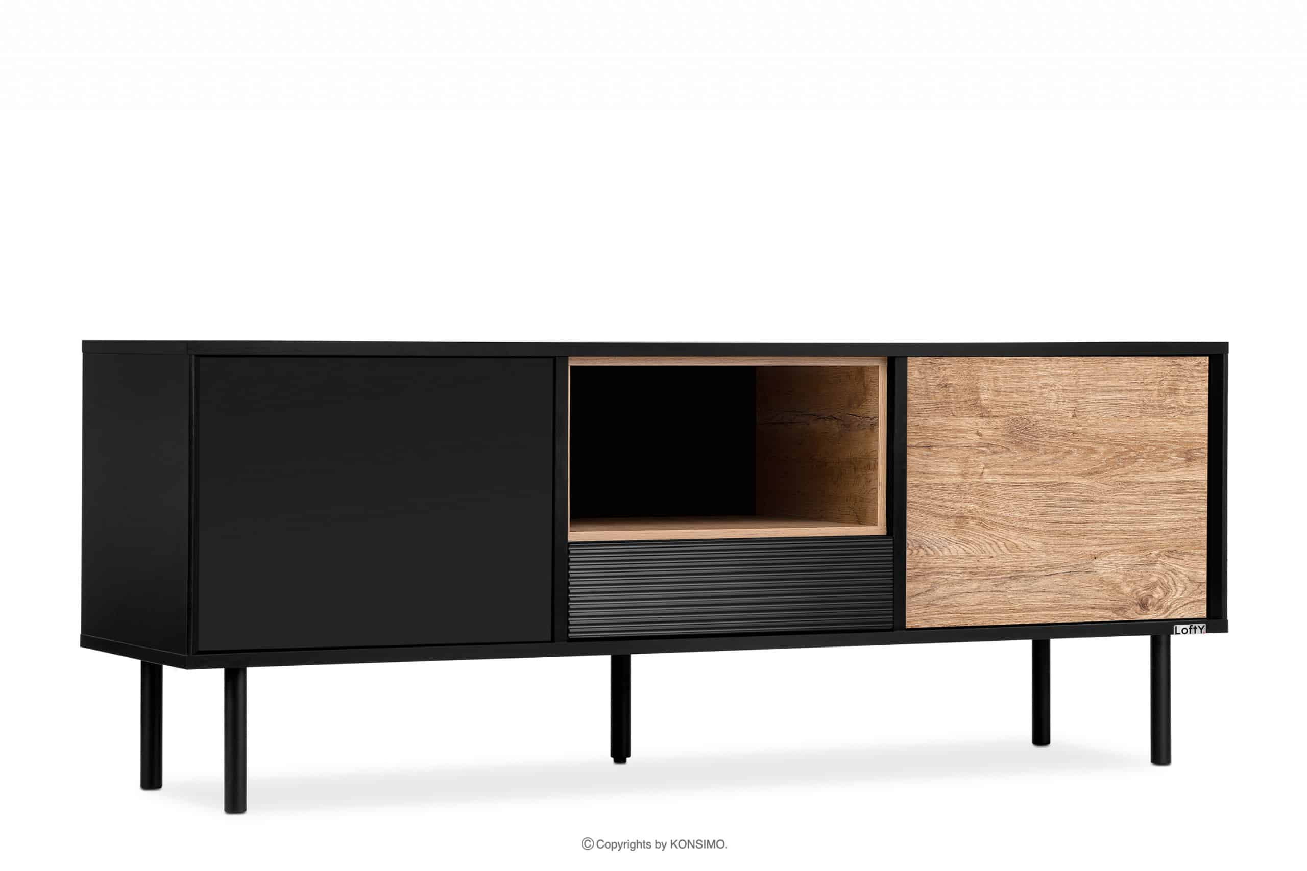 LOFTY zobacz całą kolekcję Szafka RTV w stylu loft z ryflowaniem- kolor czarny/dąb naturalny