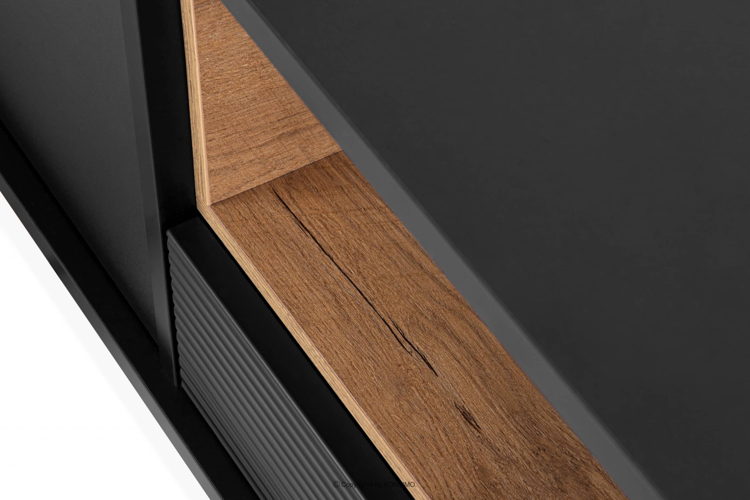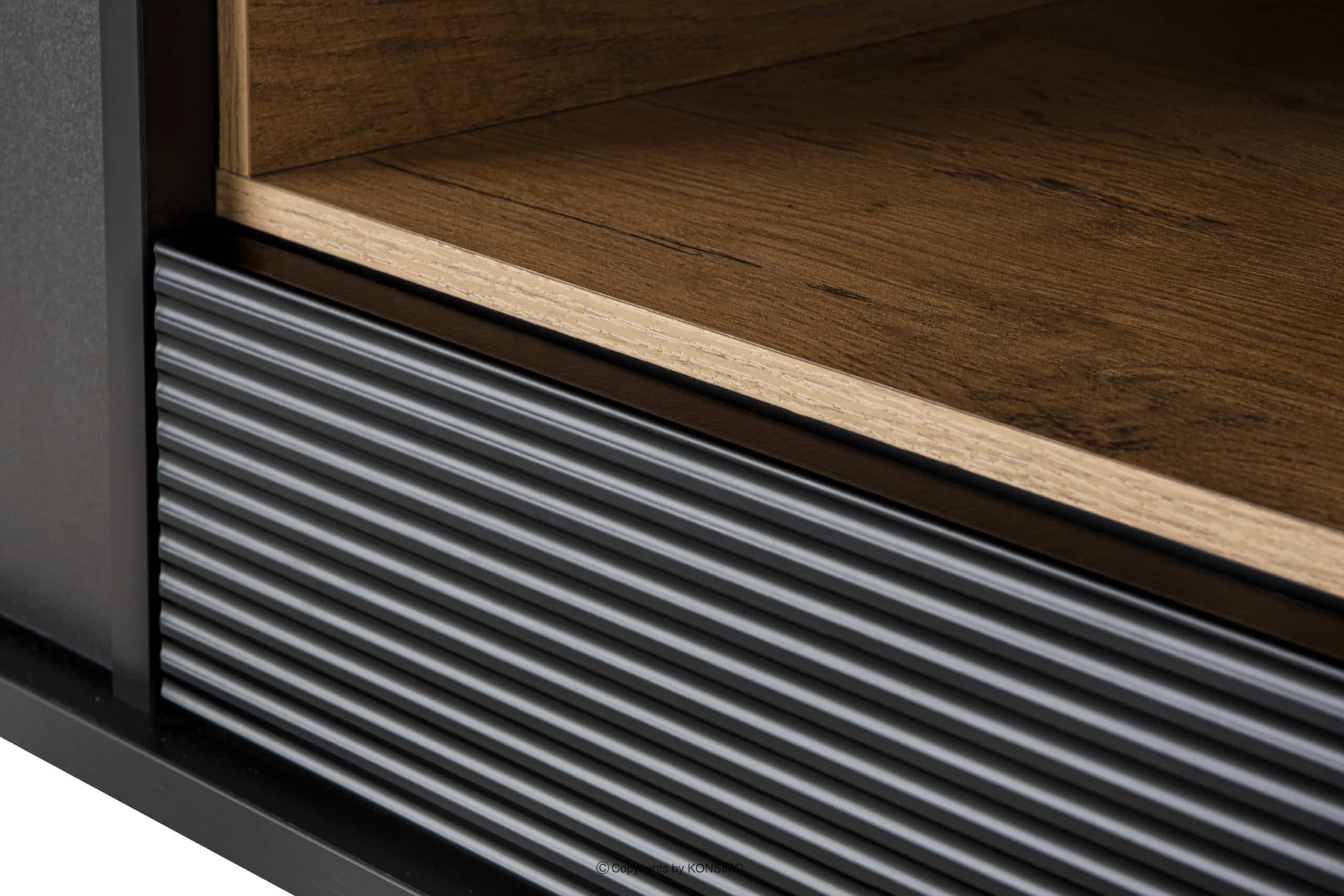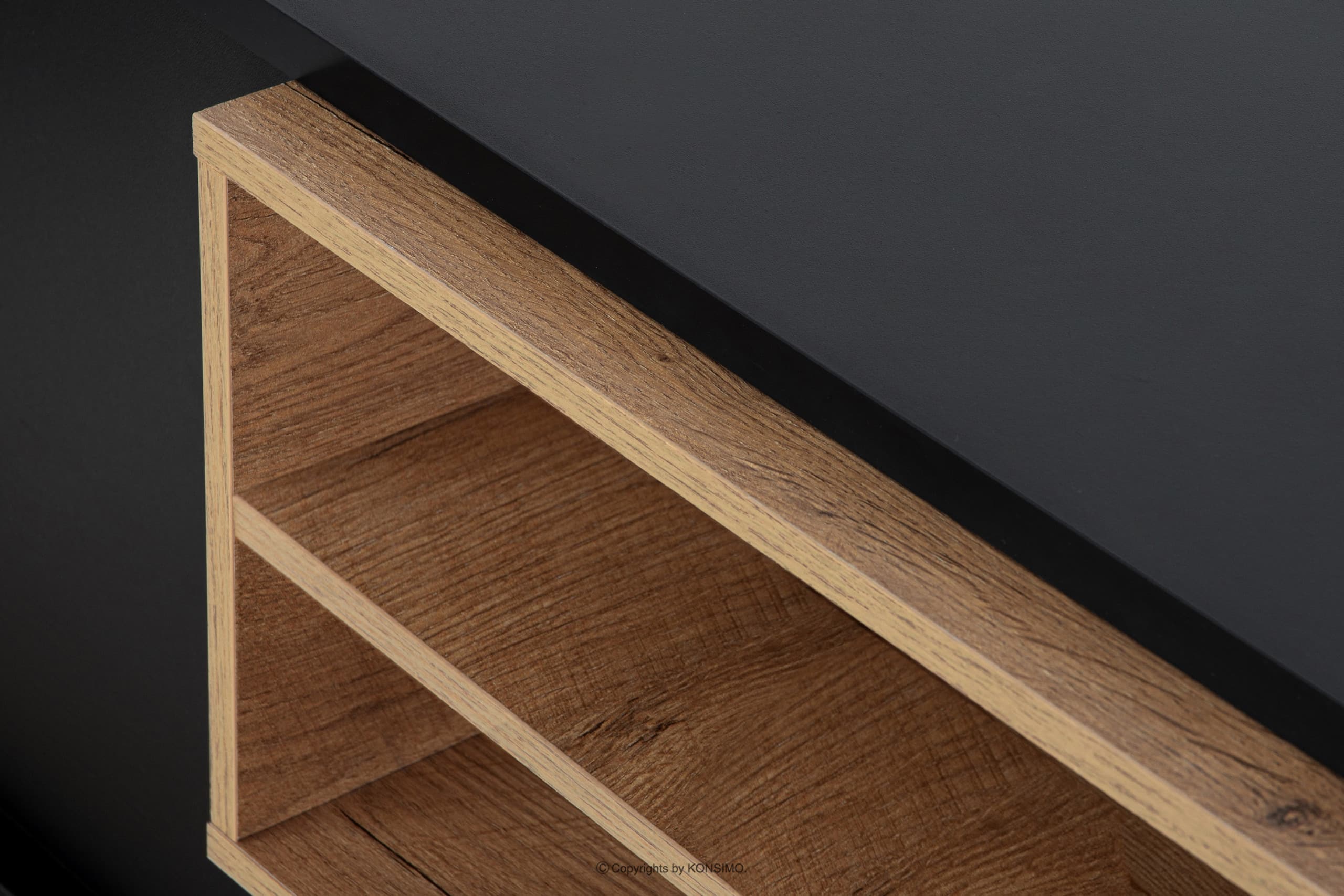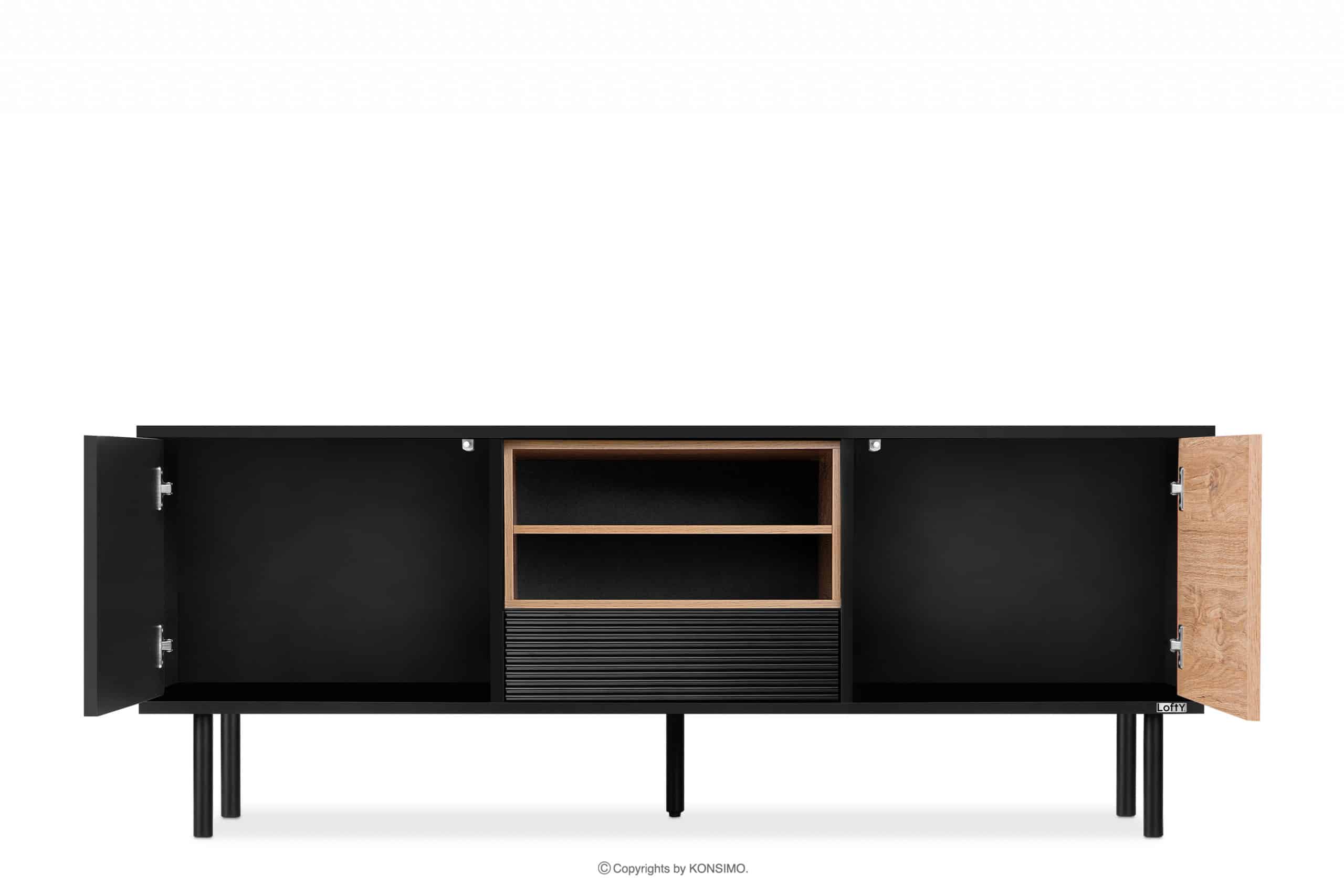 LOFTY zobacz całą kolekcję Szafka RTV w stylu loft z półkami- kolor czarny/dąb naturalny