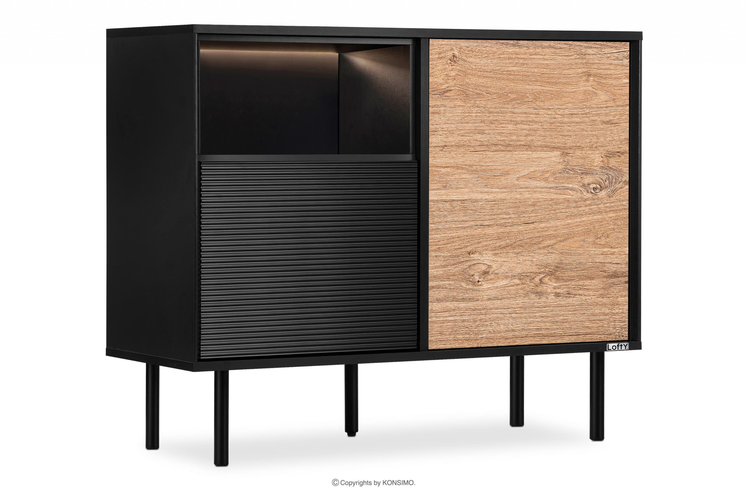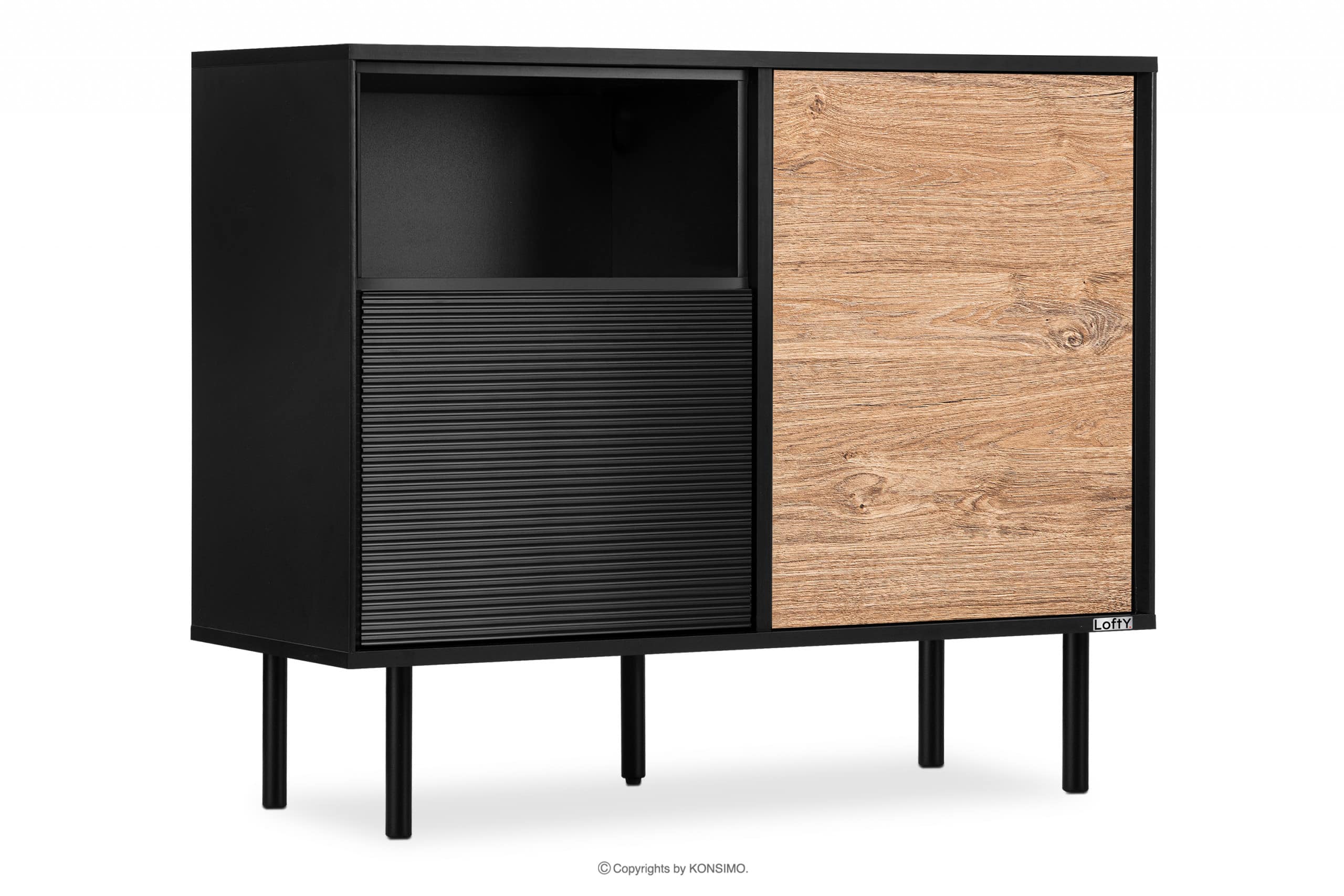 LOFTY zobacz całą kolekcję Komoda loft na wysokich nóżkach- kolor czarny/dąb naturalny