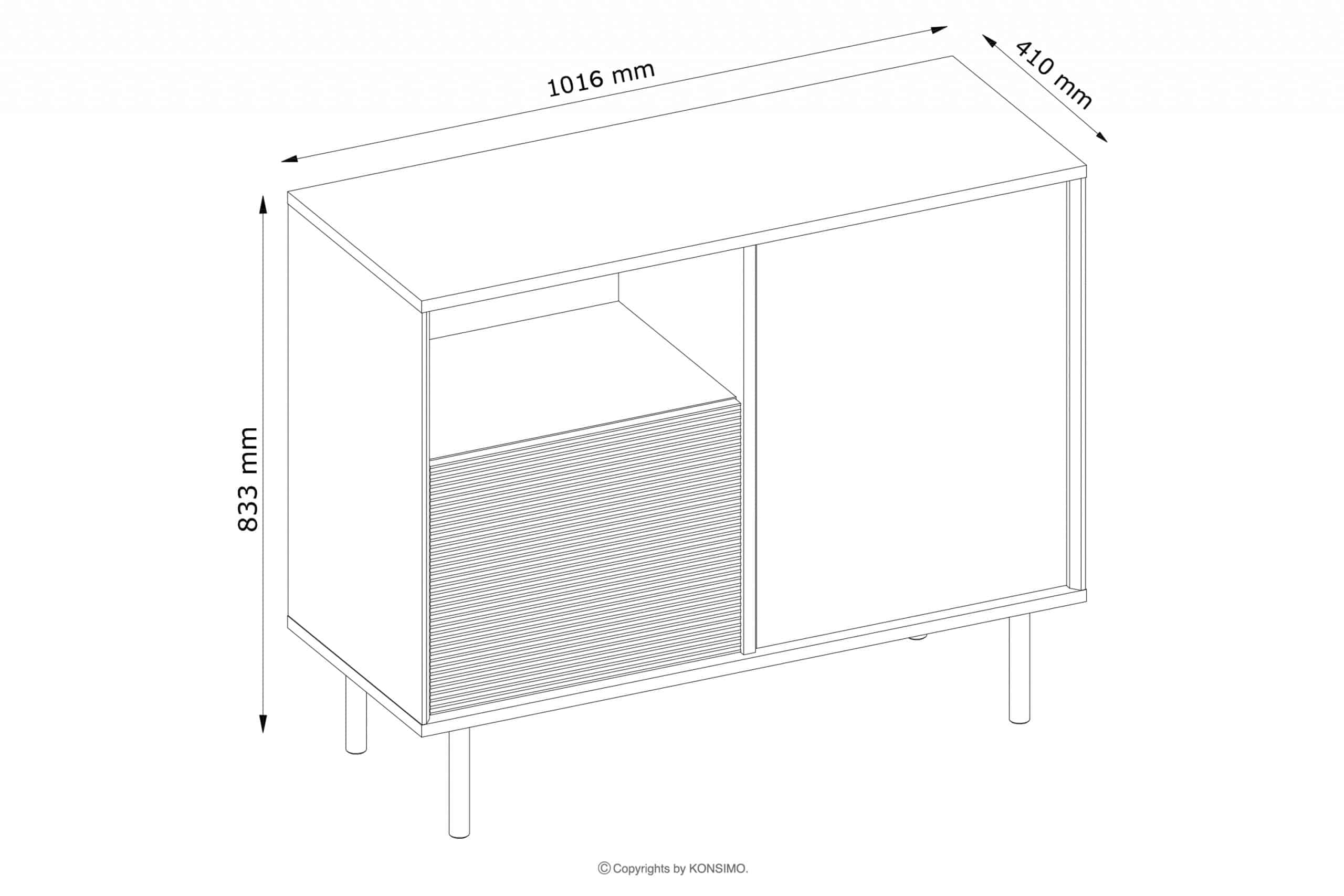 - Materiał front: Płyta laminowana 18mm, Wstawka ozdobna ryflowana – MDF opłaszczowany folią PVC 18mm