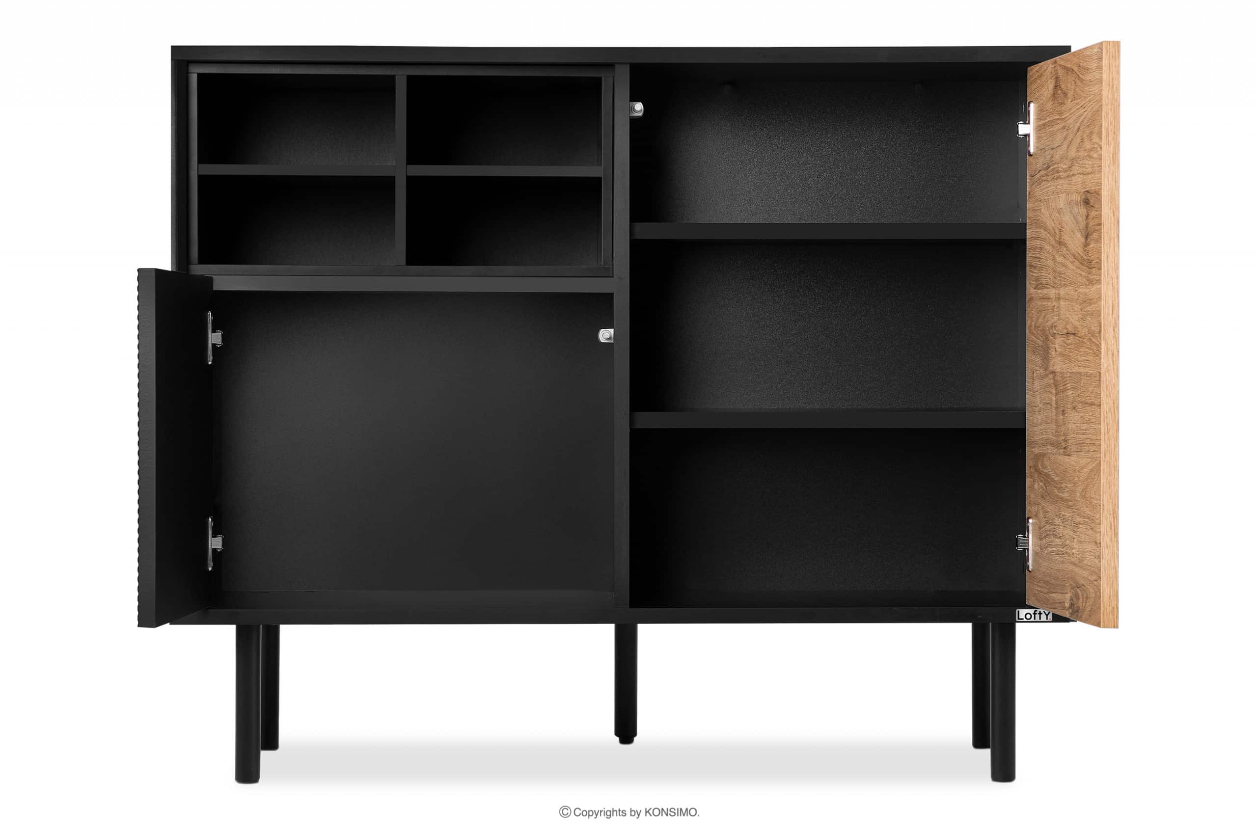 Komoda dąb naturalny/czarny w stylu loft LOFTY - kolor czarny/dąb naturalny