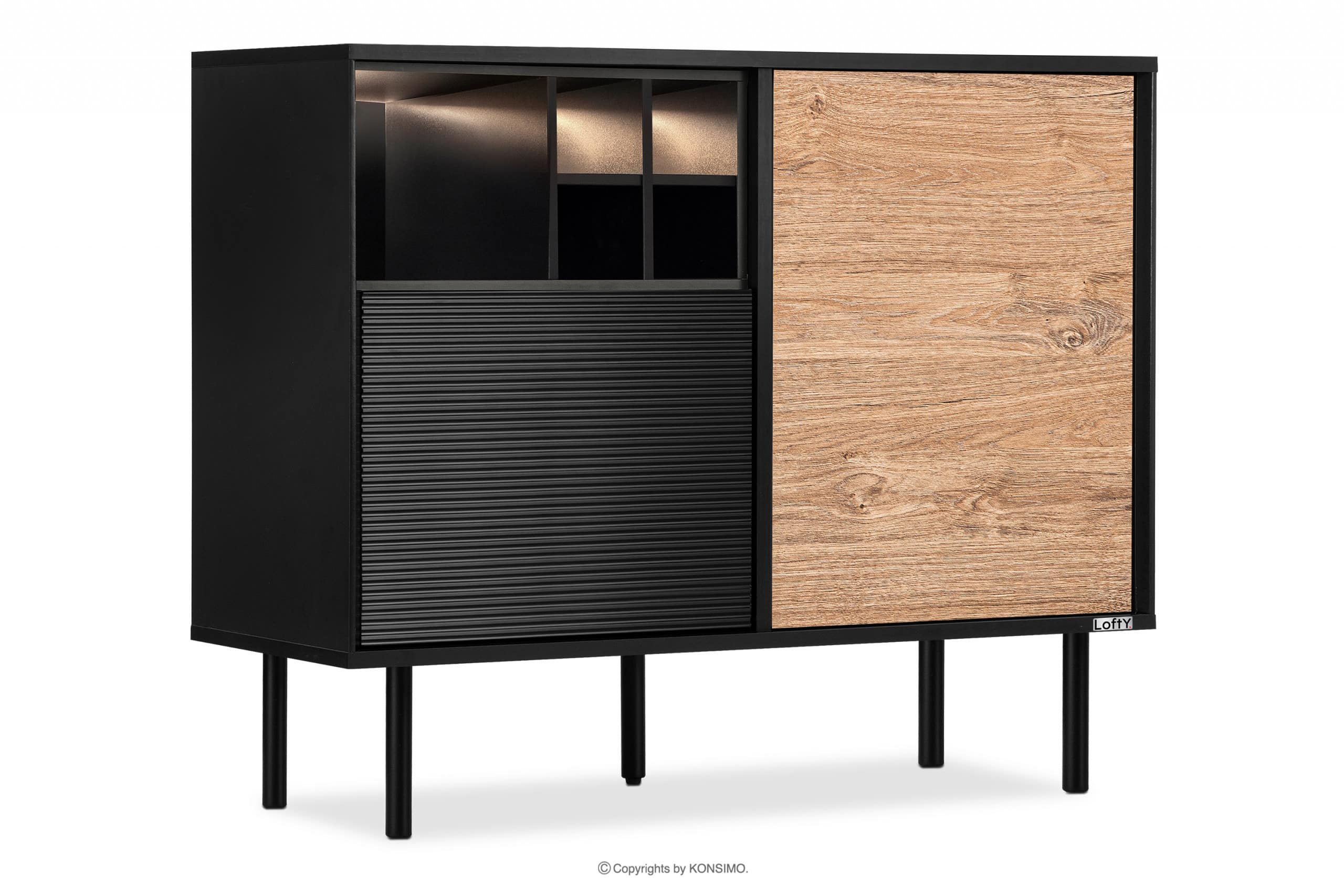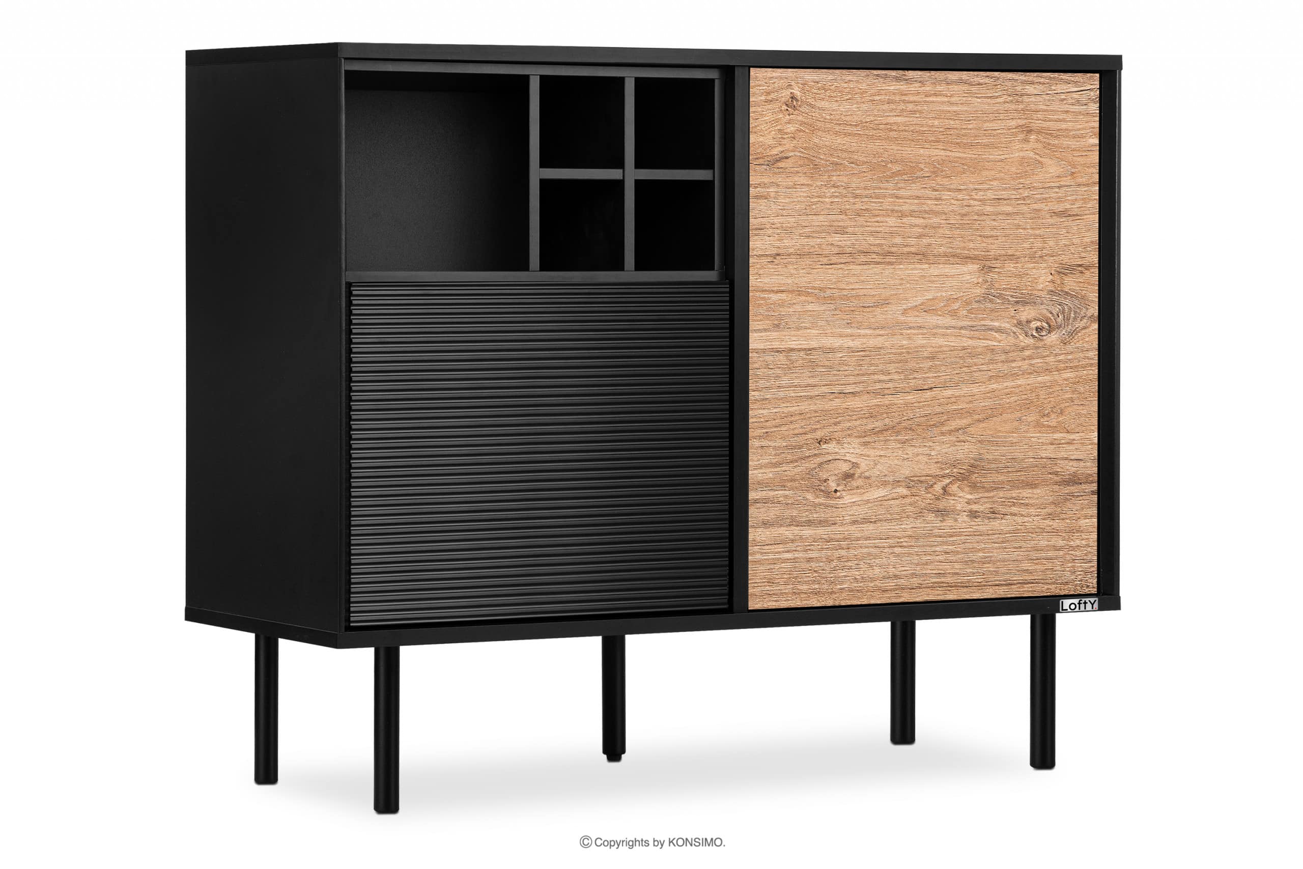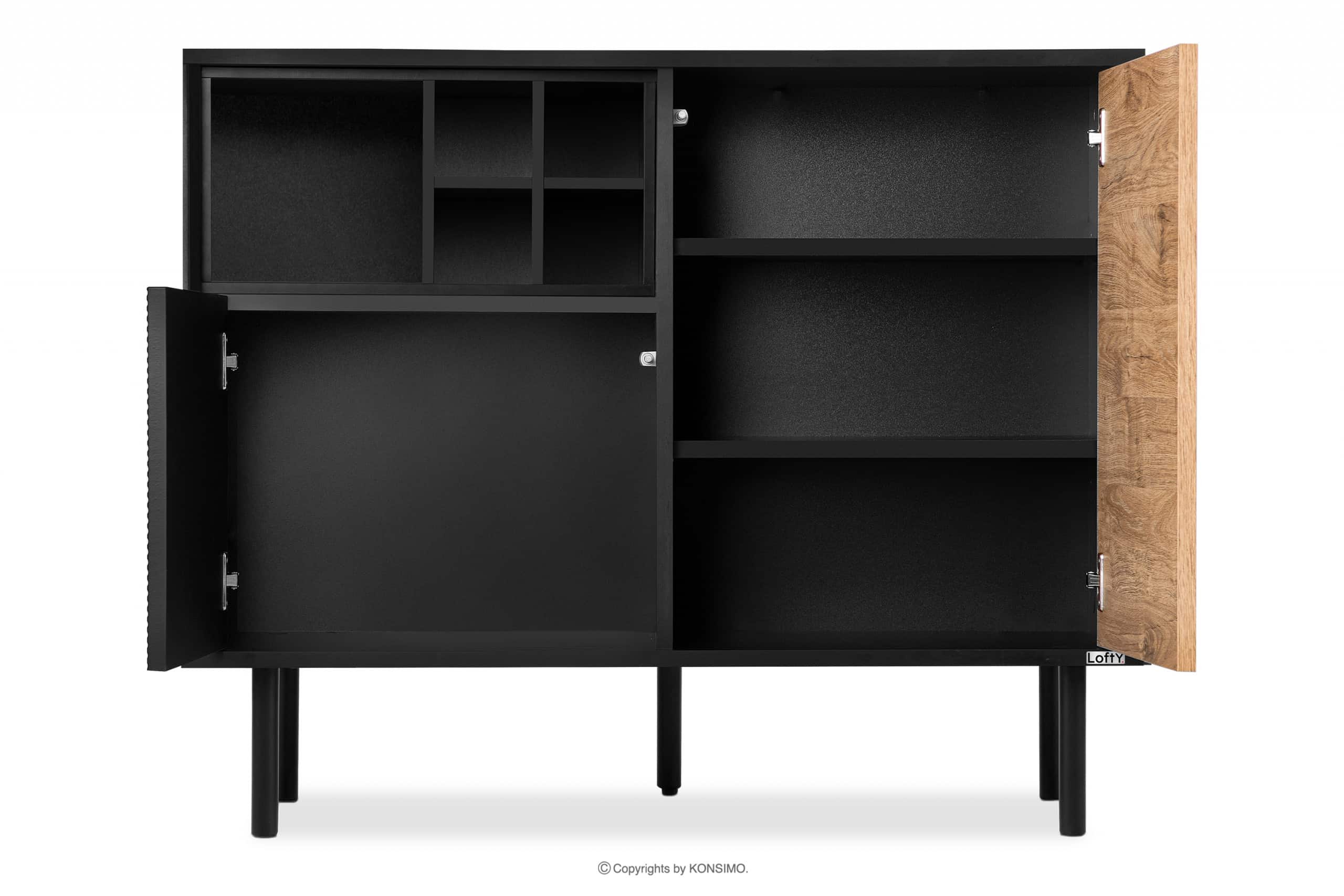 LOFTY zobacz całą kolekcję Komoda na wysokich nóżkach w stylu loft- kolor czarny/dąb naturalny