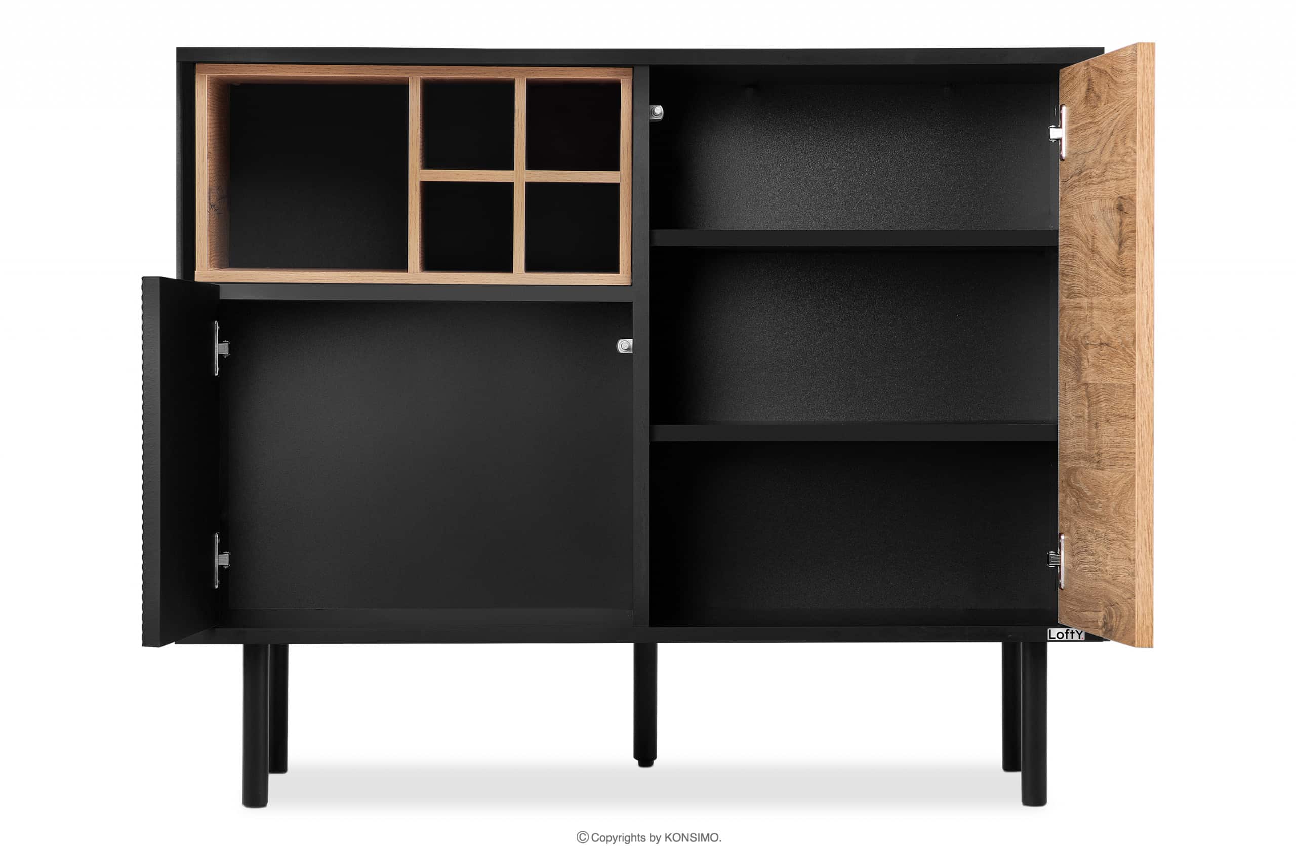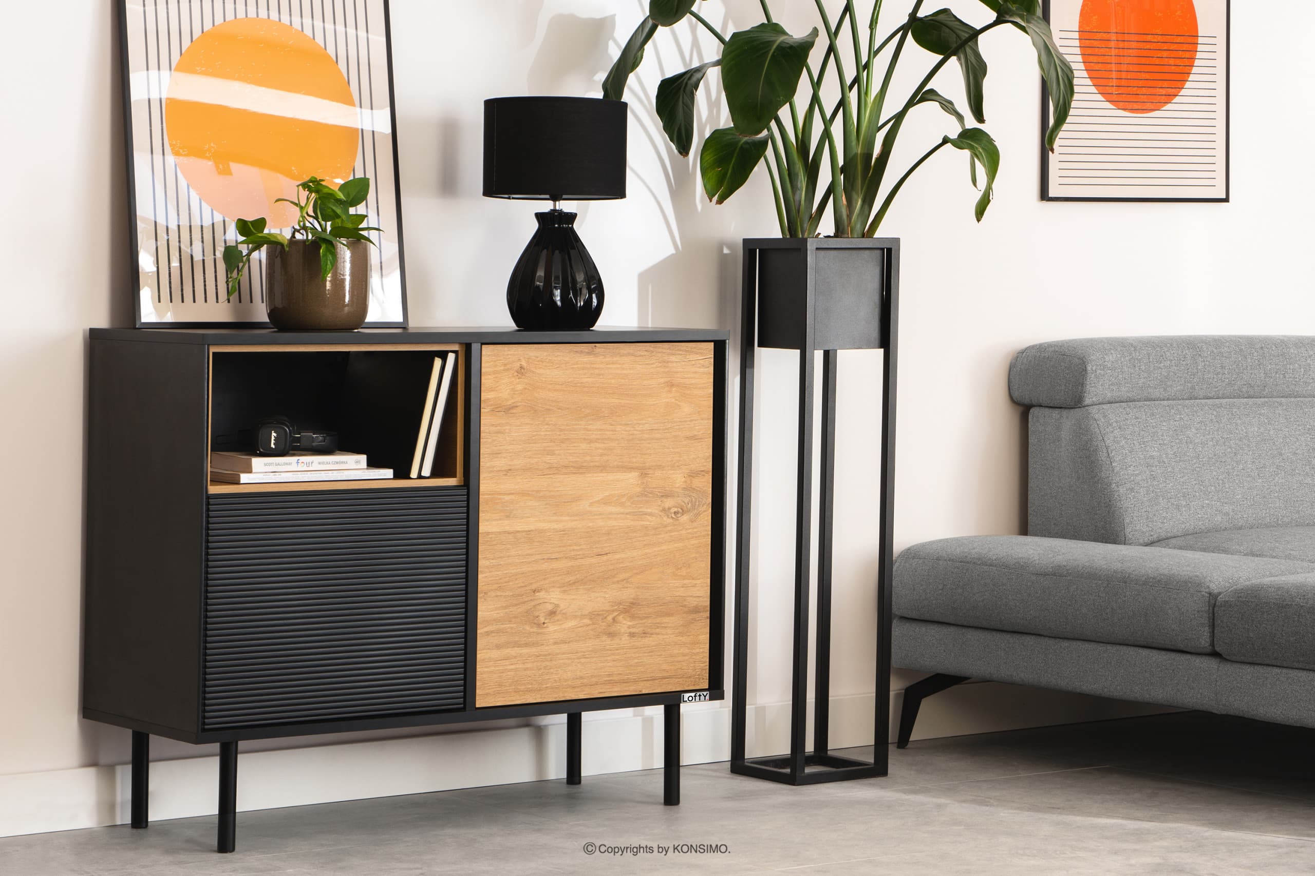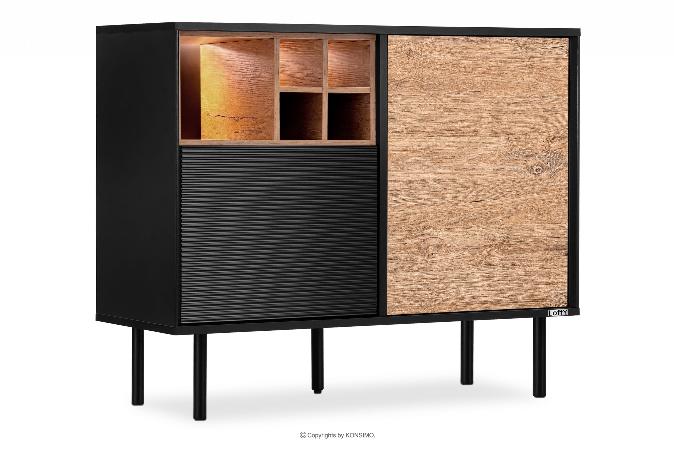 LOFTY zobacz całą kolekcję Komoda na drewnianych nóżkach w stylu loft- kolor czarny/dąb naturalny