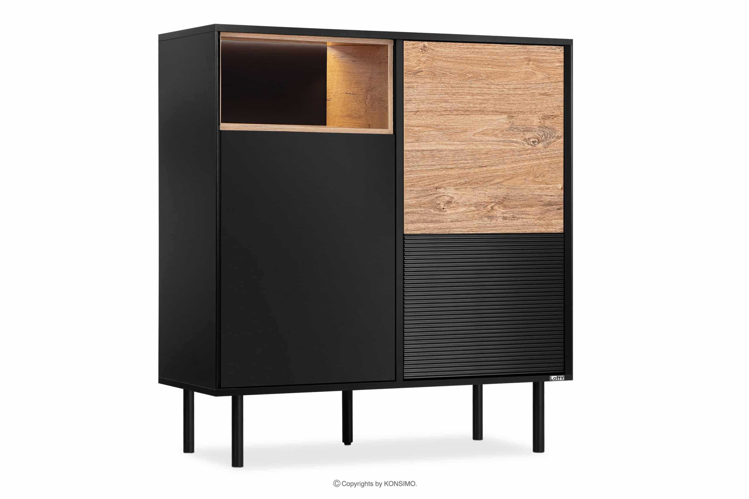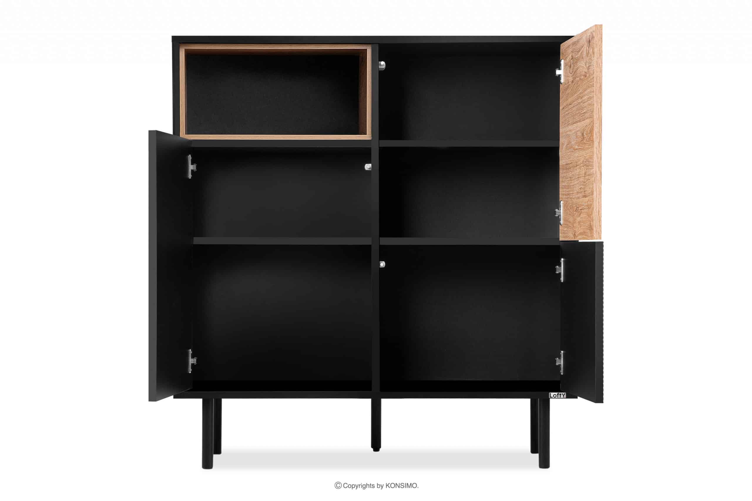 LOFTY zobacz całą kolekcję Komoda w stylu loft na czarnych nogach- kolor czarny/dąb naturalny