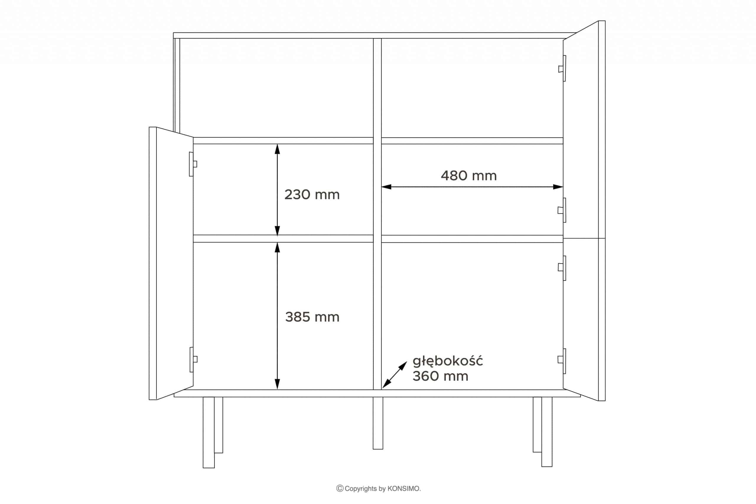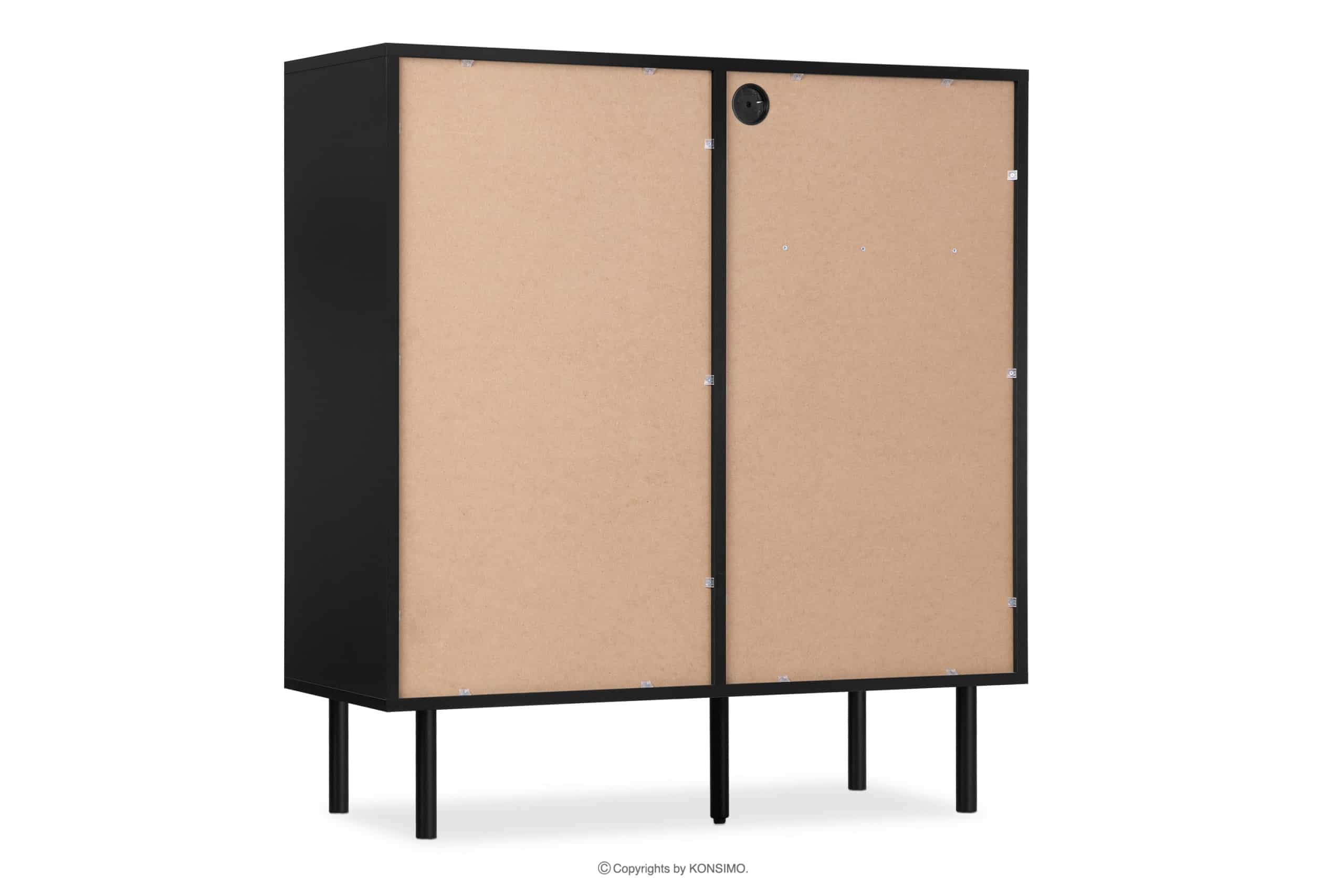Komoda w stylu loft na czarnych nogach zaprojektowana została z dużą starannością i dbałością o każdy detal. Dzięki swojej budowie zmieści się w niej wiele przedmiotów codziennego użytku, jak ubrania, dokumenty, czy książki. Posiada trzy duże szafki, oraz półkę. System otwierania drzwi push-to-open, dzięki czemu komoda zachowuje elegancki wygląd bez zbędnych ozdób, a przy tym jest to bardzo wygodne.