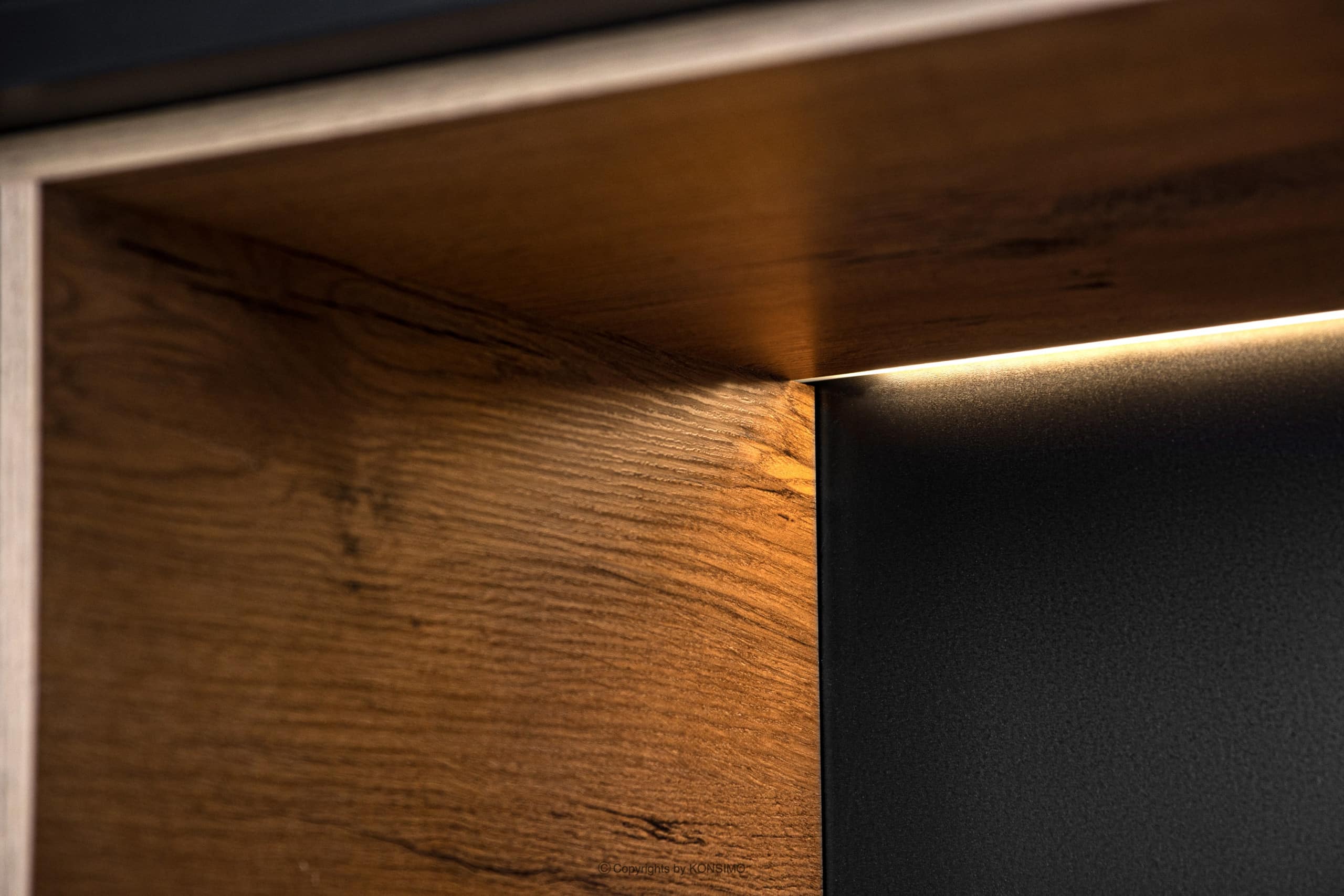 Połączenie czerni i laminatu w kolorze naturalnego drewna doda ciepła i nada pomieszczeniu niepowtarzalnego charakteru.Opcjonalnie oświetlenie LED 12607.15.147.