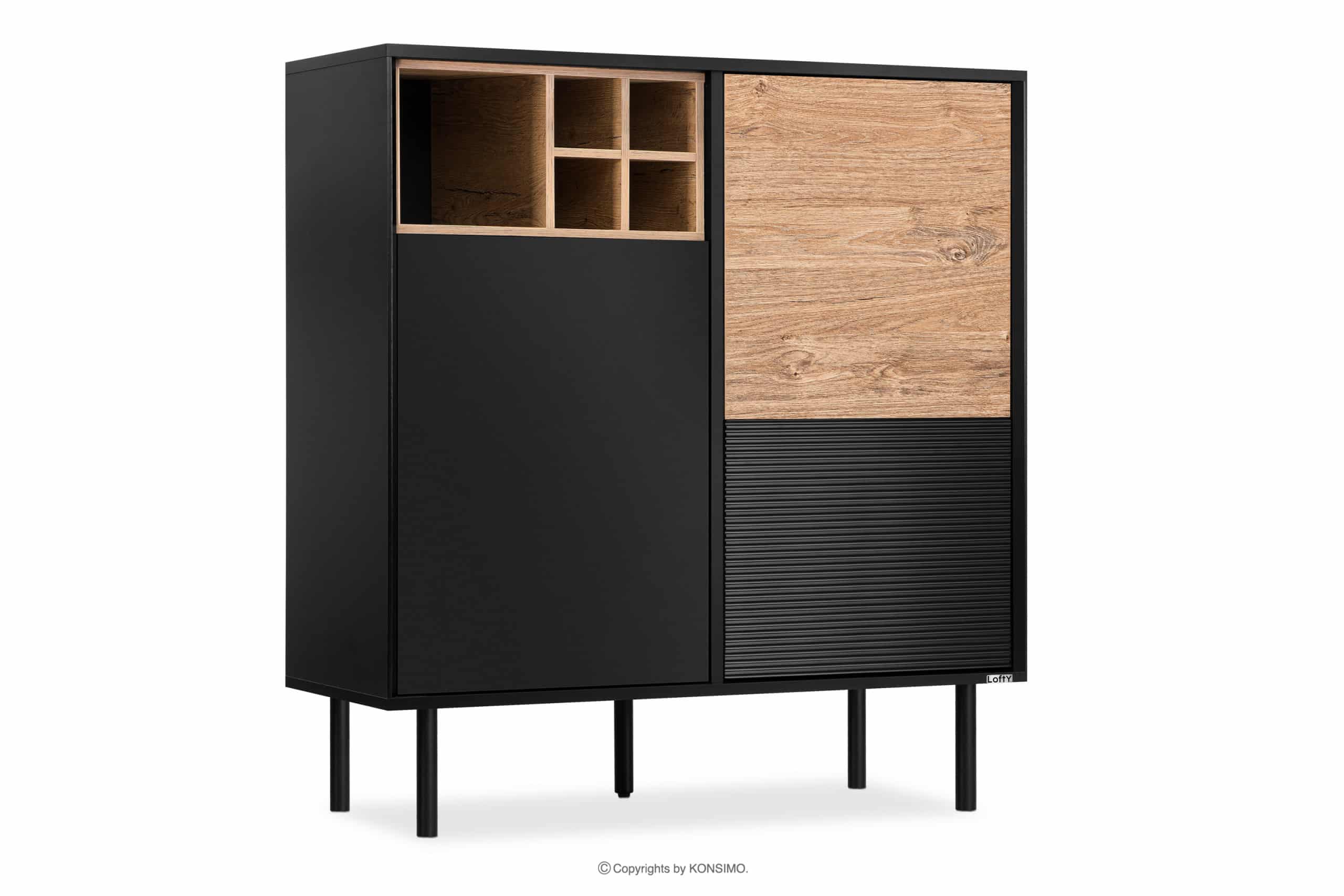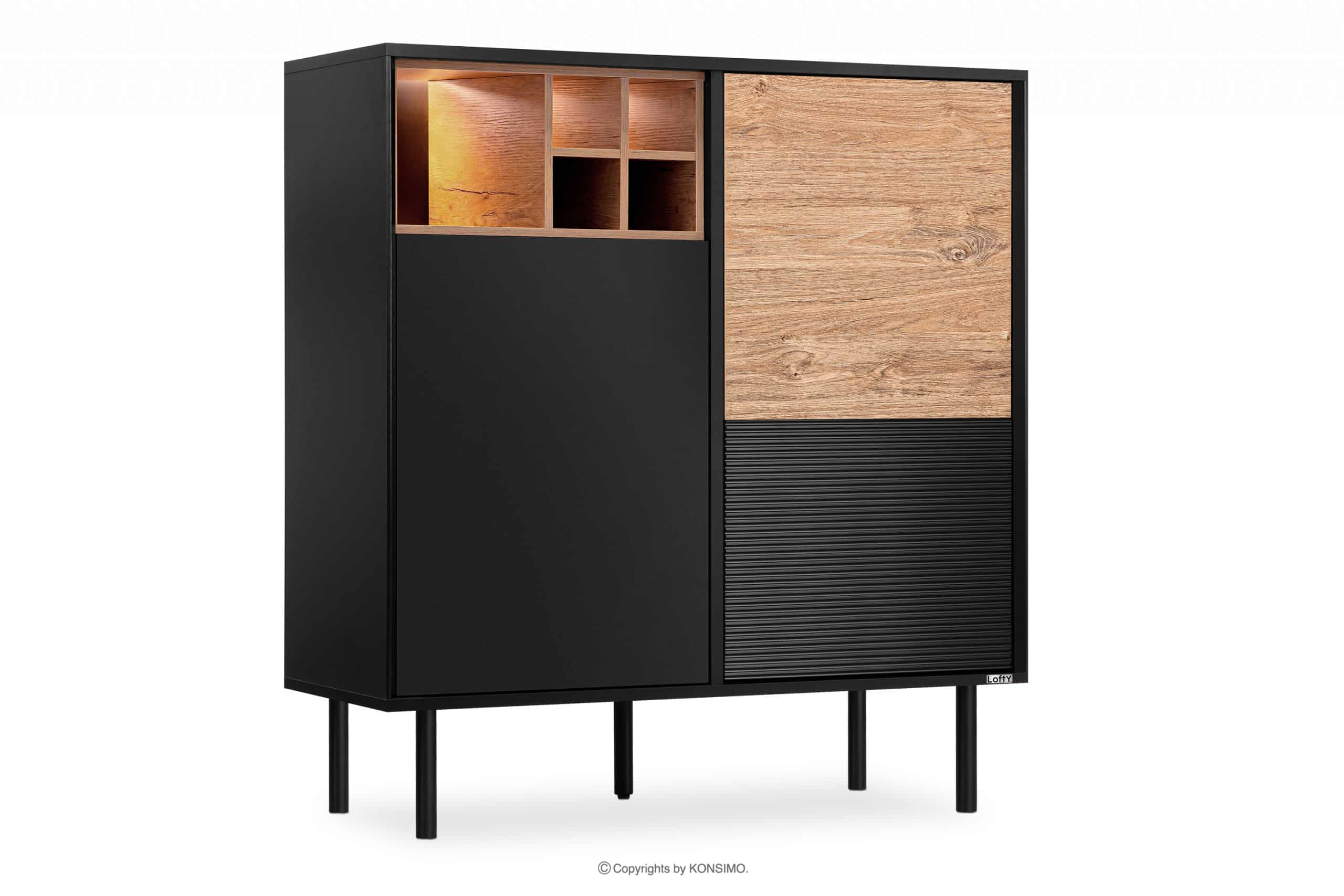 LOFTY zobacz całą kolekcję Loftowa komoda na czarnych wysokich nogach- kolor czarny/dąb naturalny