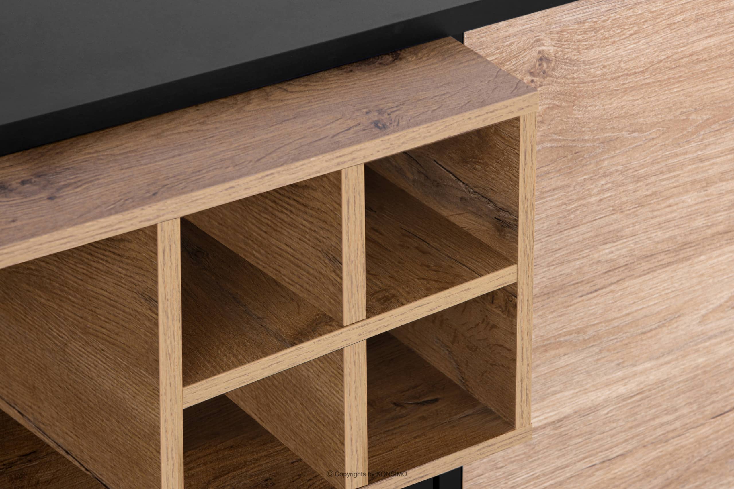Połączenie czerni z laminatem w naturalnym odcieniu drewna doda ciepła i nada pomieszczeniu niepowtarzalnego charakteru.Opcjonalnie oświetlenie LED 12607.15.147.