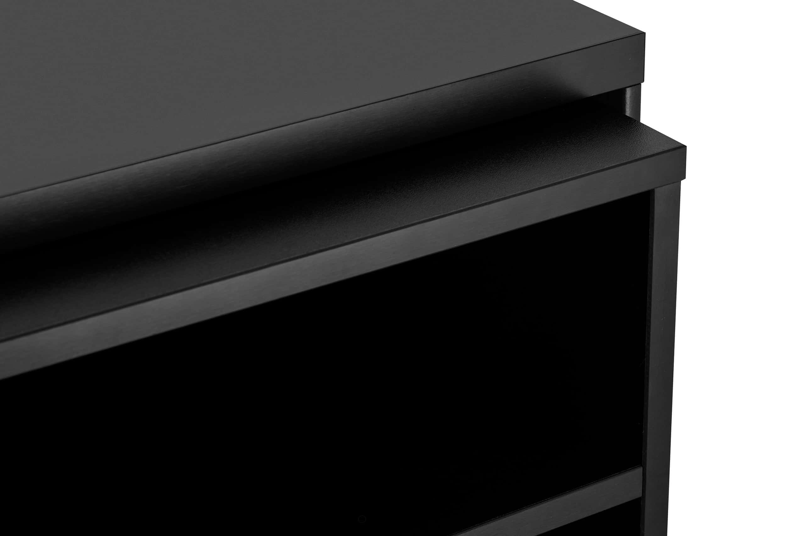 Regał z ryflowaniem loft został zaprojektowany z niezwykłą dbałością o każdy szczegół. Dzięki swojej konstrukcji może pomieścić wiele przedmiotów codziennego użytku, takich jak ubrania, dokumenty czy książki. Posiada kilka pojemnych półek. Dzięki systemowi push-to-open, regał zachowuje elegancki wygląd bez zbędnych uchwytów, a przy tym jest bardzo funkcjonalny. Połączenie czerni z laminatem w naturalnym odcieniu dębu doda ciepła i nada pomieszczeniu wyjątkowego charakteru.