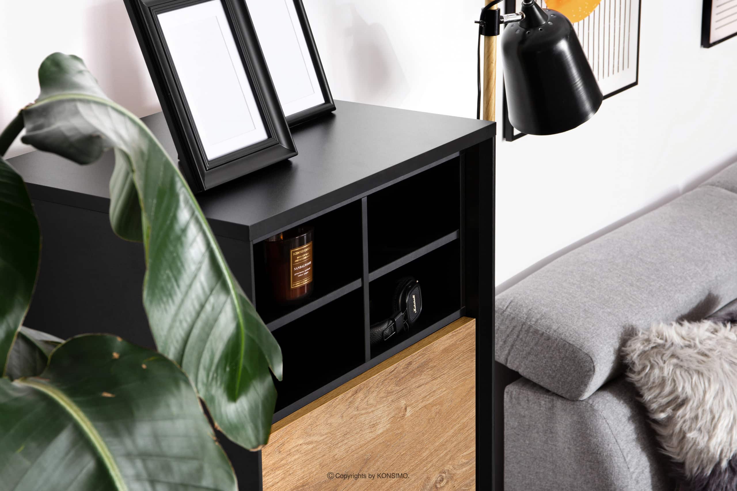 Regał z ryflowaniem loft LOFTY - kolor czarny/dąb naturalny