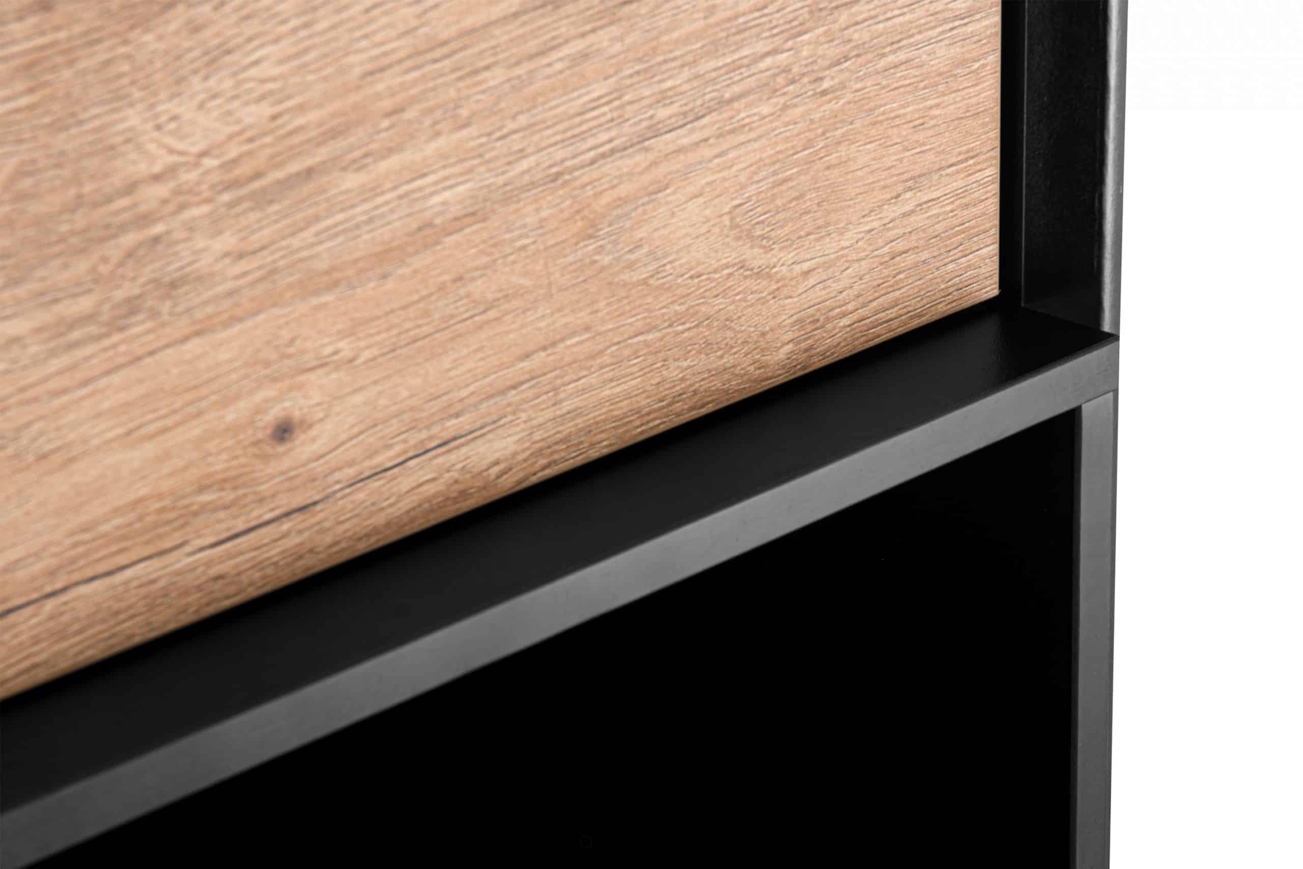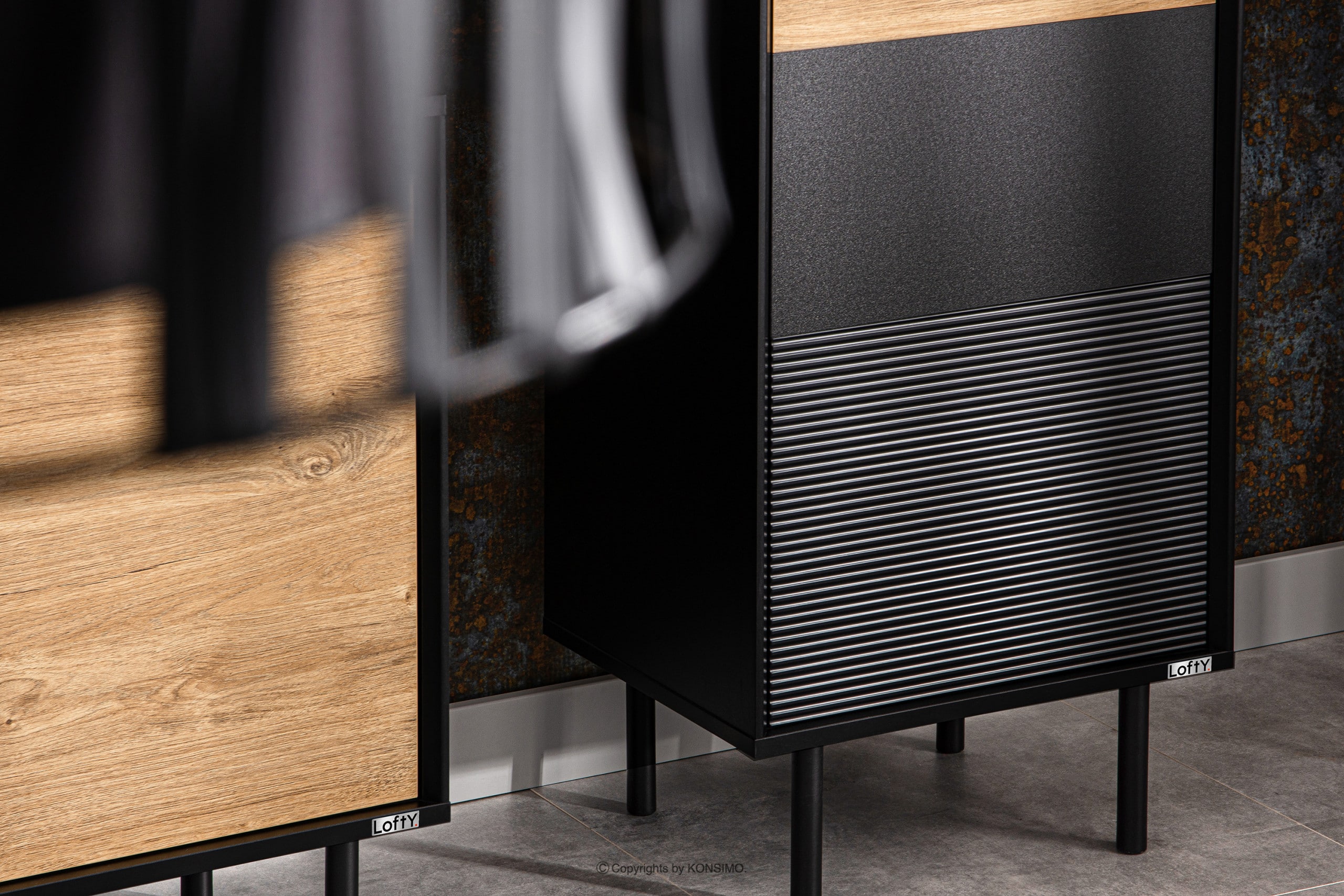 LOFTY zobacz całą kolekcję Wysoki regał w stylu loft z ryflowaniem- kolor czarny/dąb naturalny