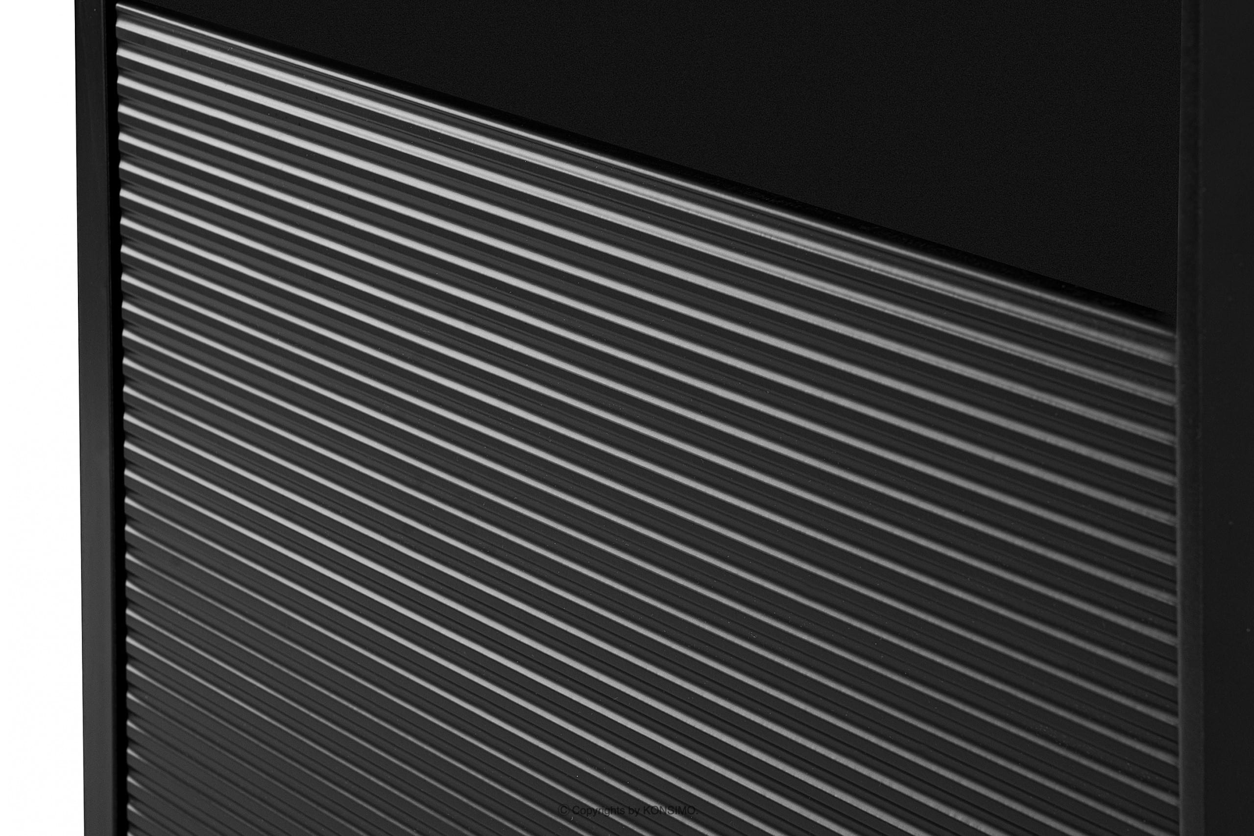 - Materiał front: Płyta laminowana 18mm, Wstawka ozdobna ryflowana – MDF opłaszczowany folią PVC 18mm