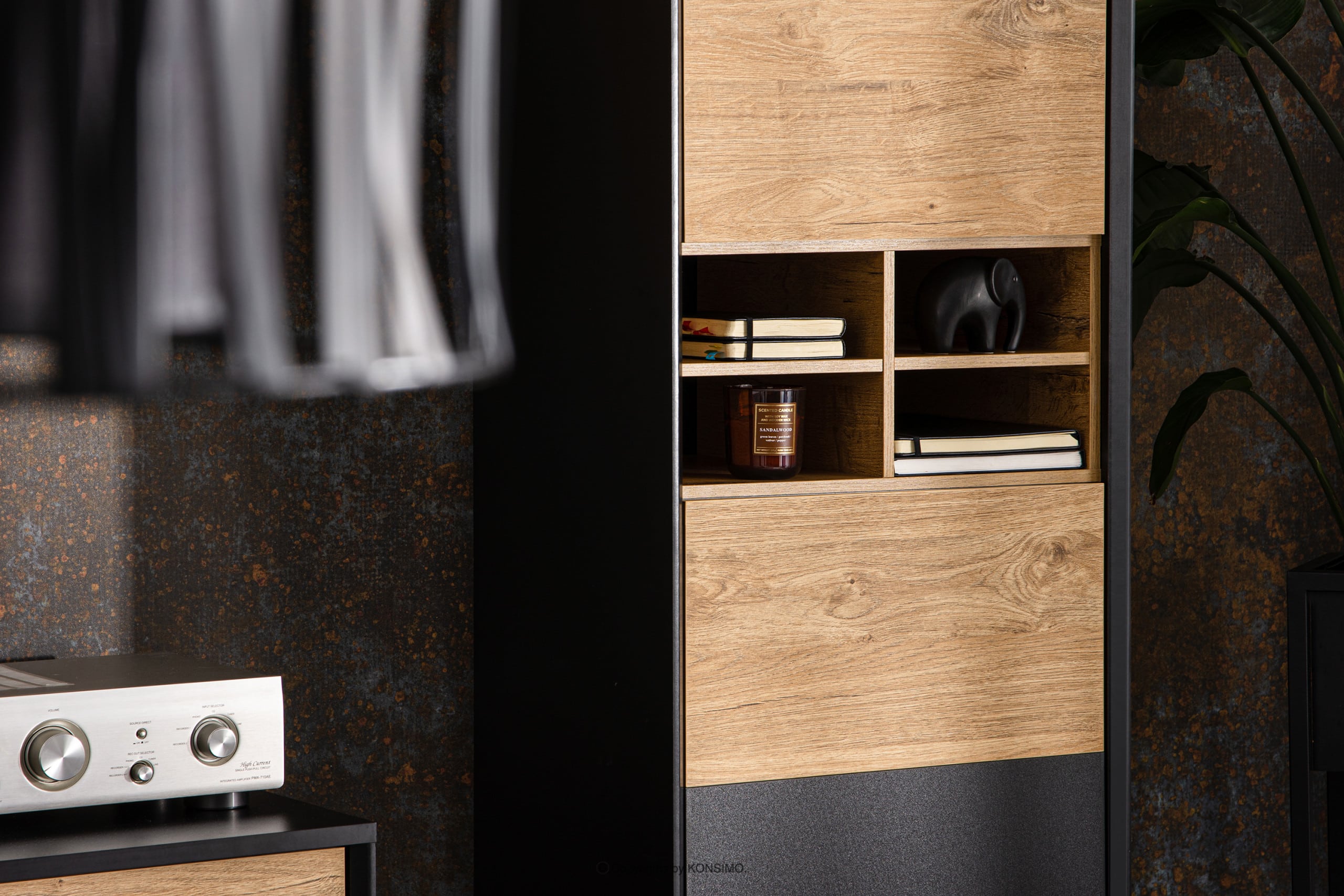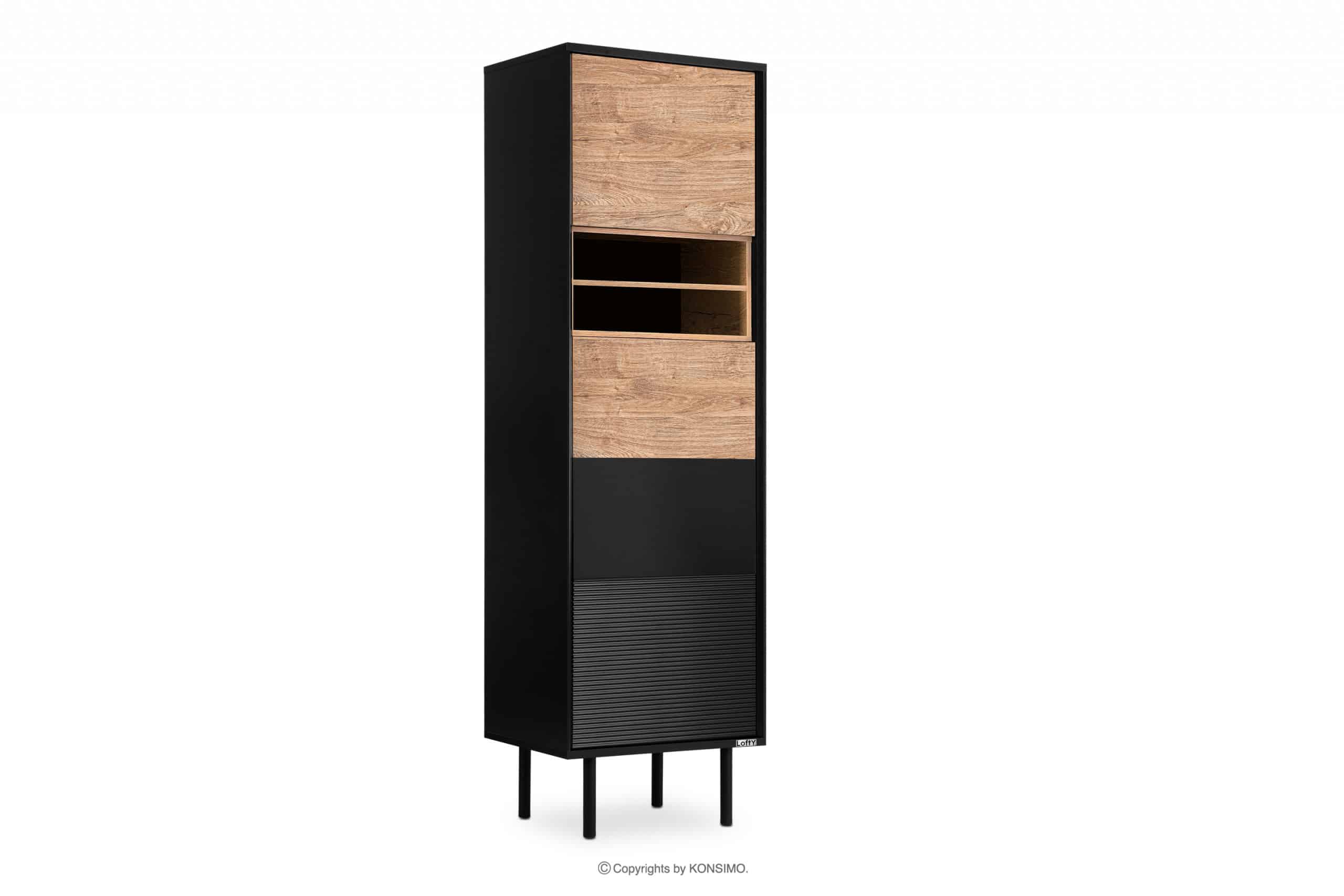 LOFTY zobacz całą kolekcję Wysoki regał z czarnym ryflowaniem- kolor czarny/dąb naturalny