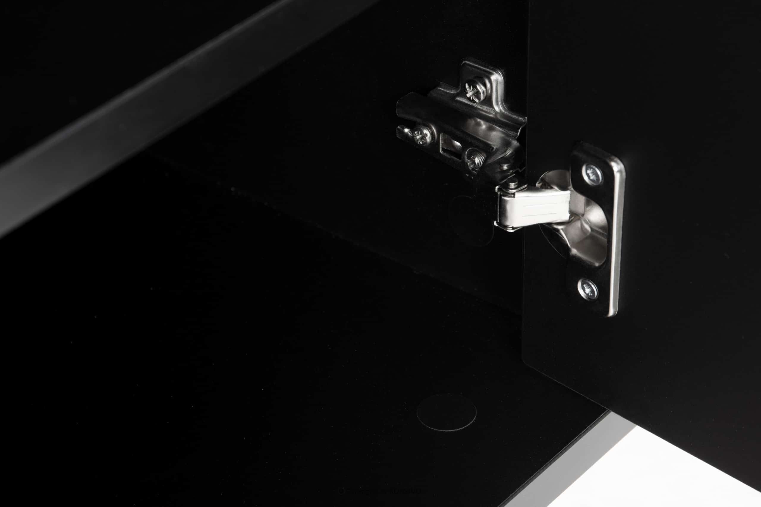 Komoda wykonana jest z solidnej płyty laminowanej o grubości 18 mm, którą łatwo jest utrzymać w czystości (wystarczy przetrzeć ściereczką). Natomiast przednie ryflowane elementy na drzwiach wykonane są z MDF i PVC. Tylna ściana jest specjalnie wzmocniona, aby zapewnić stabilność. Krawędzie ABS o grubości 1mm są wysoce odporne na uszkodzenia mechaniczne. Drzwi posiadają zawiasy puszkowe, które można regulować w trzech płaszczyznach.