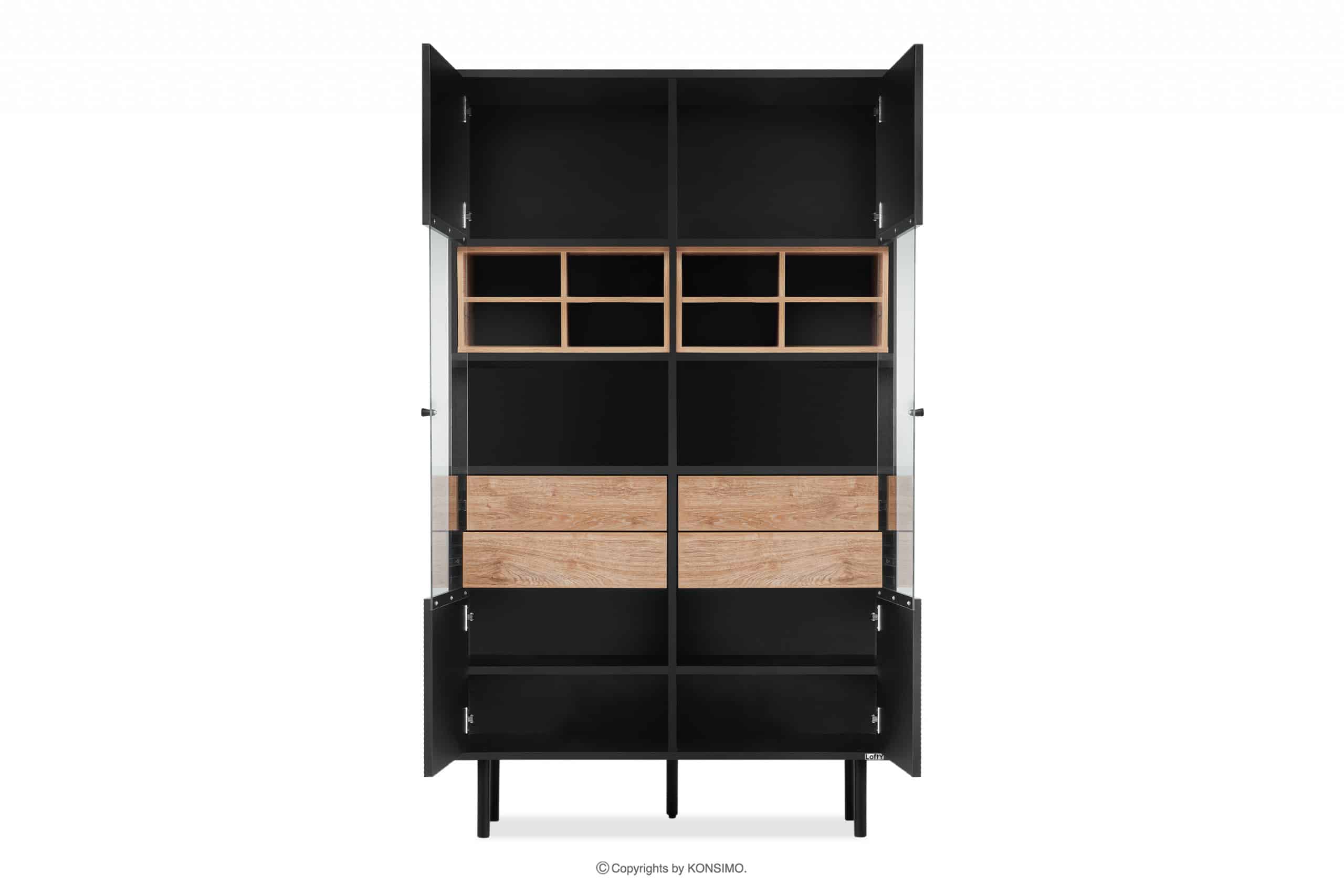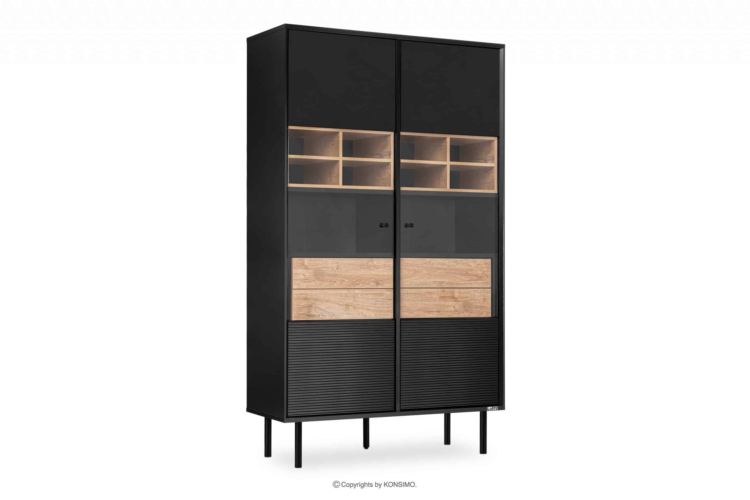 LOFTY zobacz całą kolekcję Dwudrzwiowa witryna na wysokich nogach w stylu loft- kolor czarny/dąb naturalny