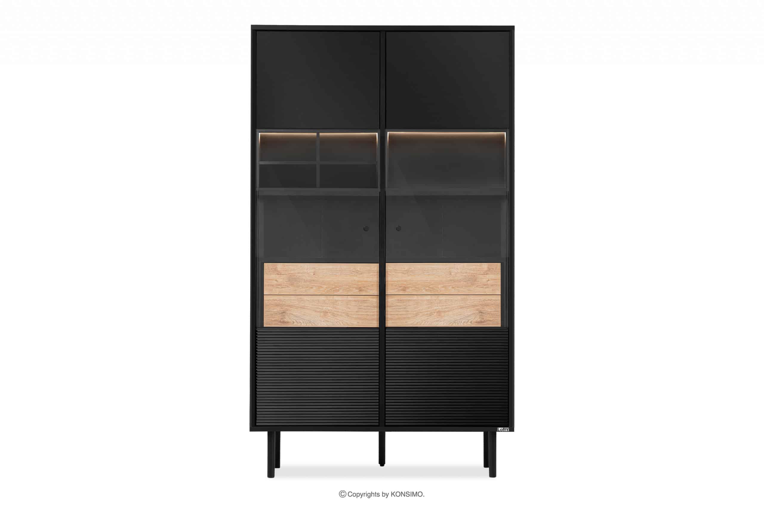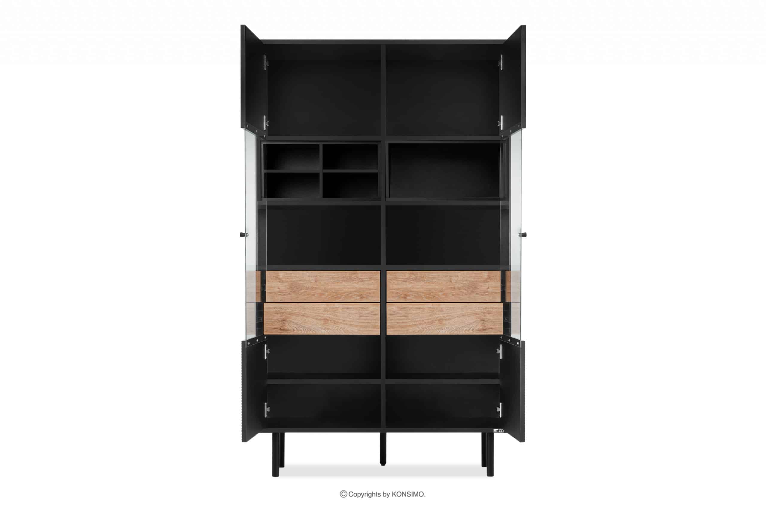 LOFTY zobacz całą kolekcję Dwudrzwiowa witryna z szufladami w stylu loft- kolor czarny/dąb naturalny