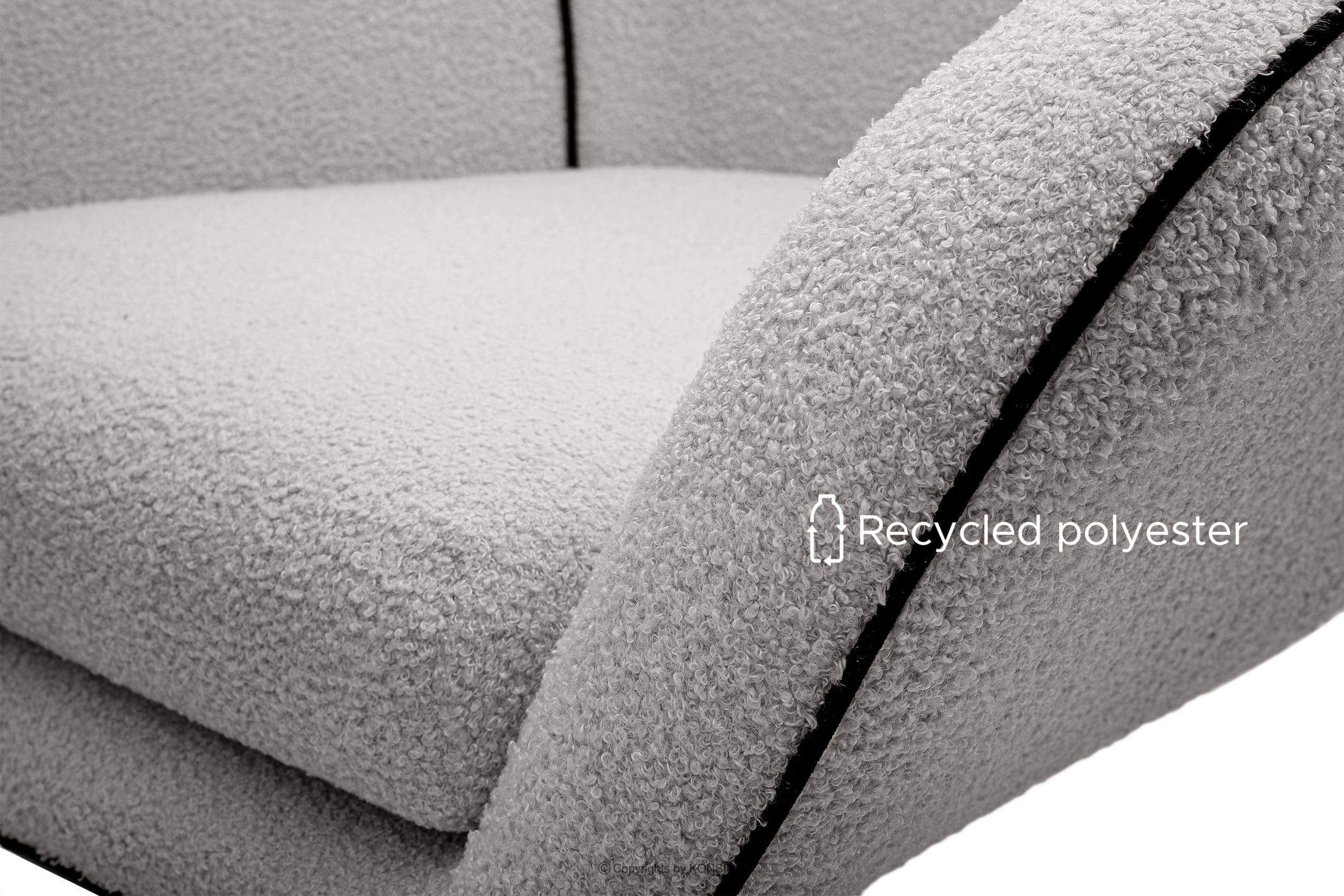 Siedzisko znajduje się na wysokiej nóżce, dzięki której konstrukcja fotela jest stabilna i mocno osadzona na podłodze. Dla zapewnienia największego komfortu oparcie posiada możliwość kilkustopniowej regulacji dla ustawienia najlepszego stopnia odchylenia. Wygodę siedzenia gwarantuje zastosowana pianka poliuretanowa PUR wraz z wyjątkowo miękką tkaniną typu baranek.. Faktura zakręconych włókien pozwoli nadać wnętrzu przytulnego charakteru. Ciemne przeszycie dodatkowo nadaje fotelowi charakteru, czyniąc go idealnym elementem wystroju salonu lub sypialni.