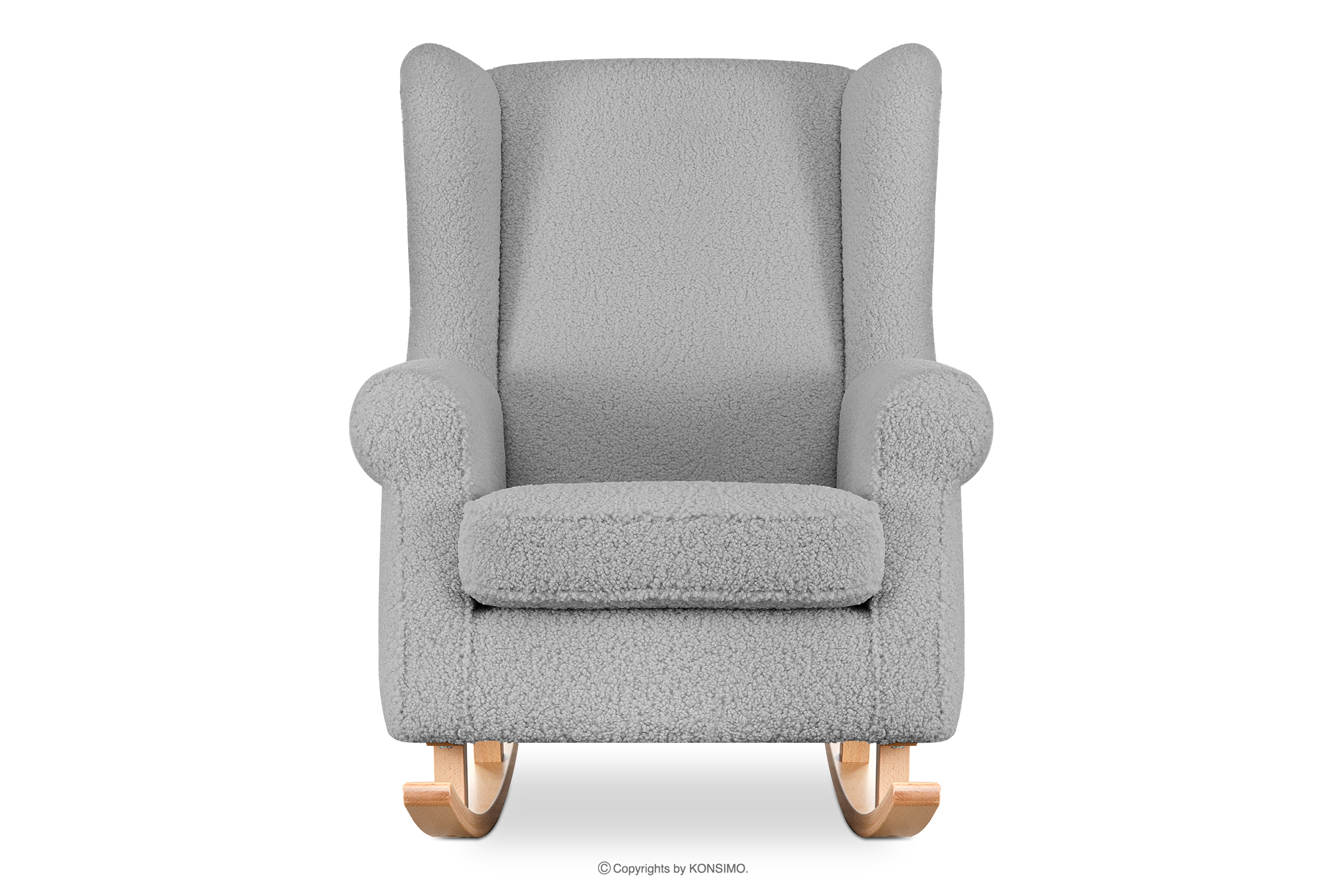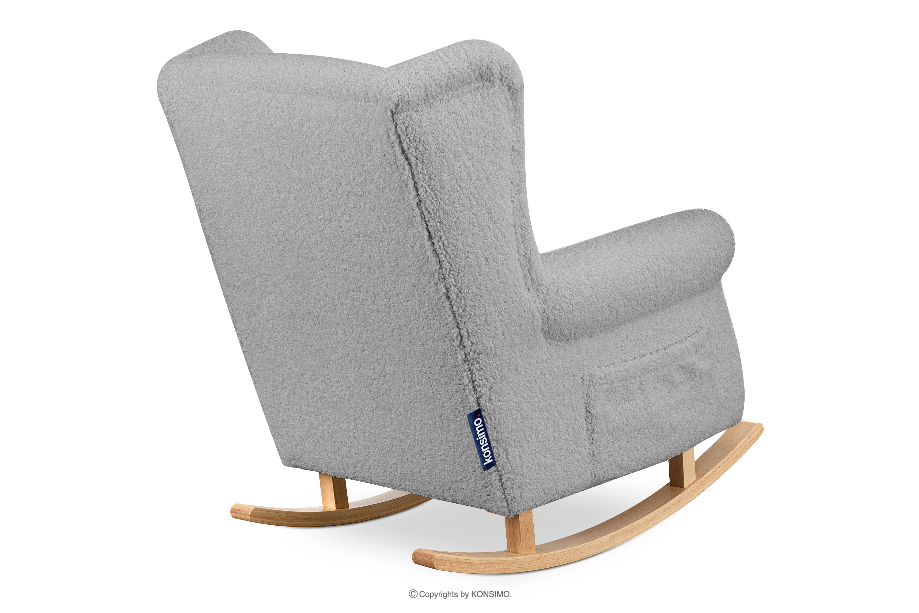 TULES zobacz całą kolekcję Fotel bujany z kieszenią w tkaninie baranek szary- kolor szary