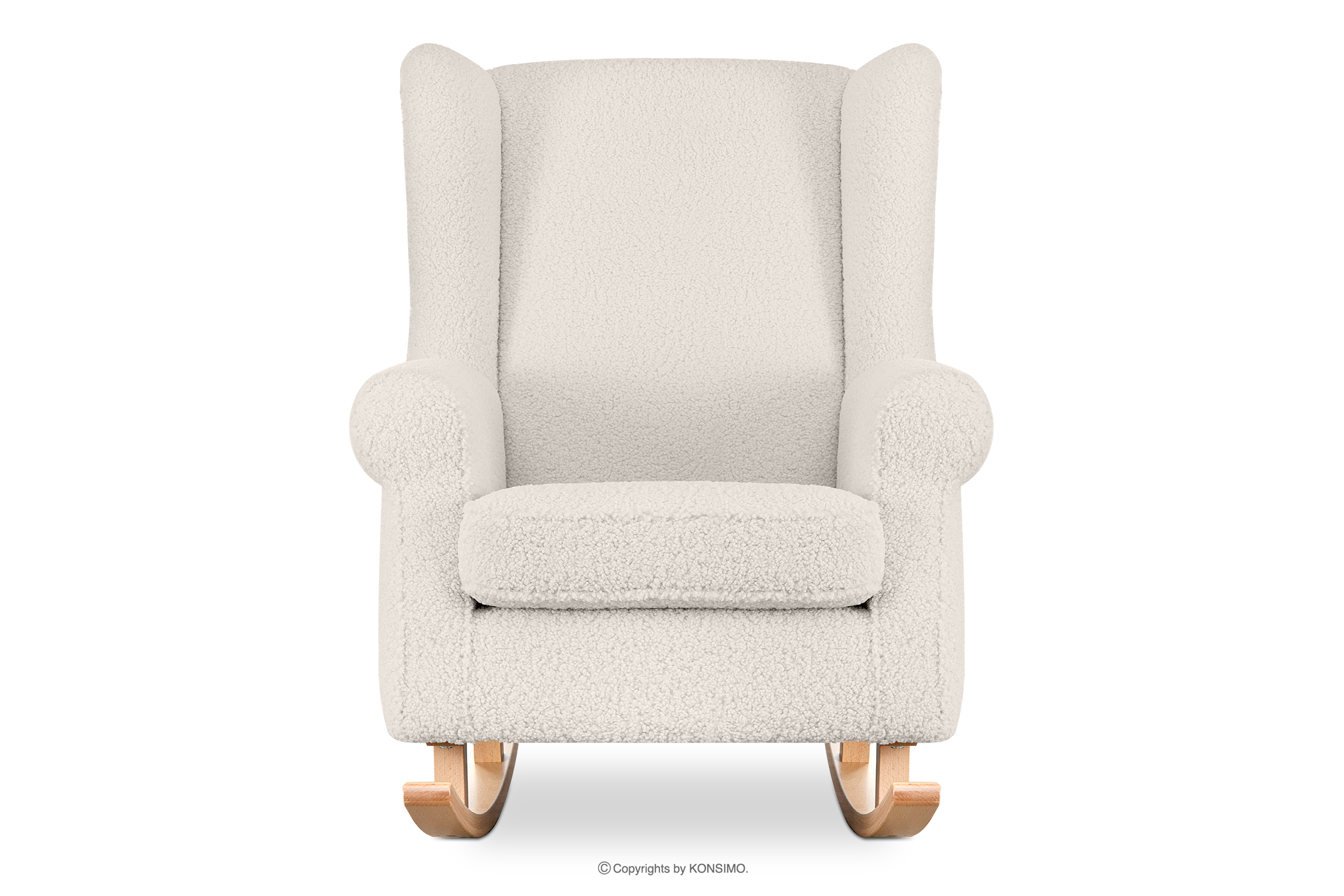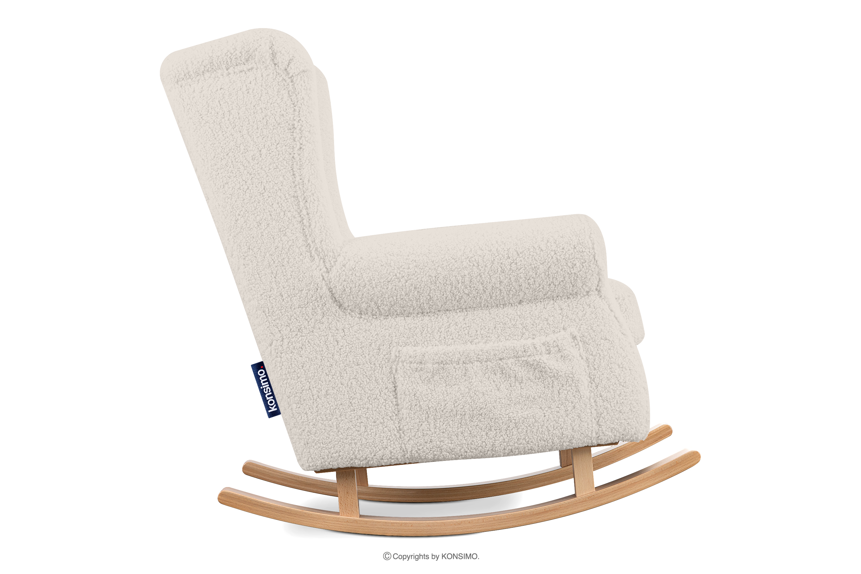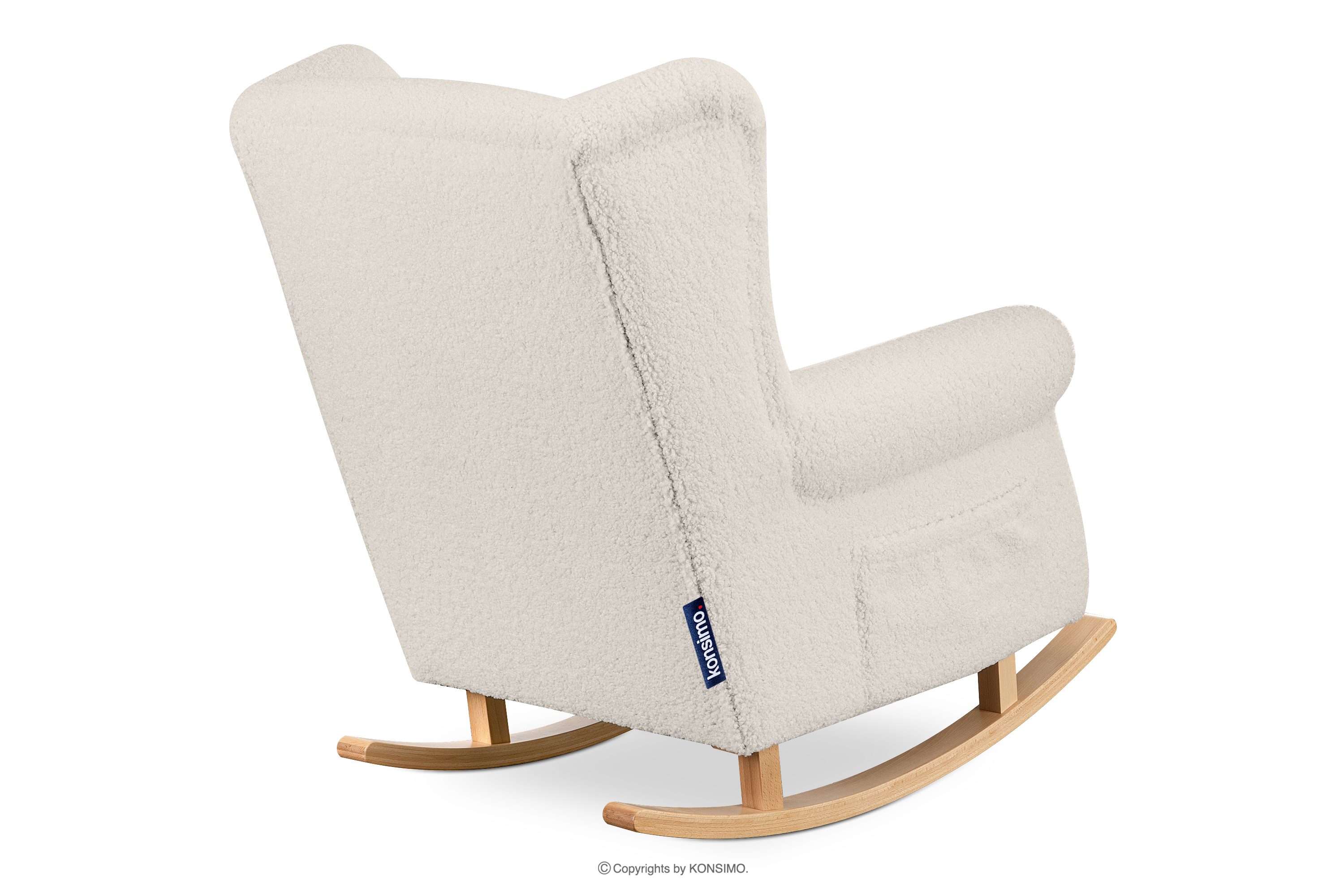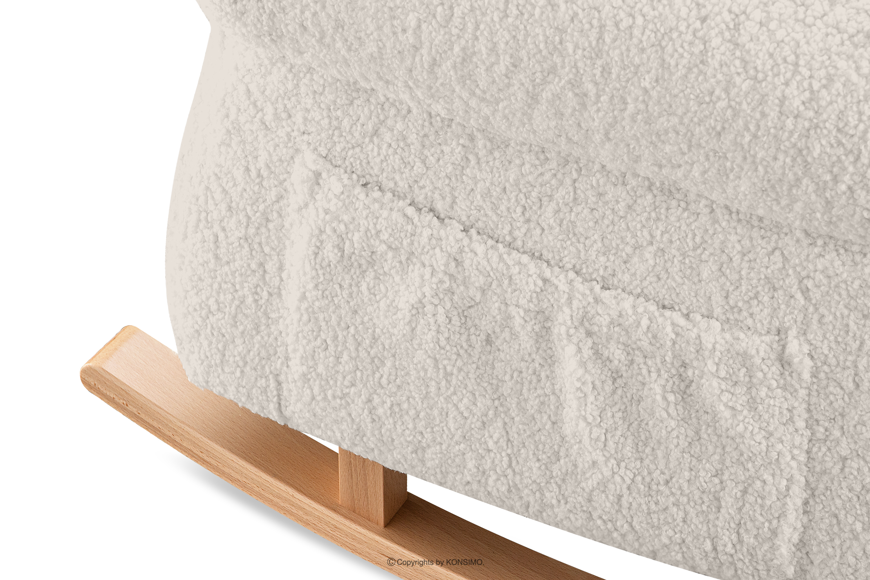 TULES zobacz całą kolekcję Fotel bujany z kieszenią w tkaninie baranek kremowy- kolor kremowy