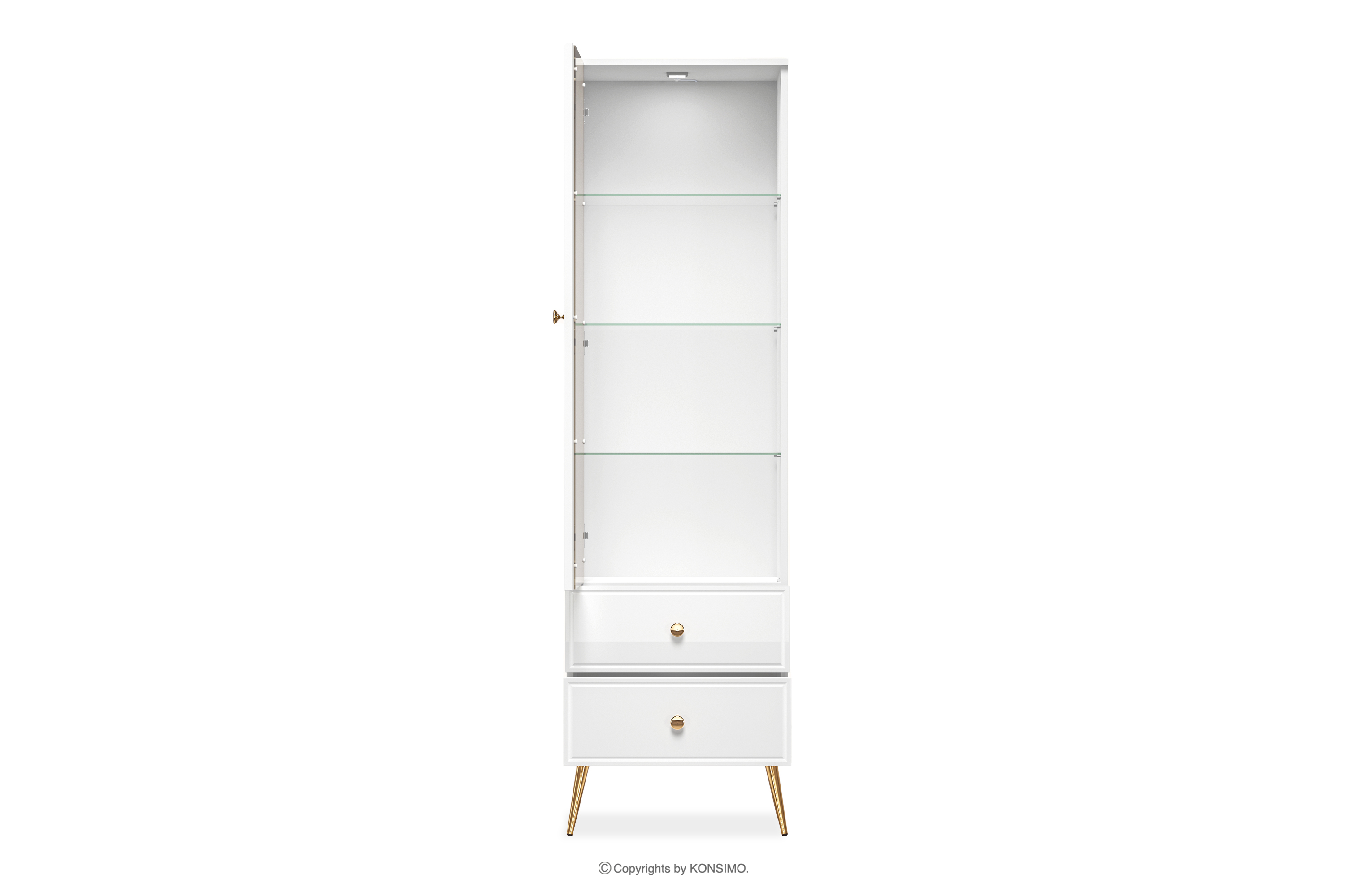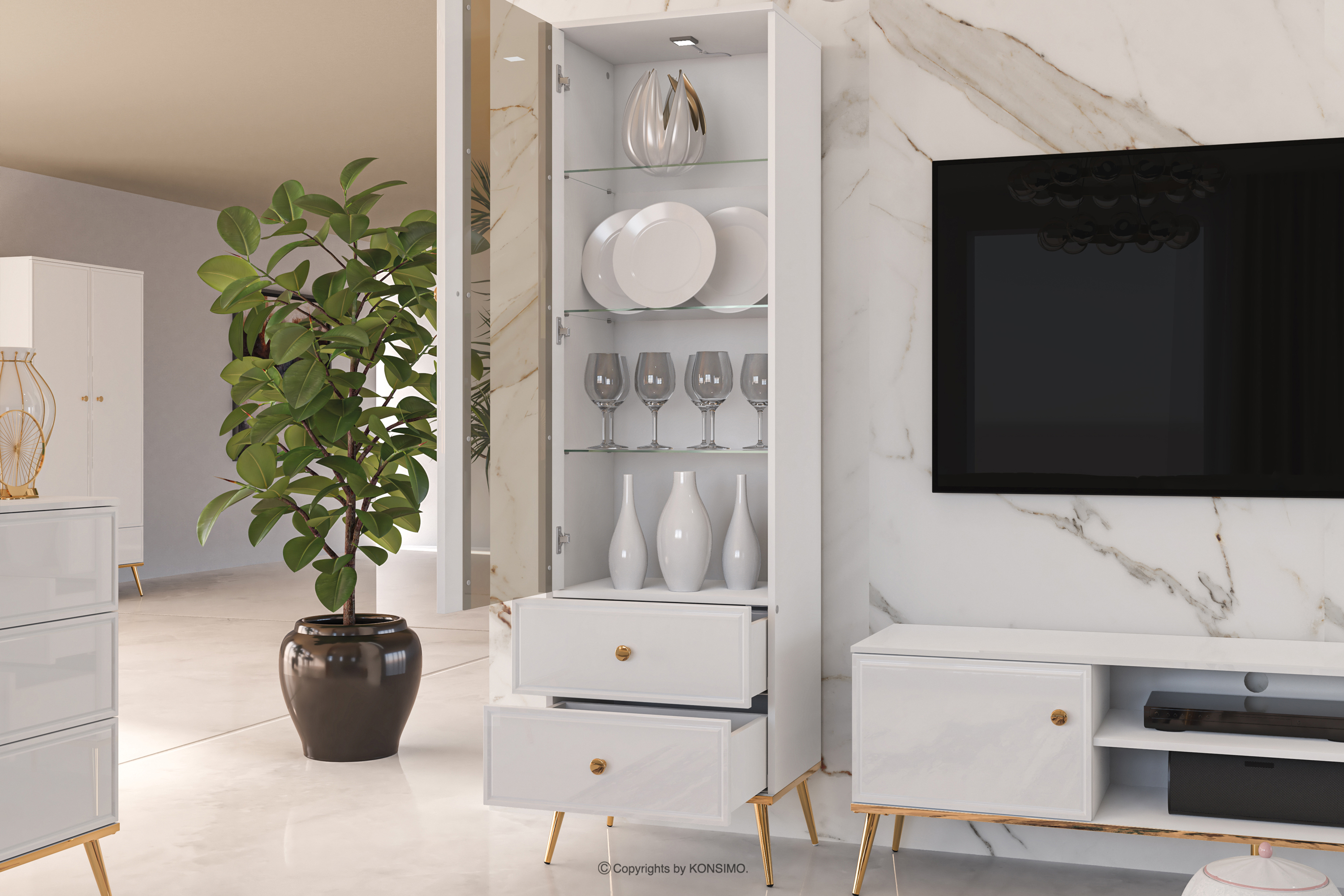 ISORIA zobacz całą kolekcję Elegancka witryna w połysku na wysokich nogach- kolor biały połysk