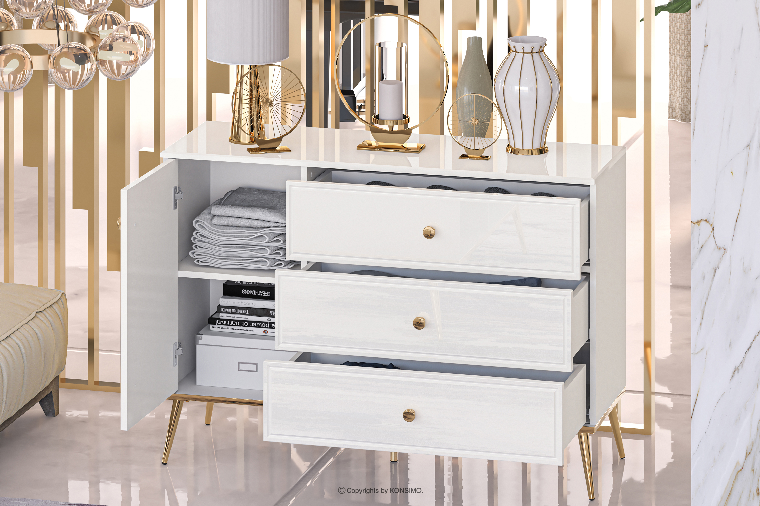 ISORIA zobacz całą kolekcję Elegancka komoda w połysku na wysokich nogach- kolor biały połysk