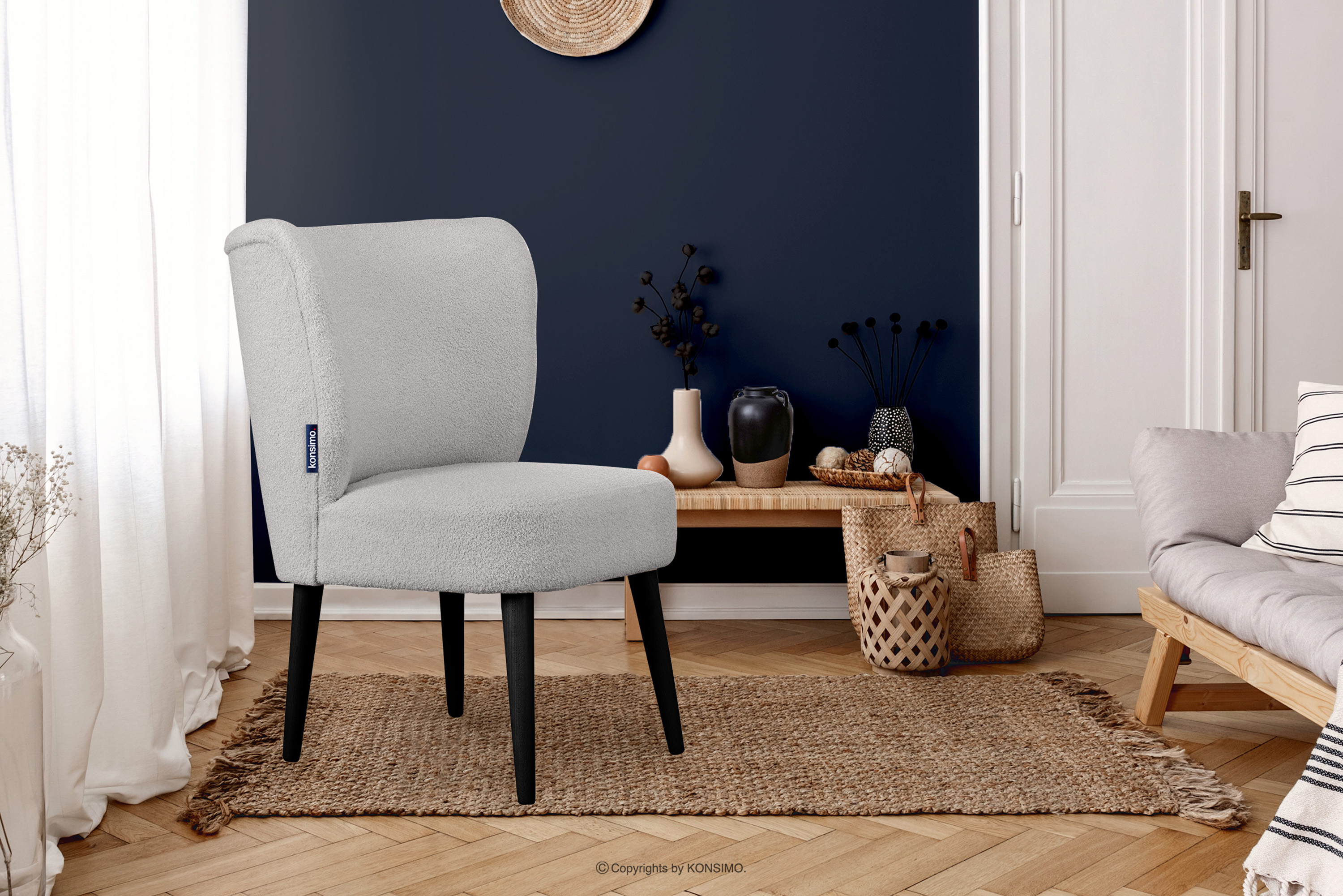 APPA zobacz całą kolekcję Fotel na wysokich nogach do salonu boucle jasny szary- kolor jasny szary/czarny