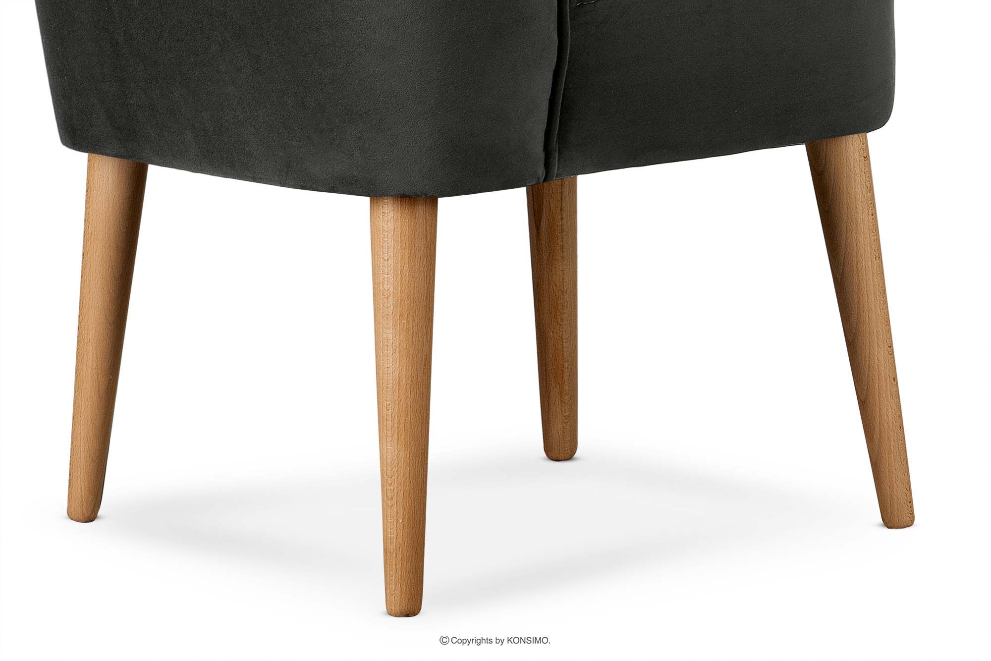 DUCO zobacz całą kolekcję Fotel w tkaninie welur na wysokich nogach grafitowy- kolor grafitowy/dąb