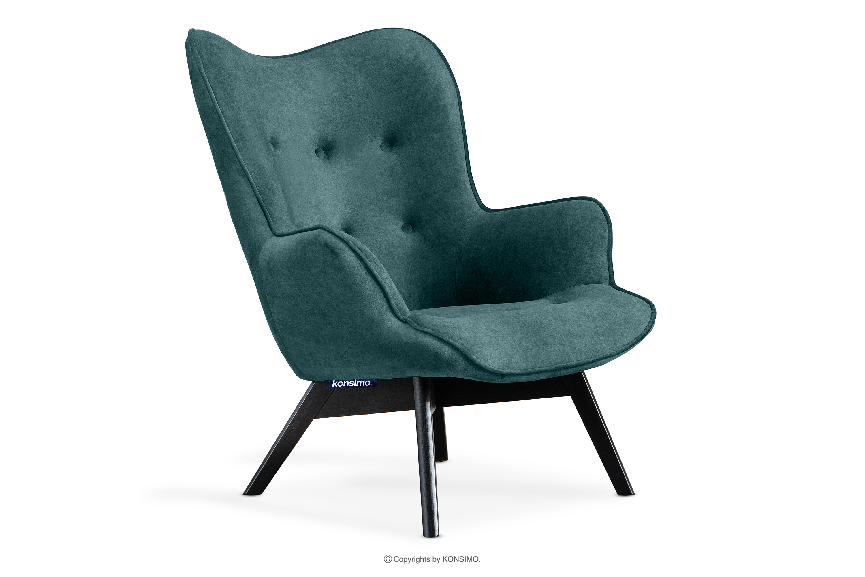 GLORI zobacz całą kolekcję Fotel wypoczynkowy z pikowaniem welur morski- kolor morski/czarny