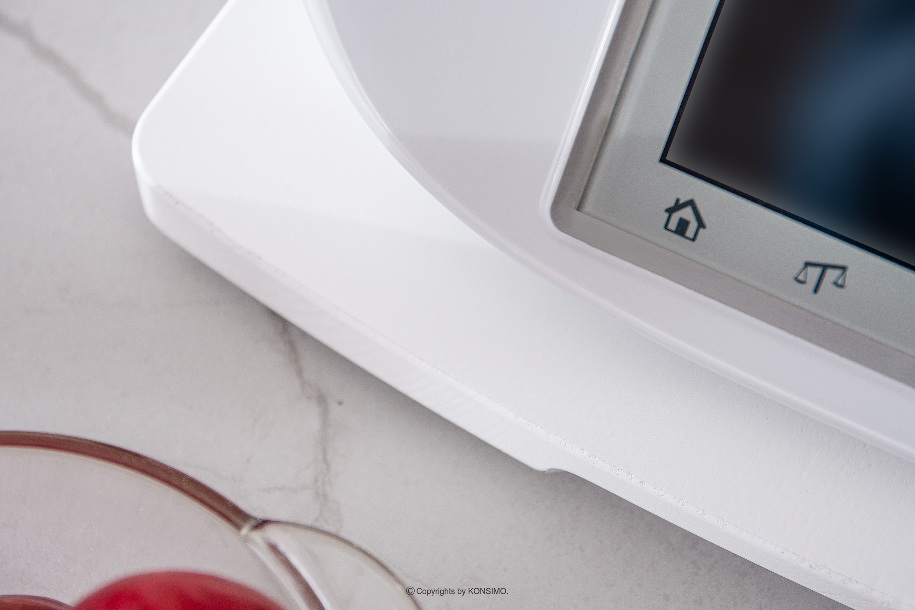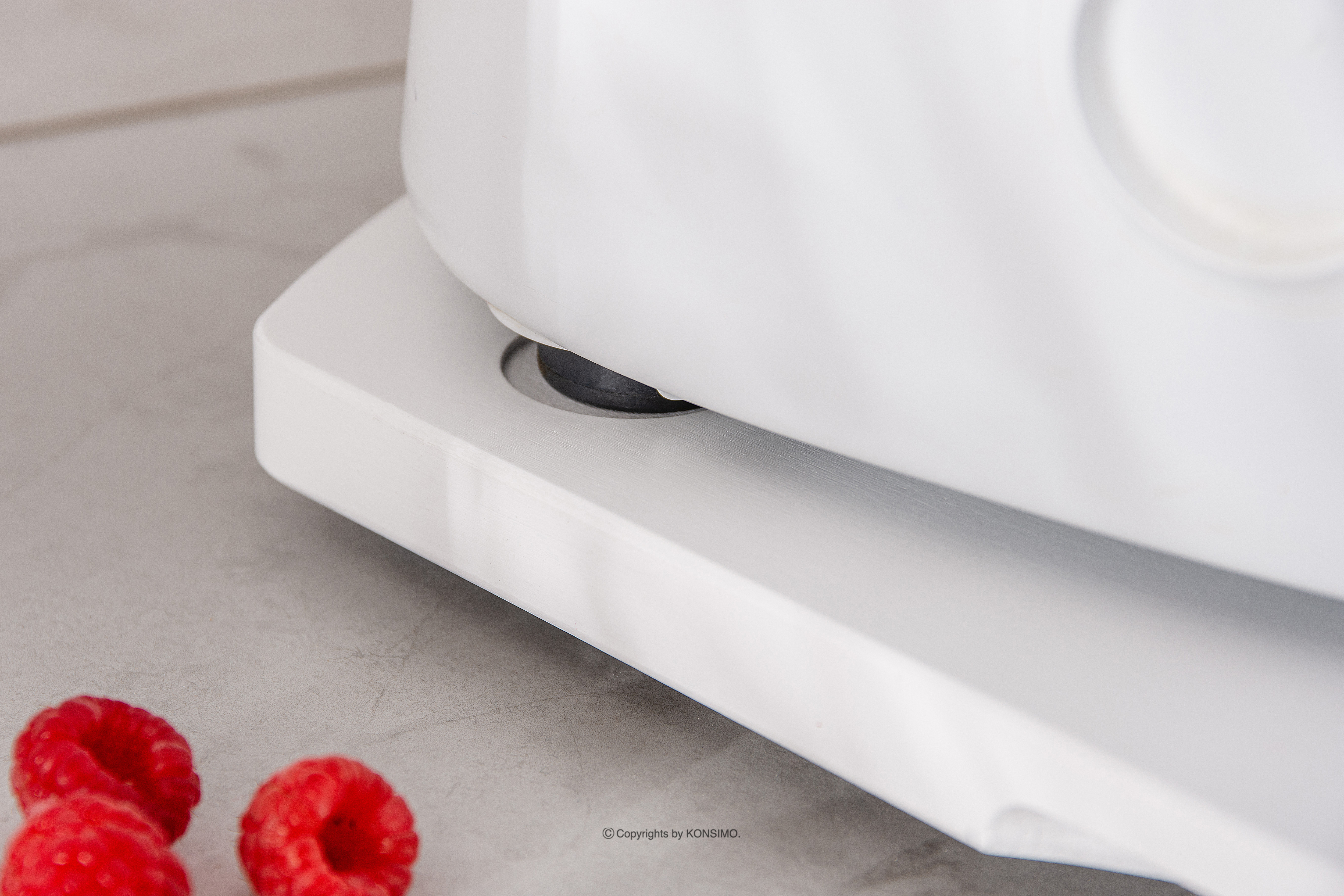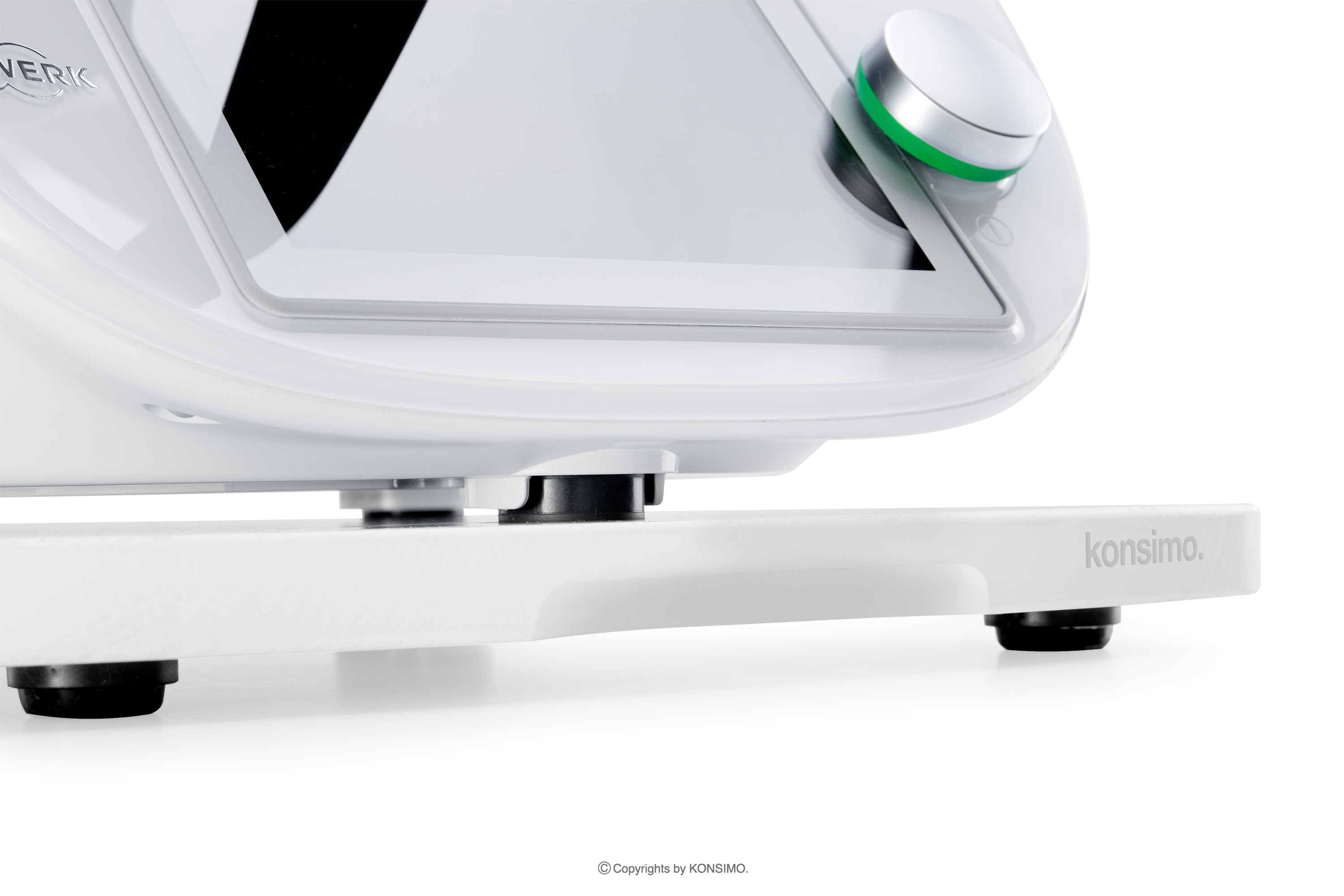 Deska do Thermomix biała została zaprojektowana z myślą o stabilnym umieszczeniu urządzenia. Dzięki specjalnie wyprofilowanym wgłębieniom i gumowym nóżkom, deska skutecznie zapobiega uszkodzeniom czujnika wagi, który znajduje się w nóżkach urządzenia. To gwarantuje bezpieczne i niezakłócone korzystanie z Thermomixa. COQUERE ma ergonomiczny kształt oraz wyfrezowane uchwyty po bokach i z przodu, co umożliwia łatwe przenoszenie i przesuwanie.