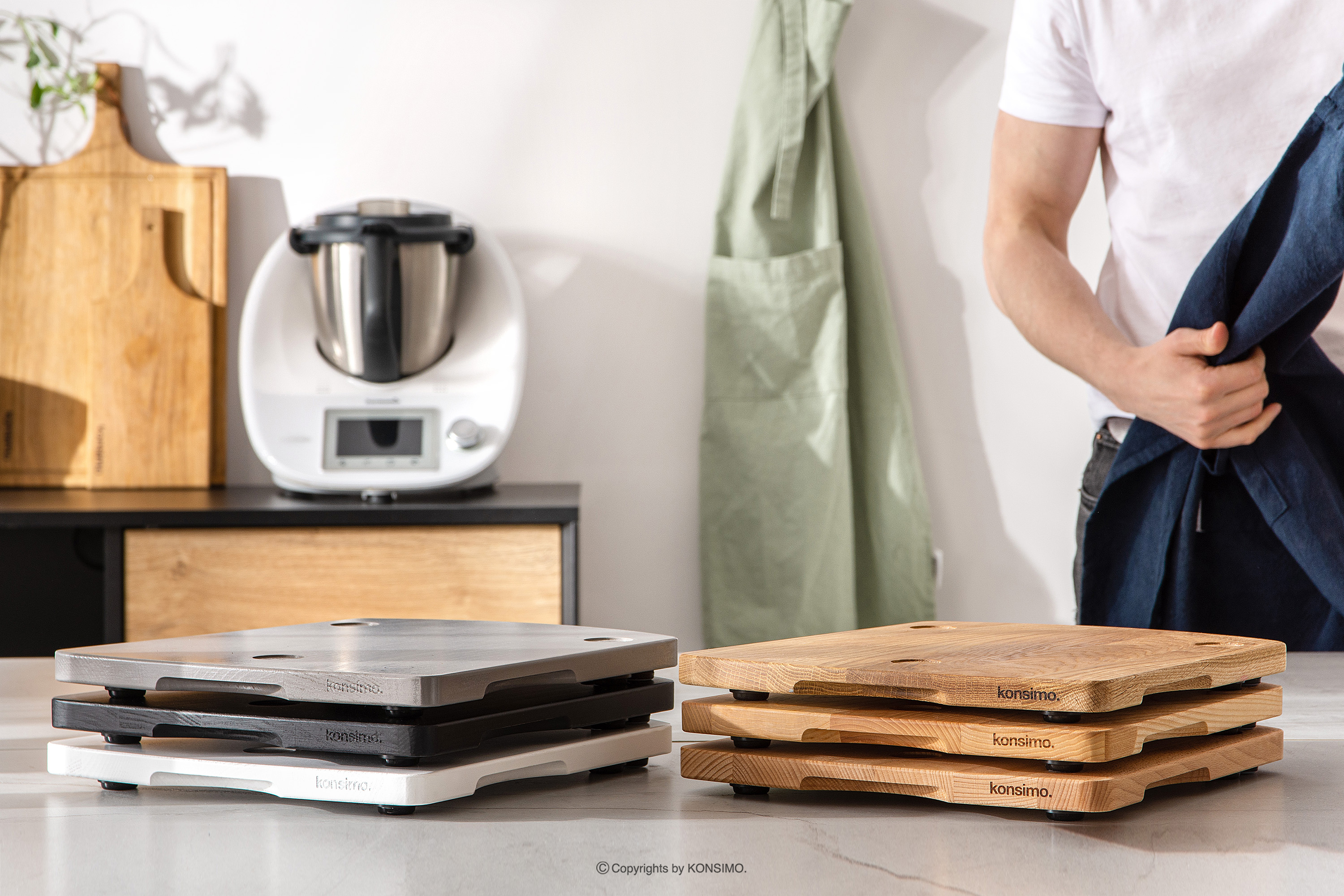 Kolekcja COQUERE wyróżnia się solidną budową, która gwarantuje długotrwałą trwałość i niezawodność. Wykonana z wysokiej jakości materiałów, deska jest solidna i odporna na uszkodzenia, zapewniając Ci długotrwałe użytkowanie bez obaw o jej wytrzymałość. Nasze deski COQUERE pod Thermomix są produkowane w Europie z naturalnych surowców, takich jak dąb, buk i jesion, posiadające certyfikat FSC. Aby chronić wysoką jakość drewna, powierzchnia deski jest olejowana ekologicznym, mineralnym roślinnym olejem, który posiada atesty i certyfikaty, gwarantujące bezpieczeństwo, trwałość i łatwe czyszczenie.
