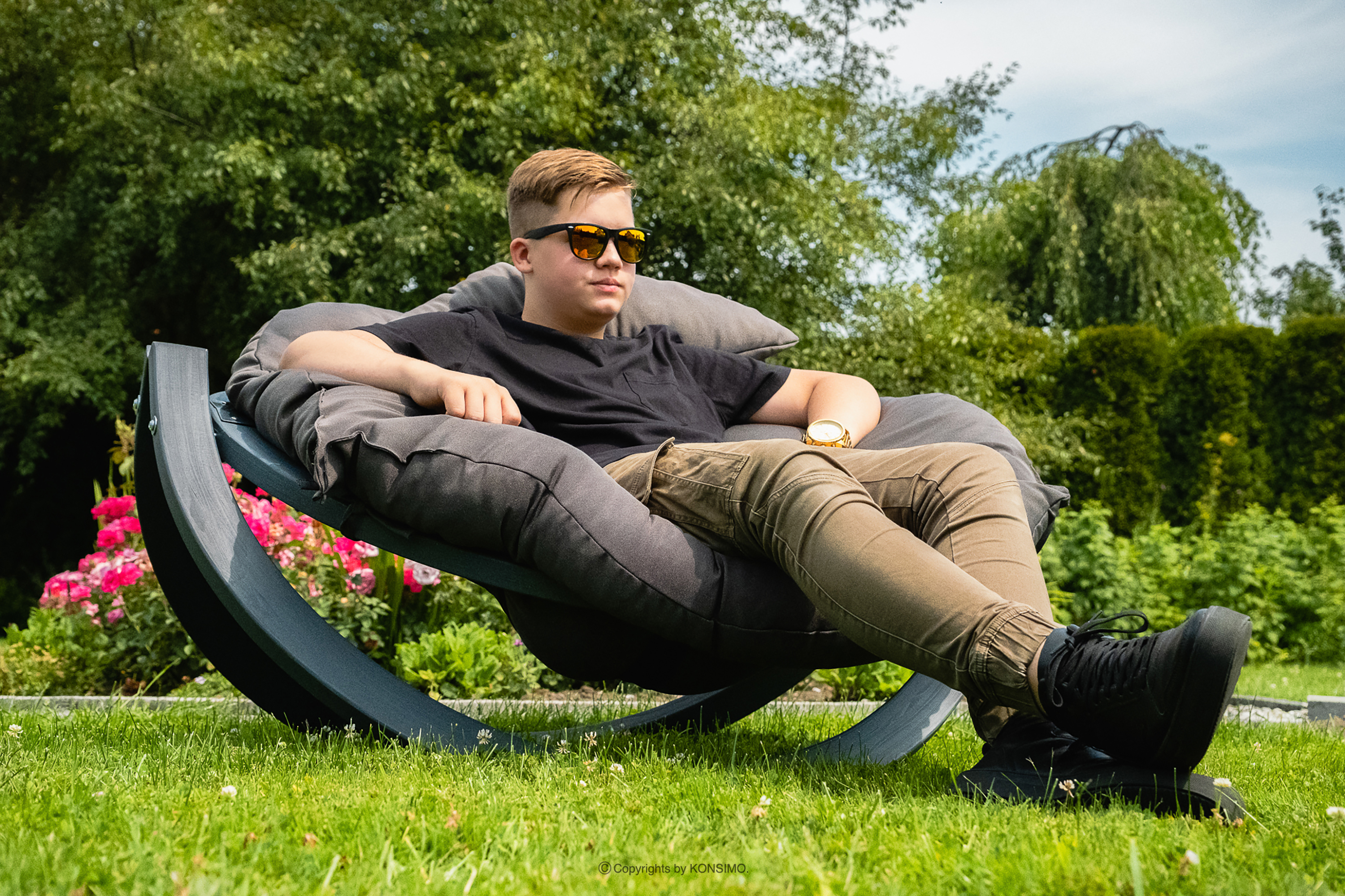 Fotel ogrodowy z miękkim siedziskiem ciemny szary/antracytowy to idealne połączenie estetyki i trwałości. Wykonany z wysokiej jakości drewna, ten fotel jest nie tylko piękny, ale także wygodny i wytrzymały. Drewniane płozy dodają mu naturalnego uroku, podkreślając nowoczesny charakter tego mebla. Jego unikalny design sprawia, że wyróżnia się spośród innych foteli ogrodowych.