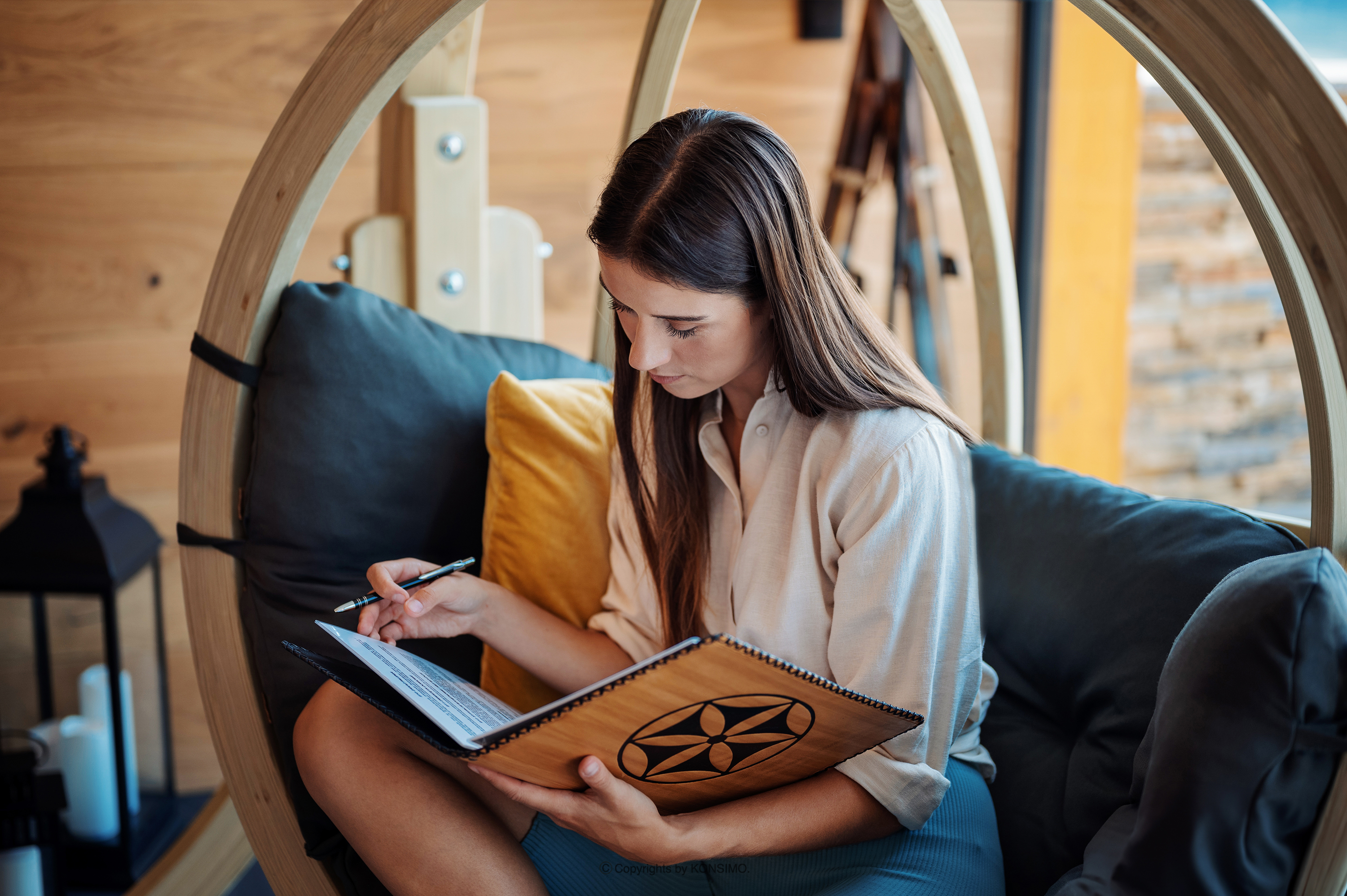 dla produktu Wiszący fotel ogrodowy drewniany boho grafitowy