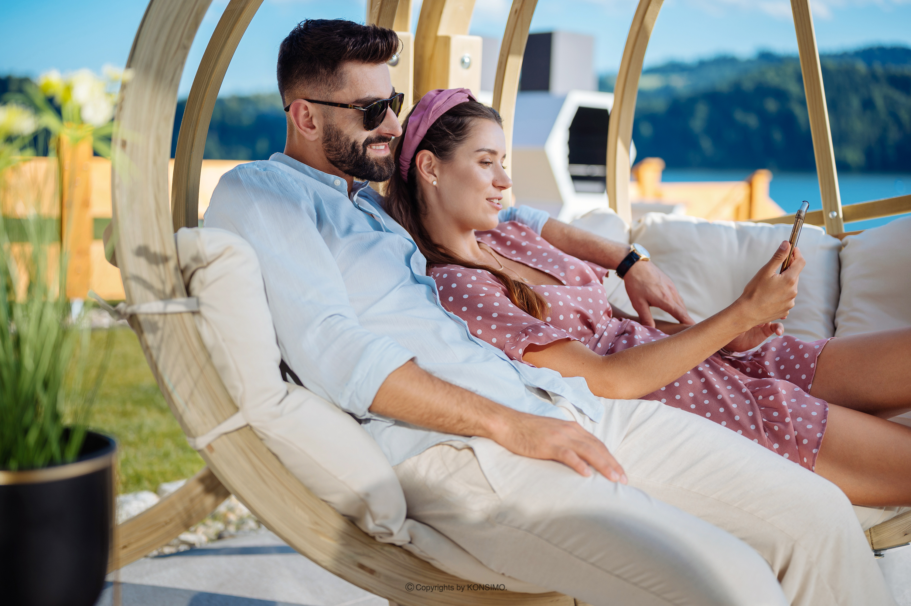 CALLISTO zobacz całą kolekcję Fotel wiszący dwuosobowy na ogród drewniany kremowy- kolor kremowy