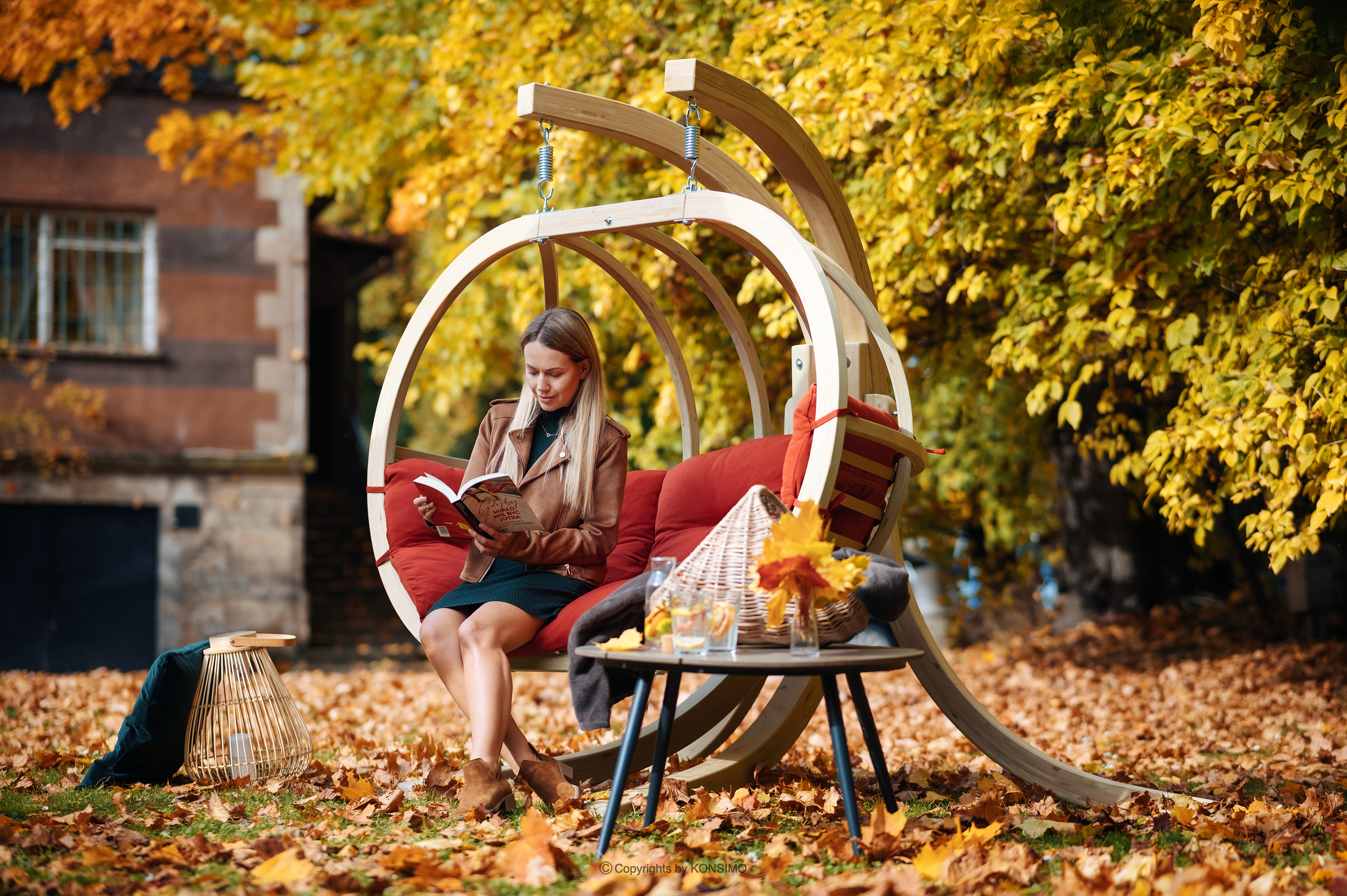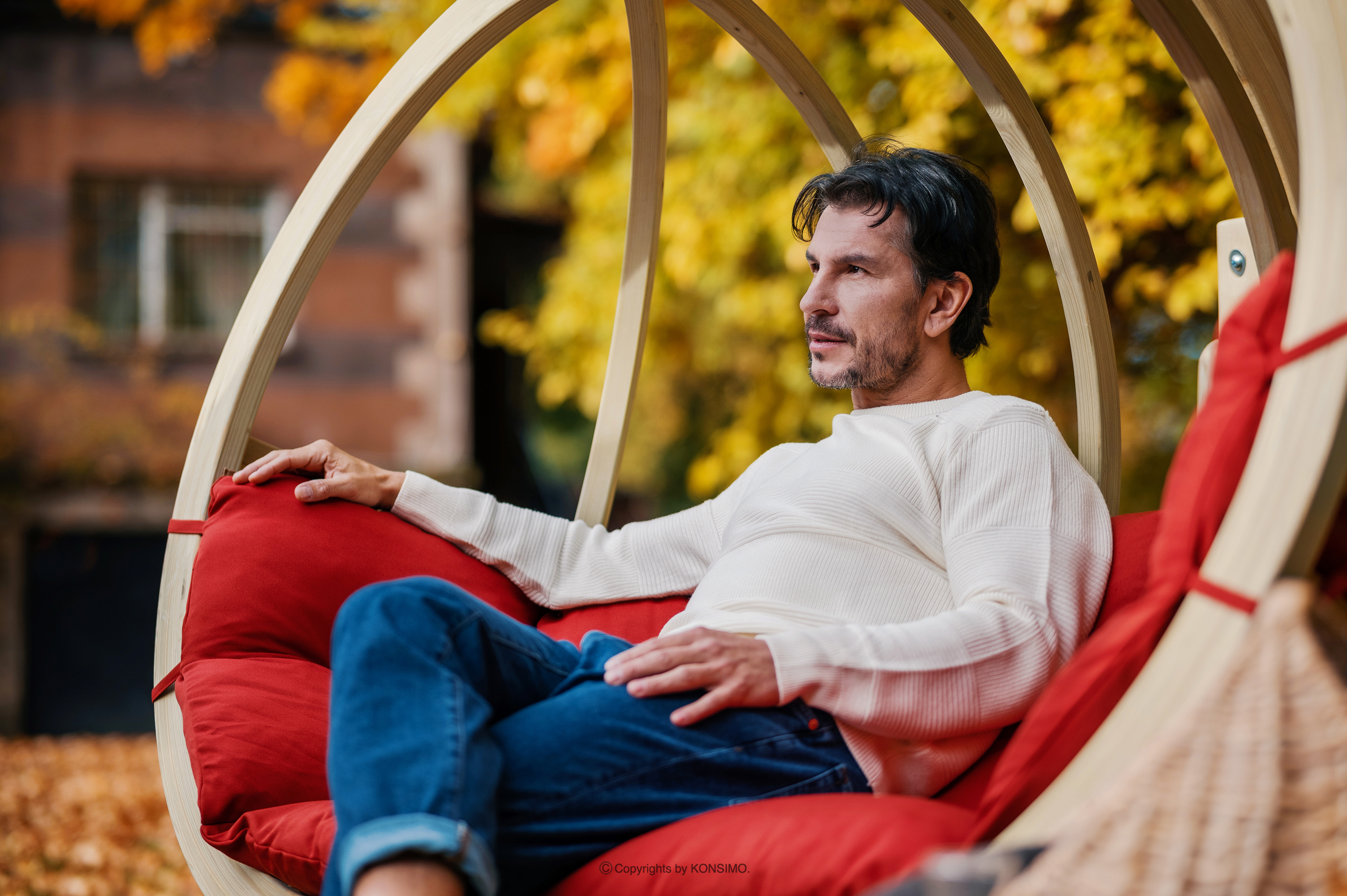 CALLISTO zobacz całą kolekcję Wiszący fotel ogrodowy drewniany dwuosobowy czerwony- kolor czerwony